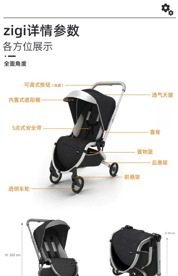 西班牙mima zigi婴儿车可坐可躺轻便折叠可上飞机多功能婴儿车II