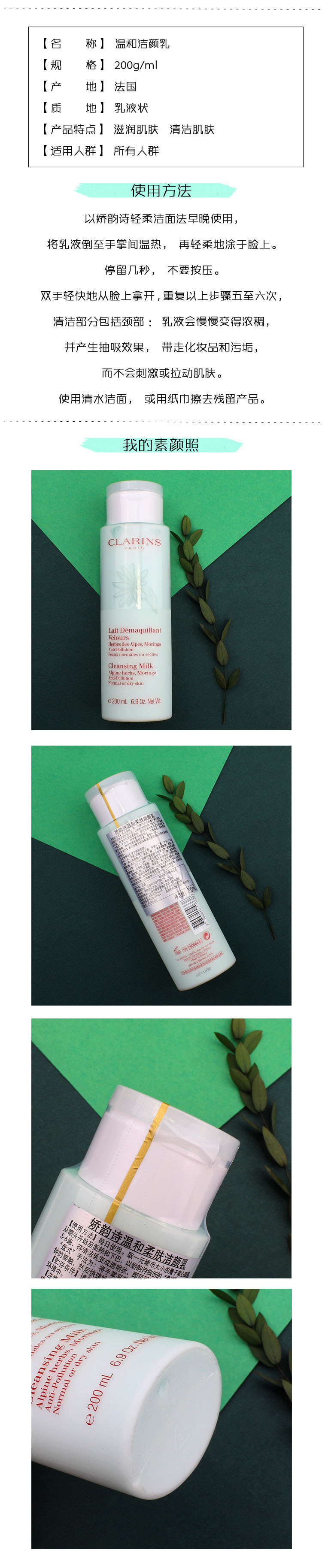 娇韵诗温和洁颜乳200ml去黑头卸妆洗面奶绿吸盘按摩洁面洁肤法国JPY带授权招加盟代理