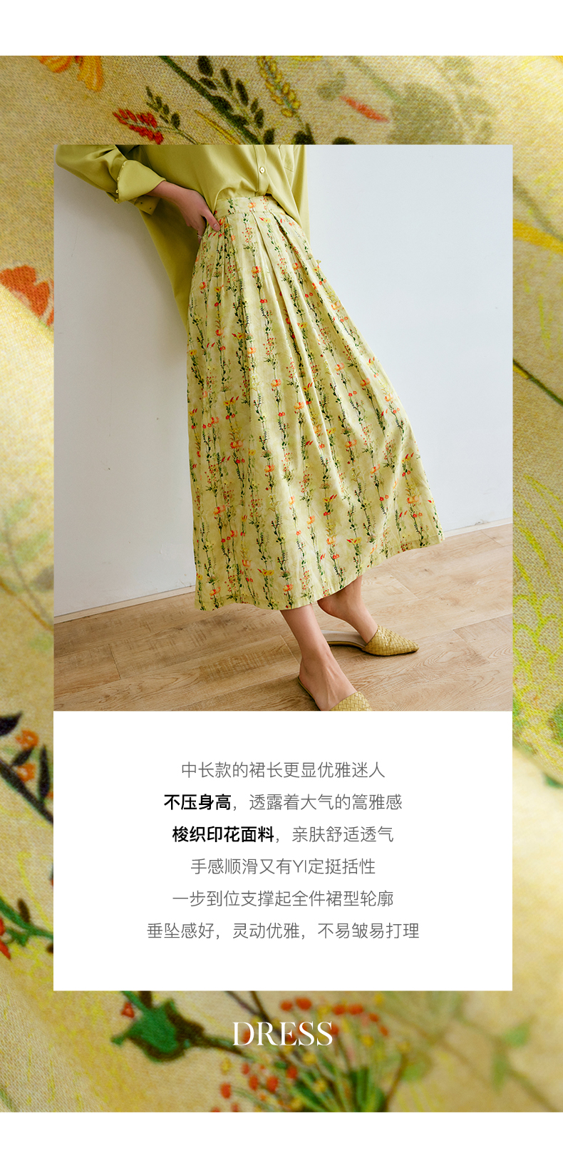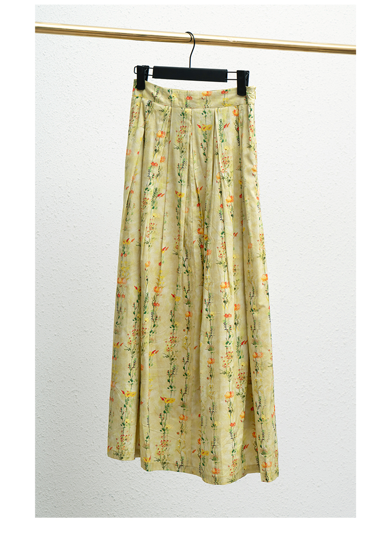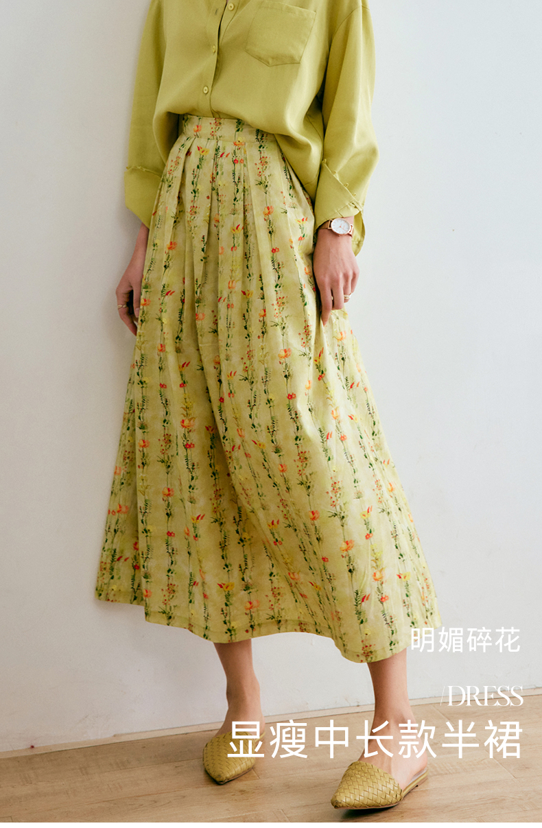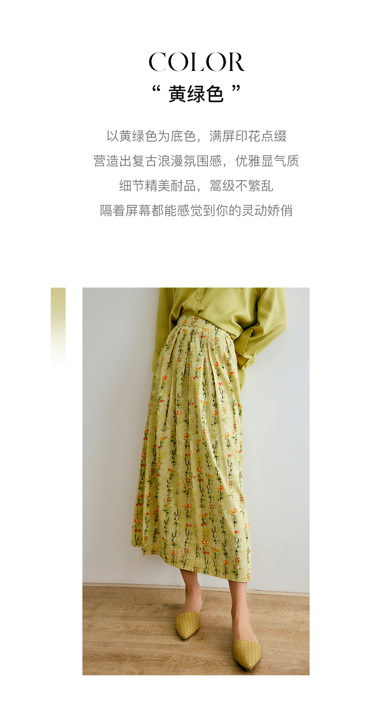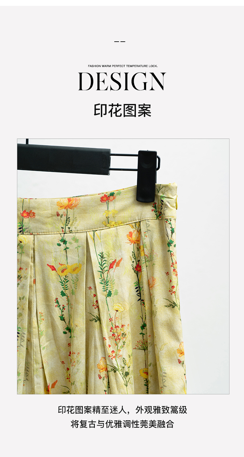 欧芮儿碎花半身裙女夏季2022年新款高腰法式复古百褶中长款裙子