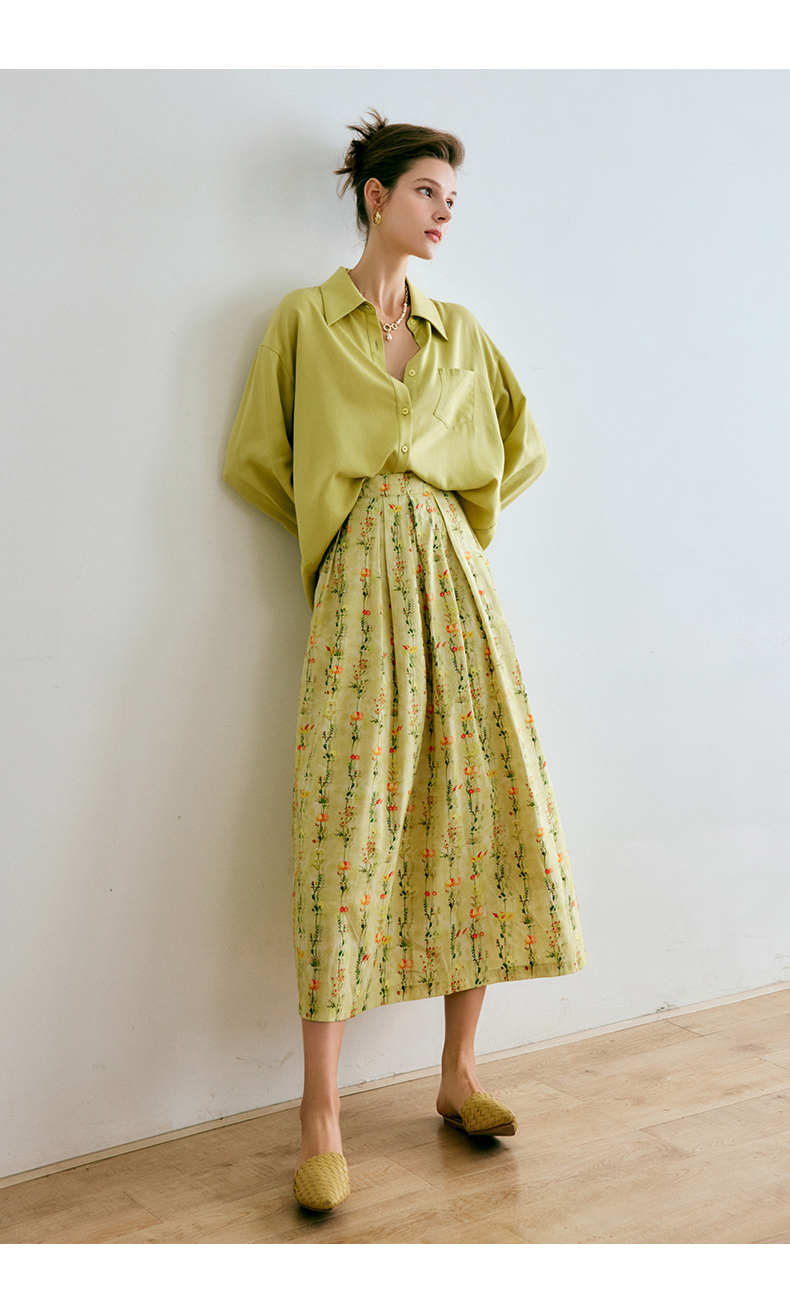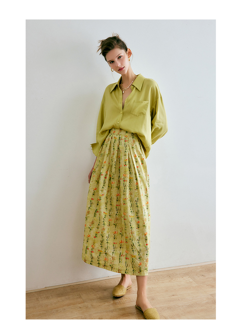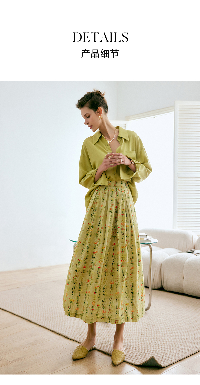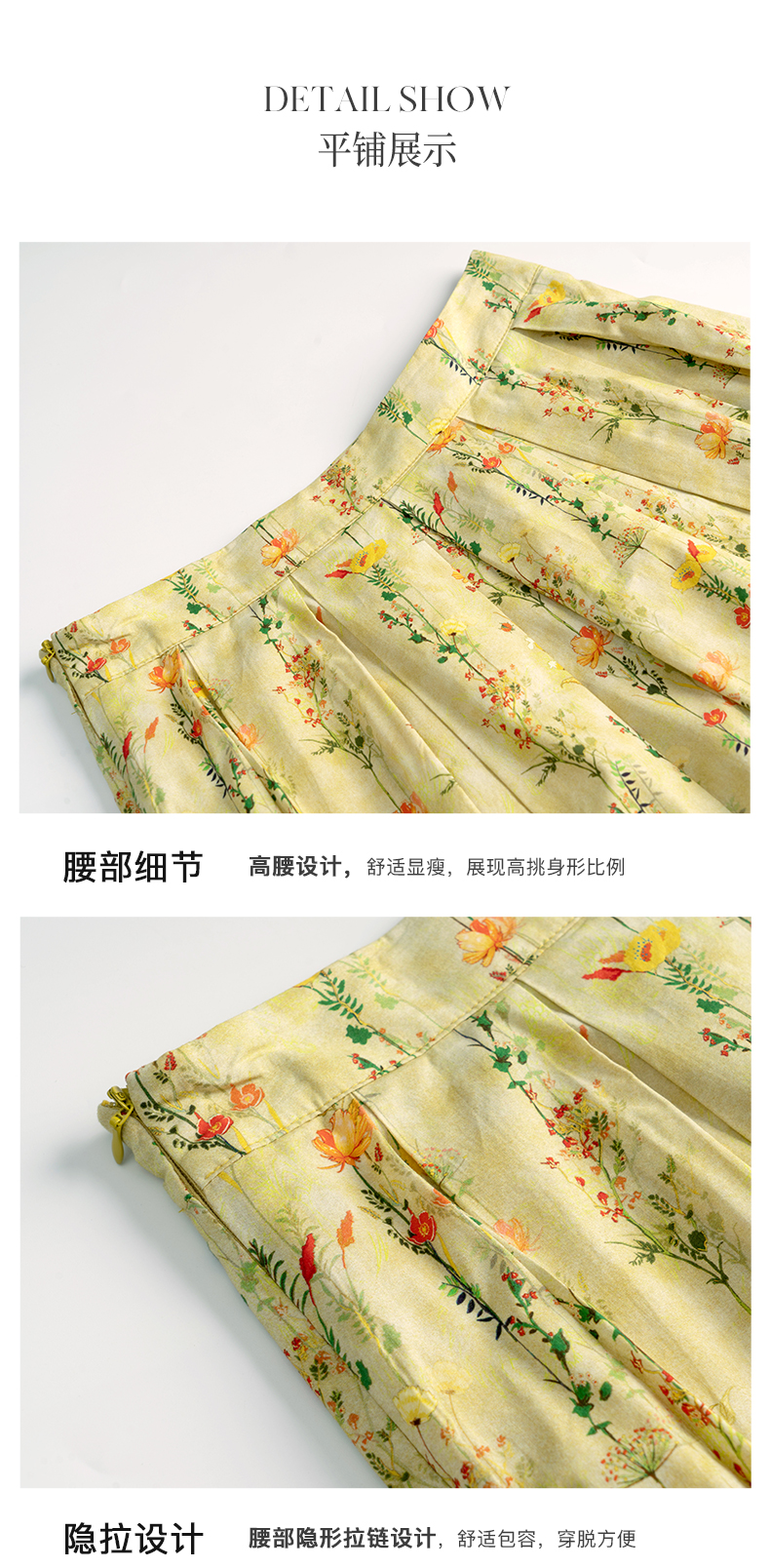 欧芮儿碎花半身裙女夏季2022年新款高腰法式复古百褶中长款裙子