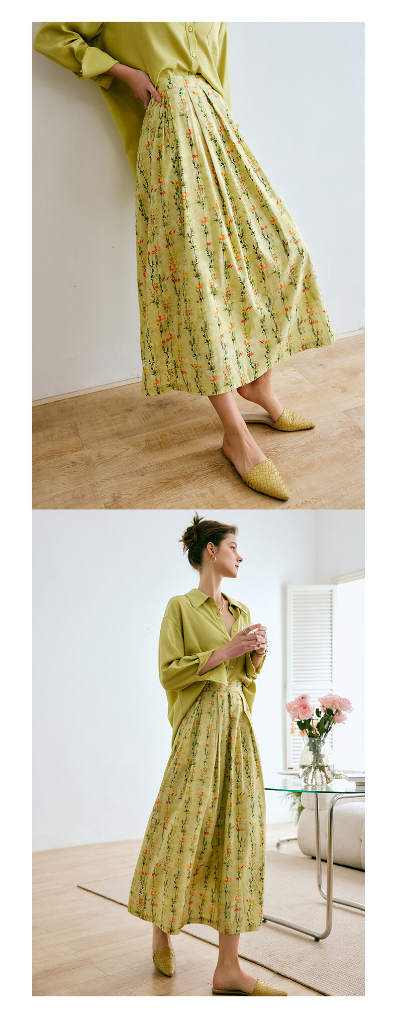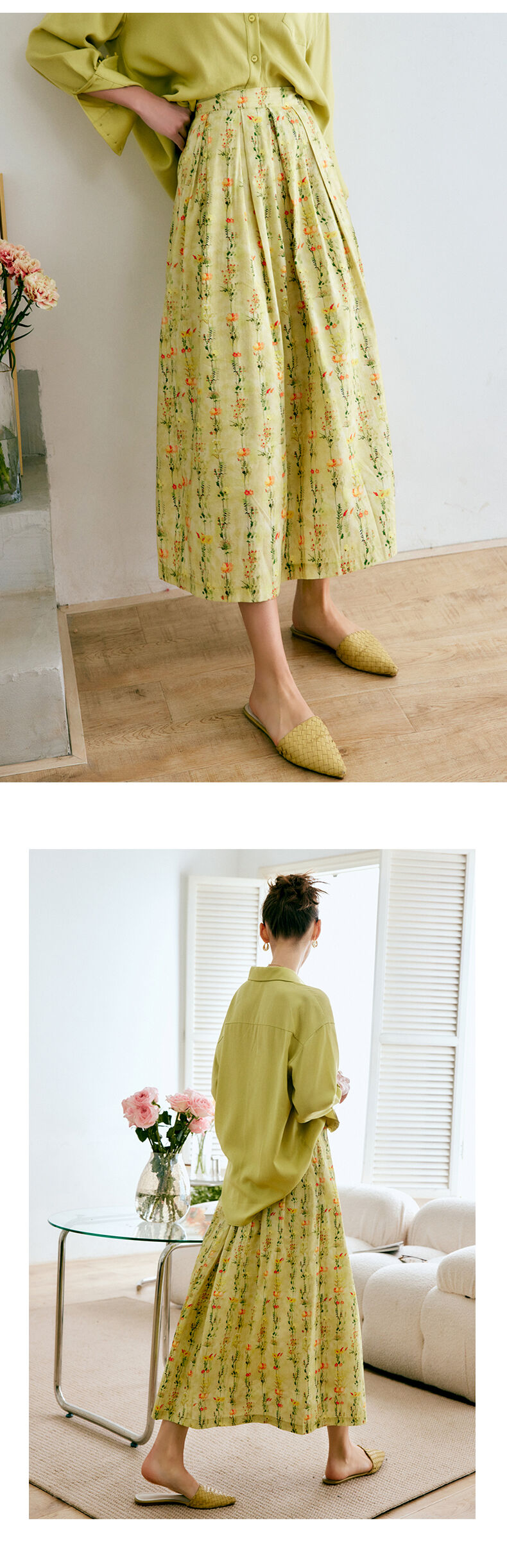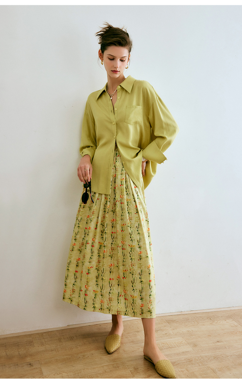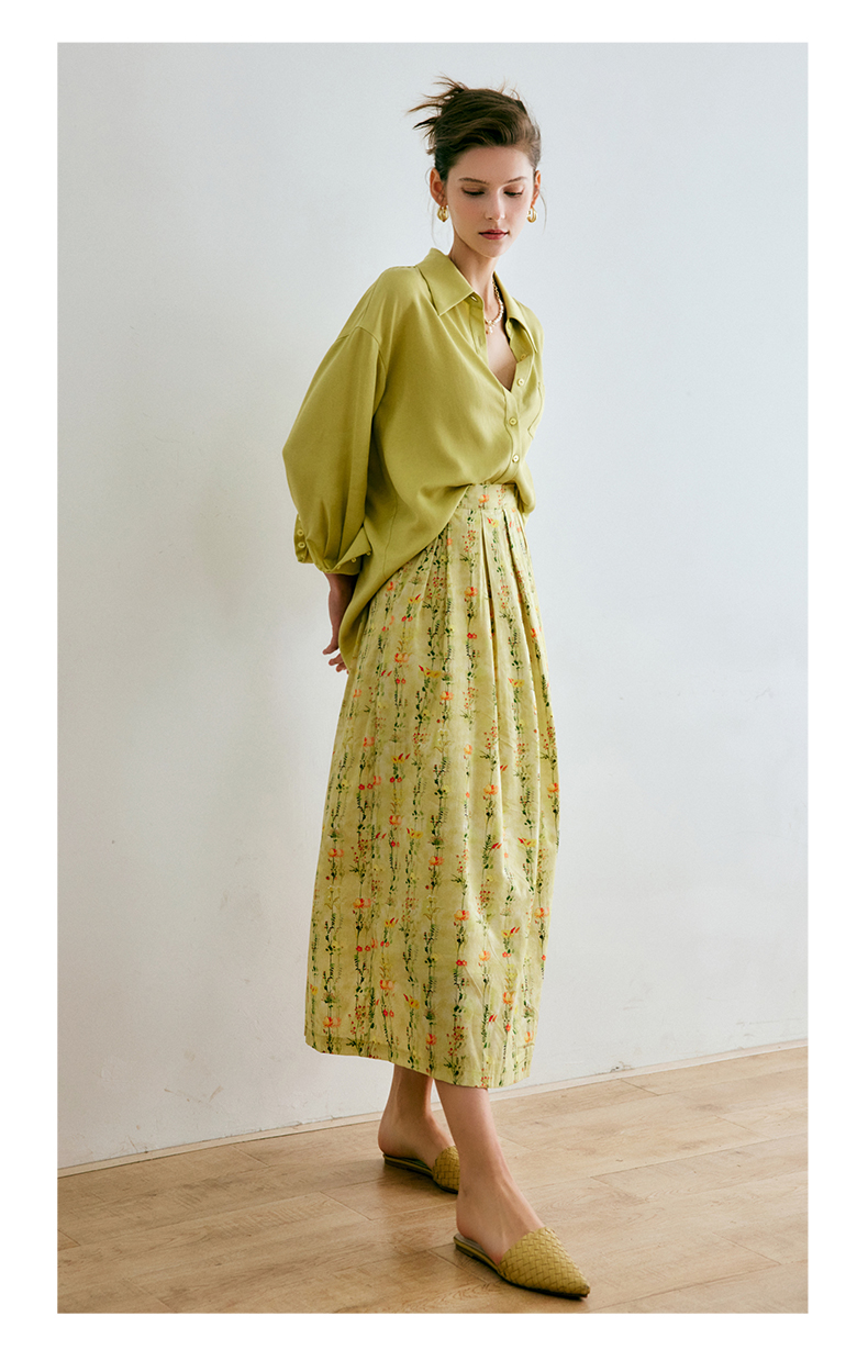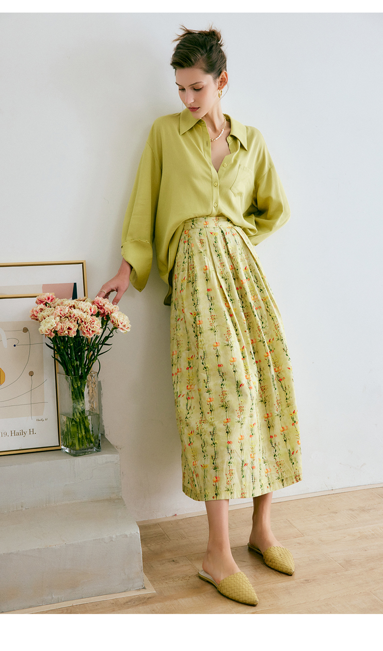 欧芮儿碎花半身裙女夏季2022年新款高腰法式复古百褶中长款裙子