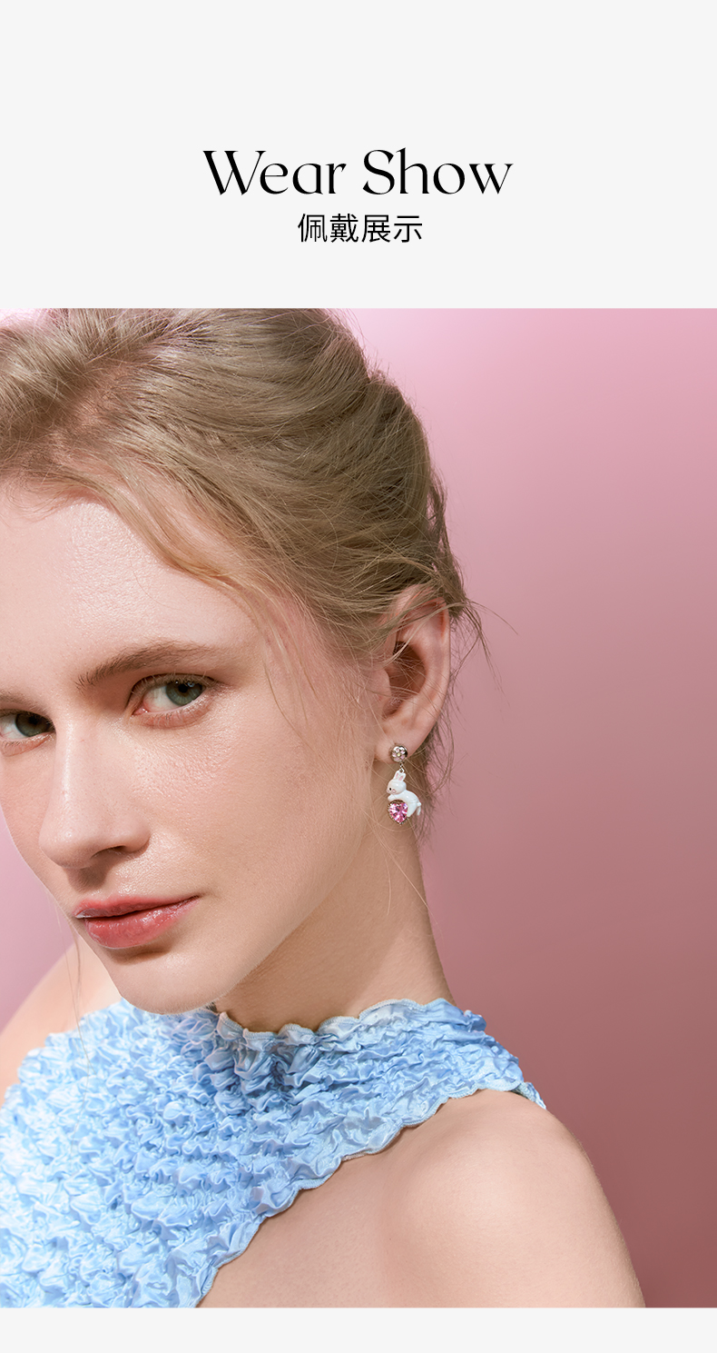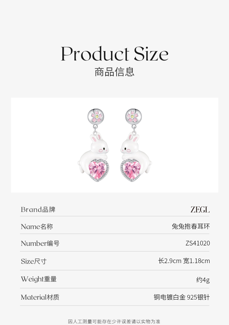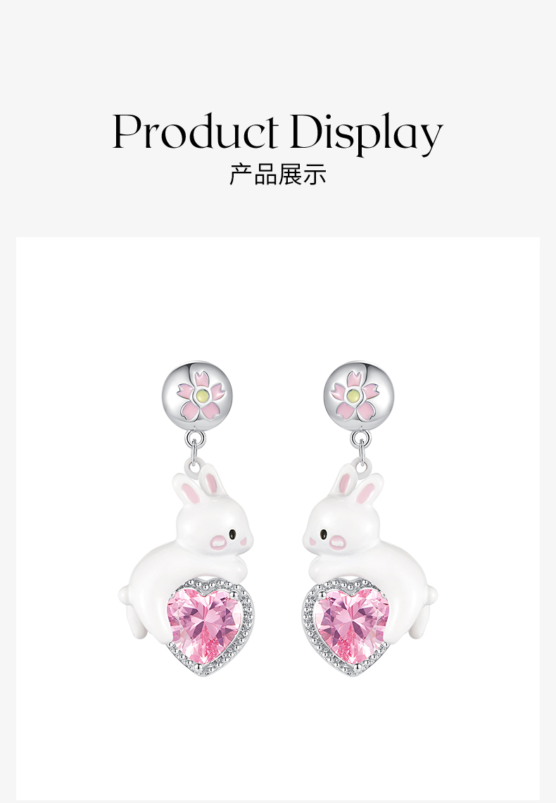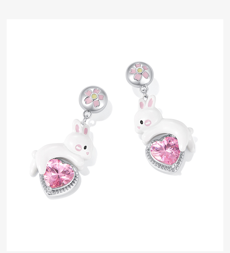 ZEGL设计师樱花小彩串系列爱心兔子耳环女小众设计感耳钉银针耳饰