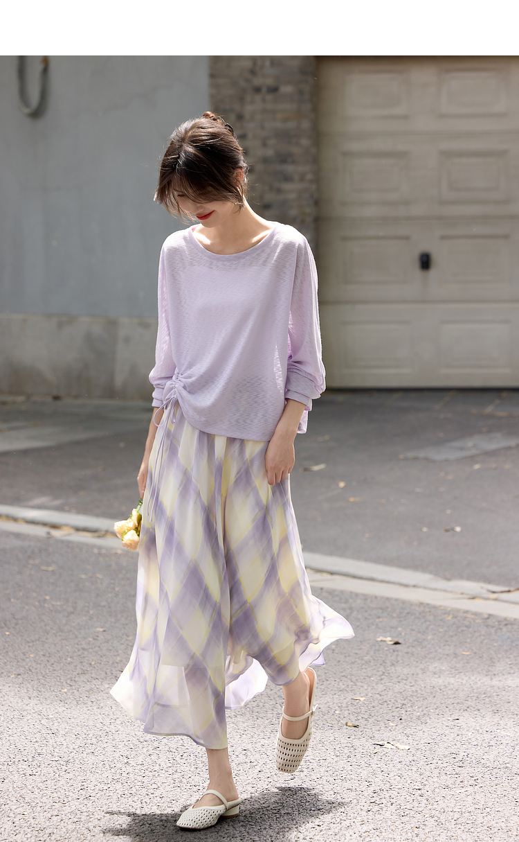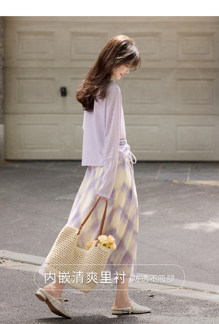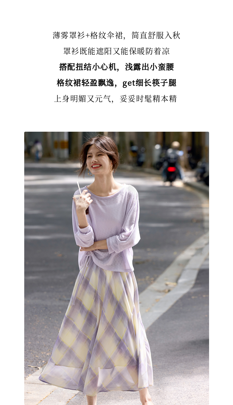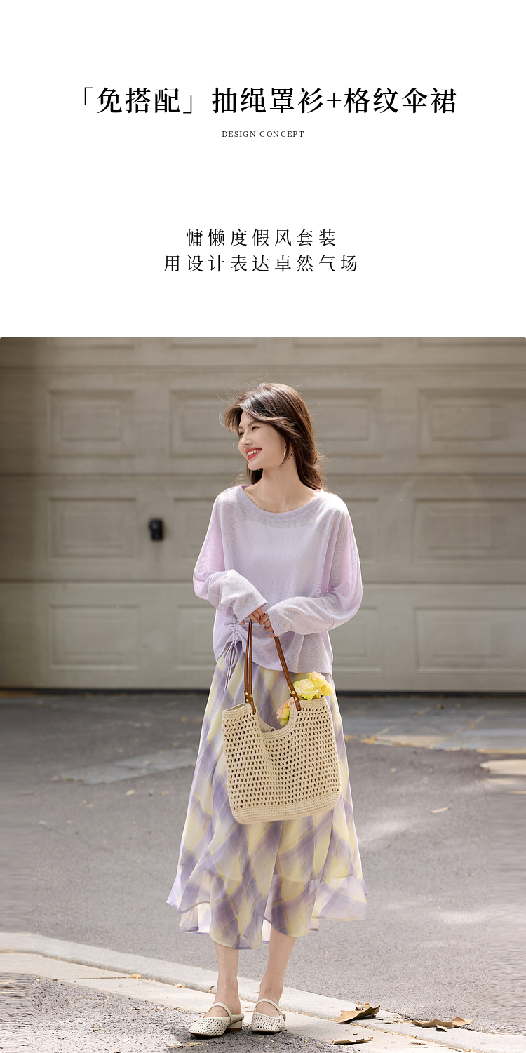 【07/30新品6.5折】熙世界松弛感套装女2025早秋新款慵懒风长袖罩衫格纹半身裙两件套
