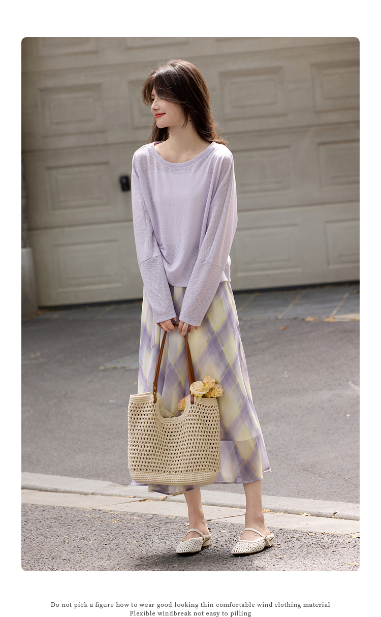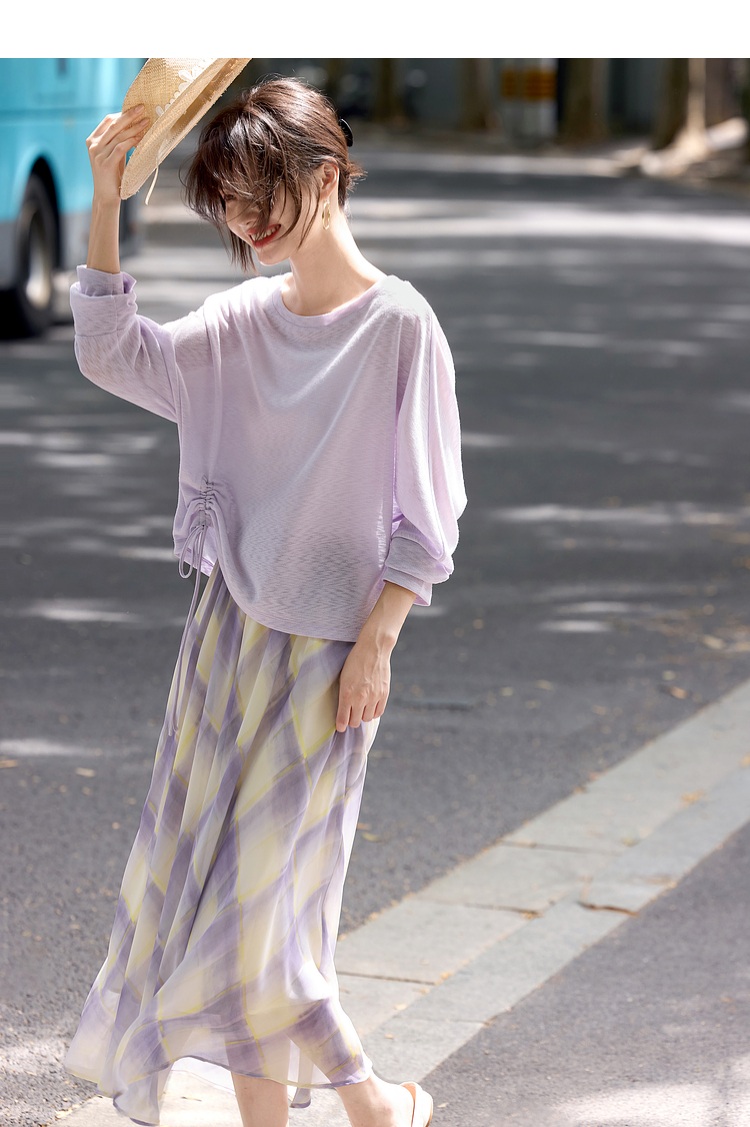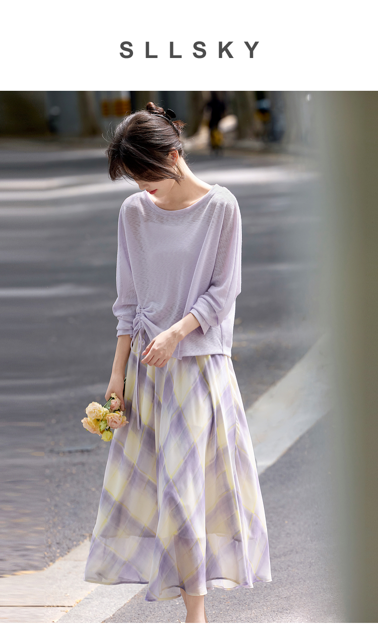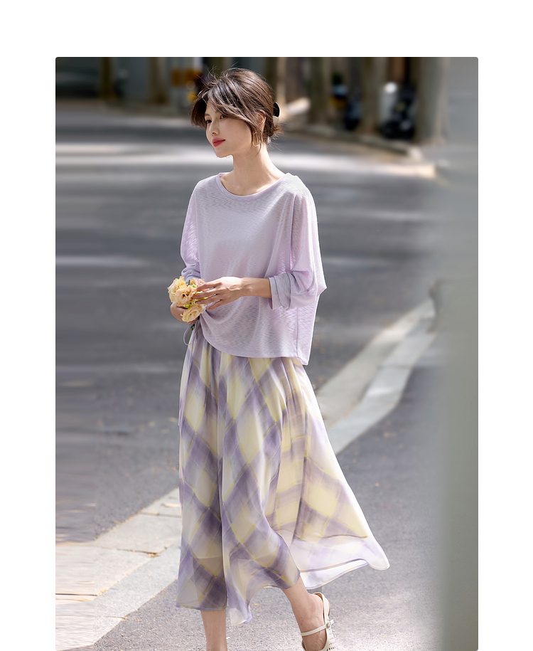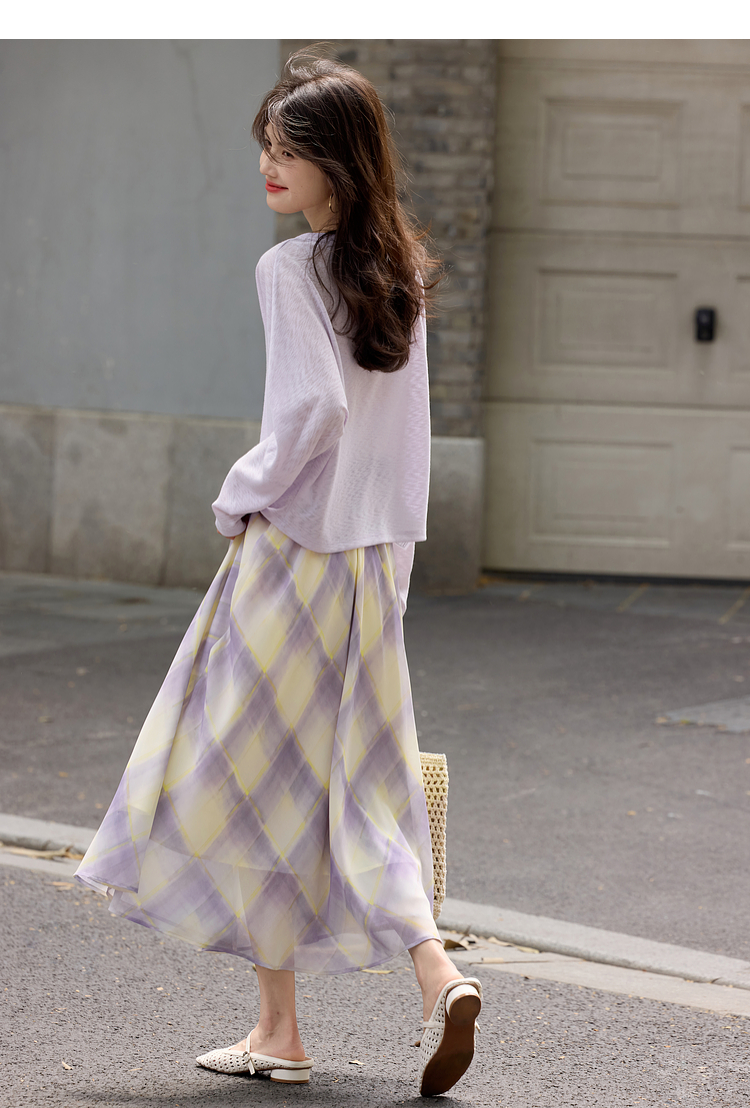 【07/30新品6.5折】熙世界松弛感套装女2025早秋新款慵懒风长袖罩衫格纹半身裙两件套