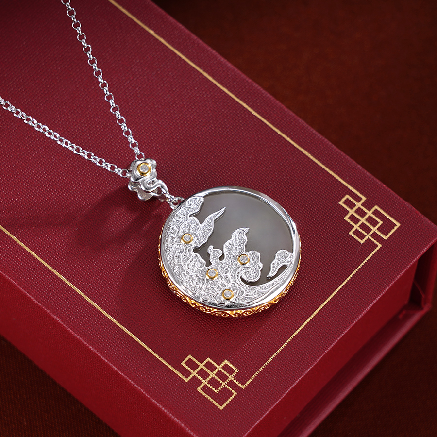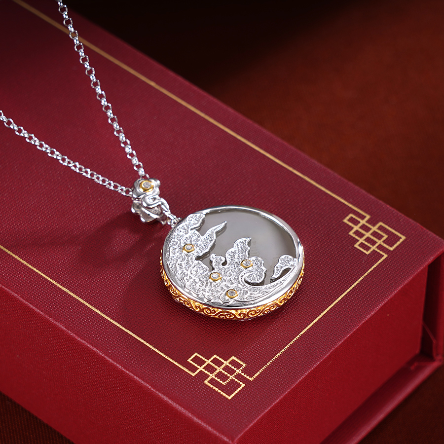 子佩集S925银【如意祥云】套链【DZ06221】纯银古法银和田玉祥云项链镀金2411