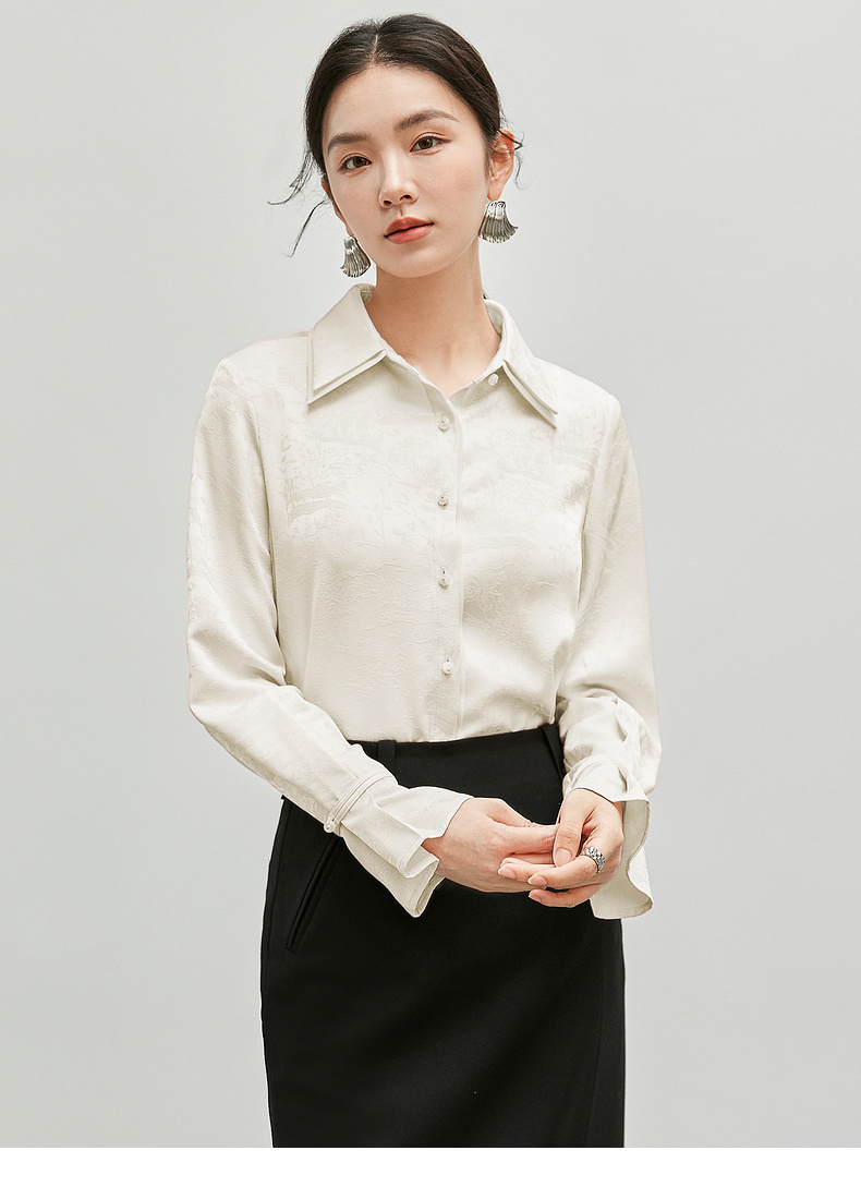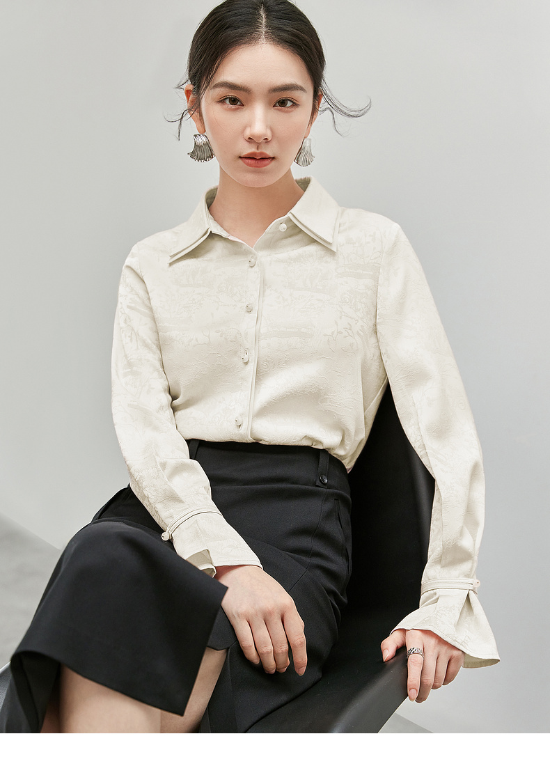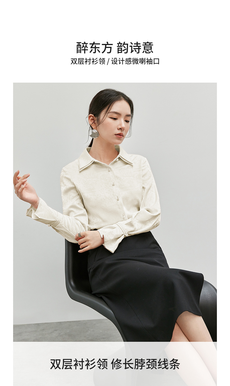 【内购】气质优雅通勤双层衬衫领轻奢提花长袖衬衫-153CJ3588X