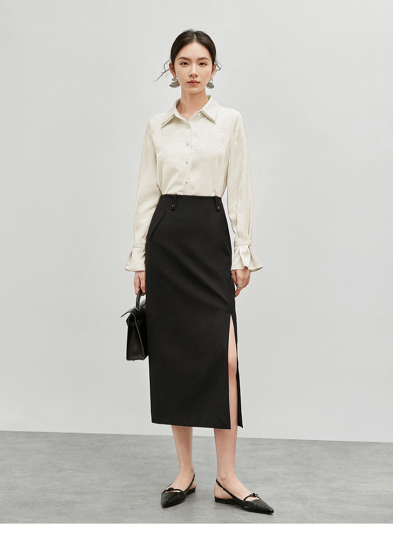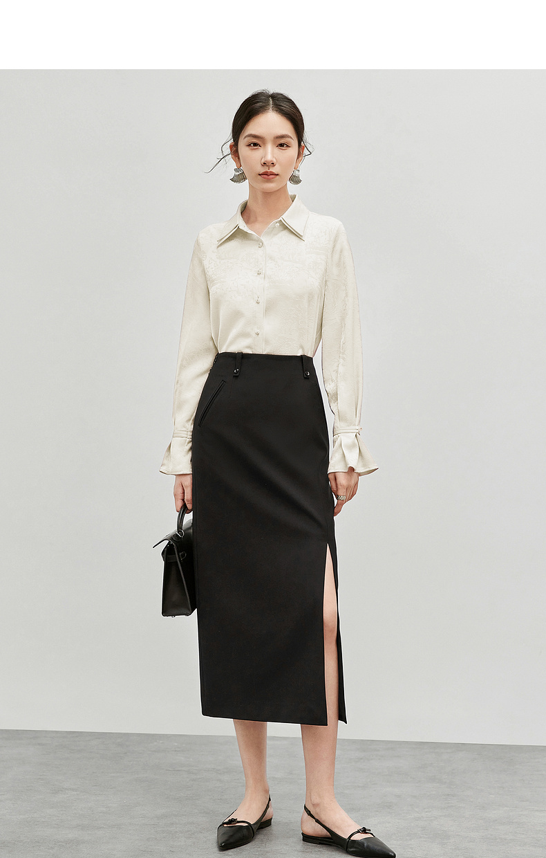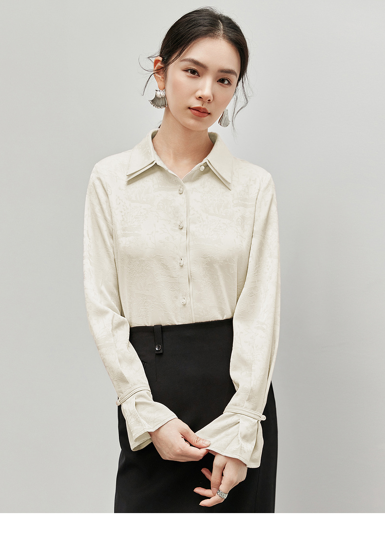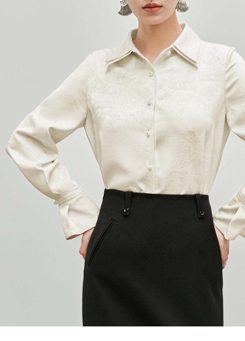 【内购】气质优雅通勤双层衬衫领轻奢提花长袖衬衫-153CJ3588X