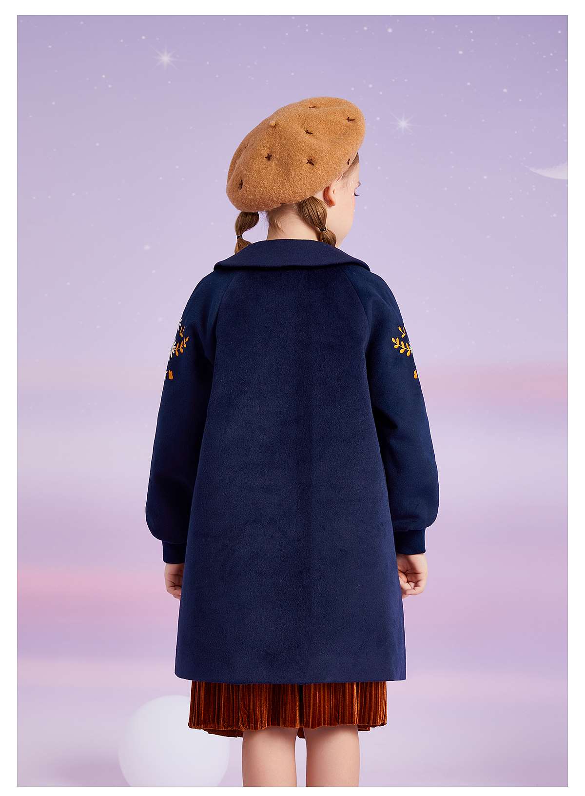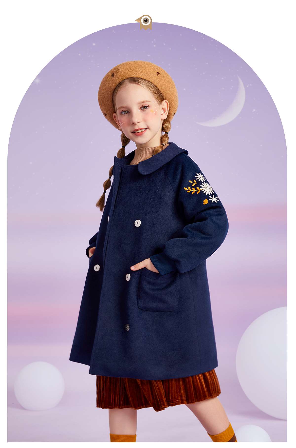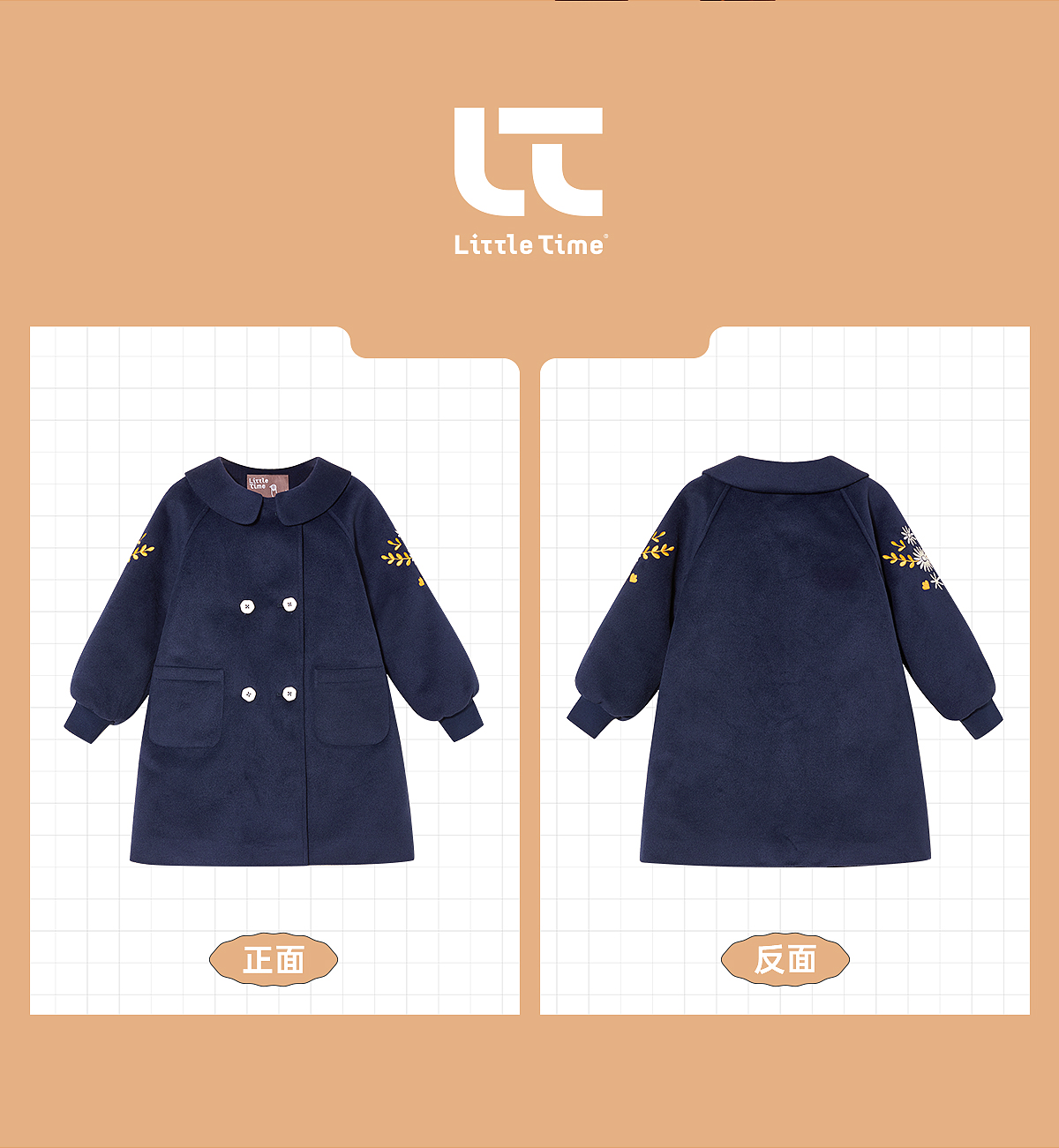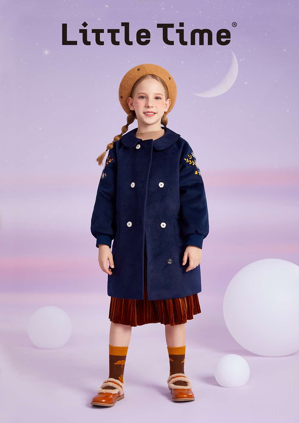 littletime女童毛呢外套秋冬装刺绣2021新款中长儿童加厚保暖大衣