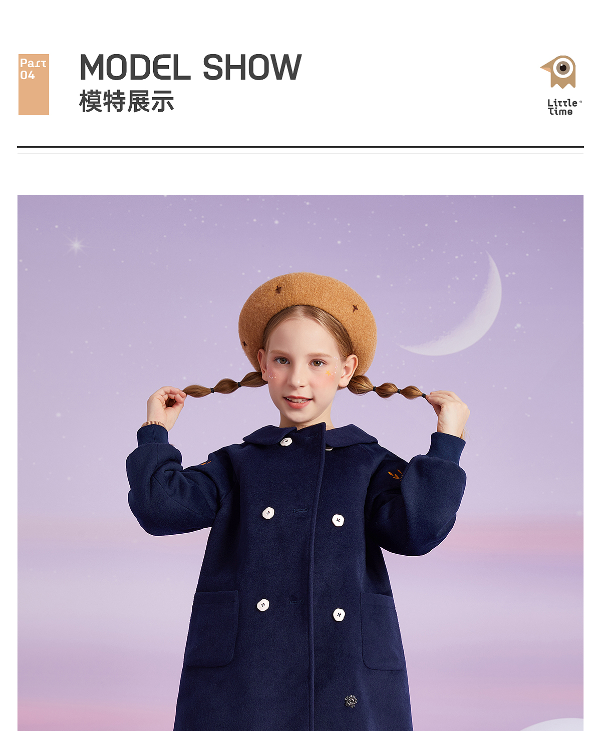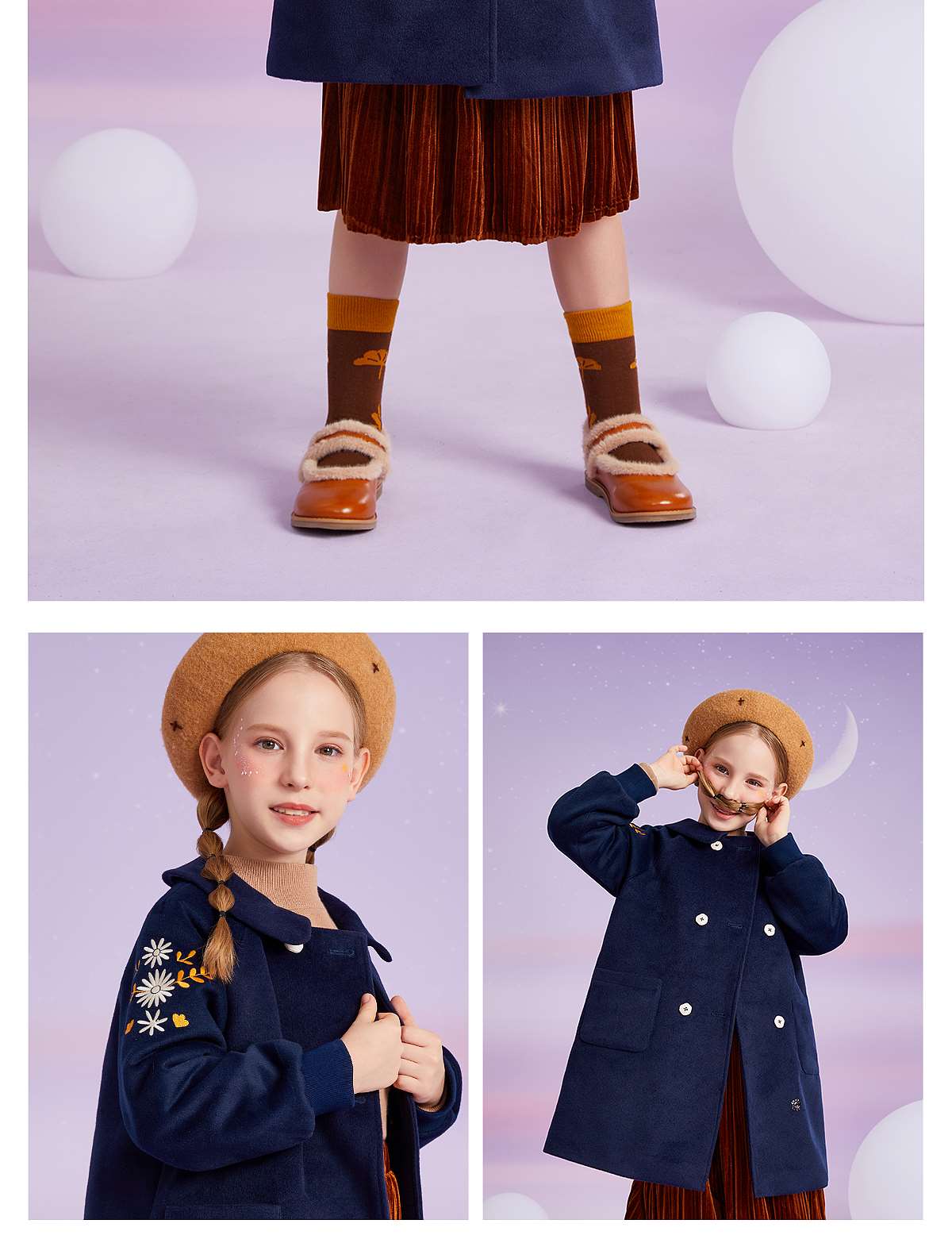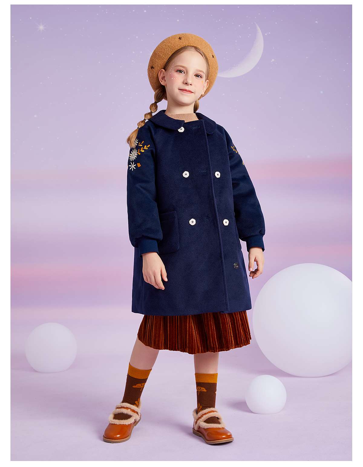 littletime女童毛呢外套秋冬装刺绣2021新款中长儿童加厚保暖大衣