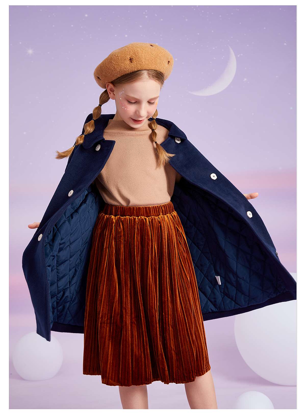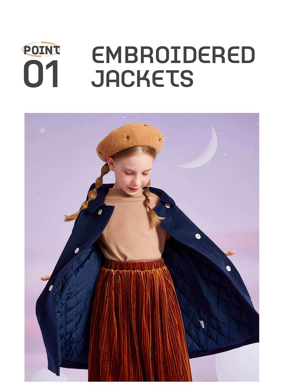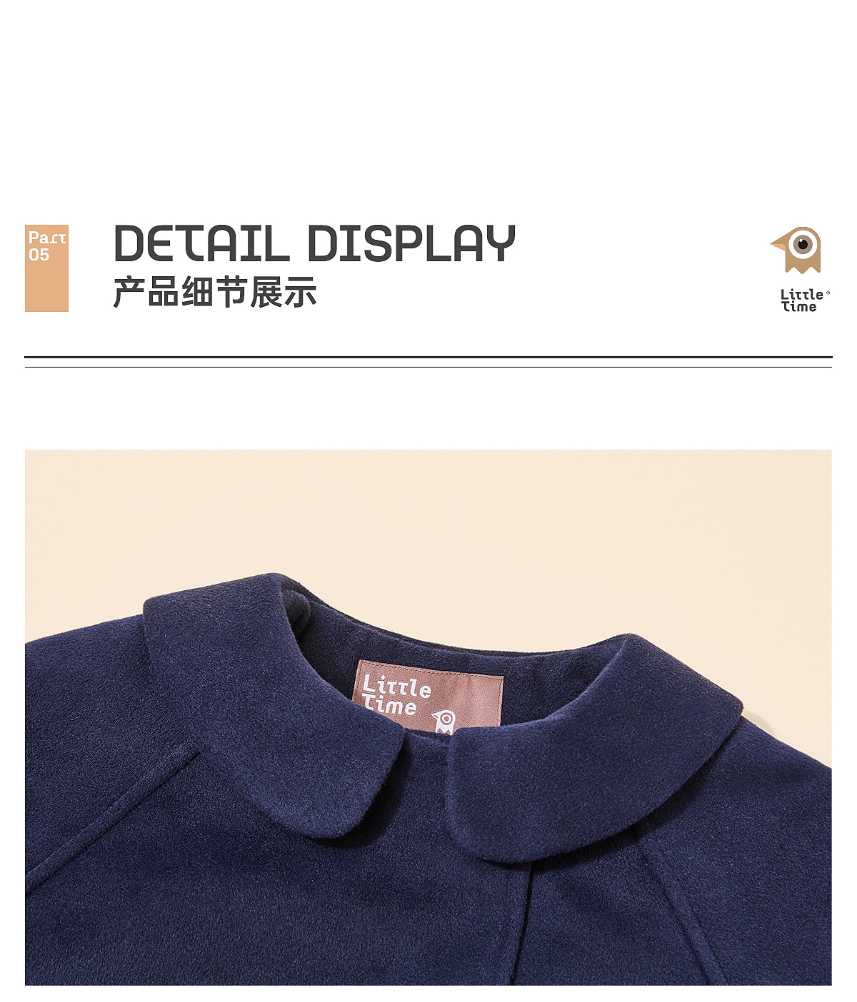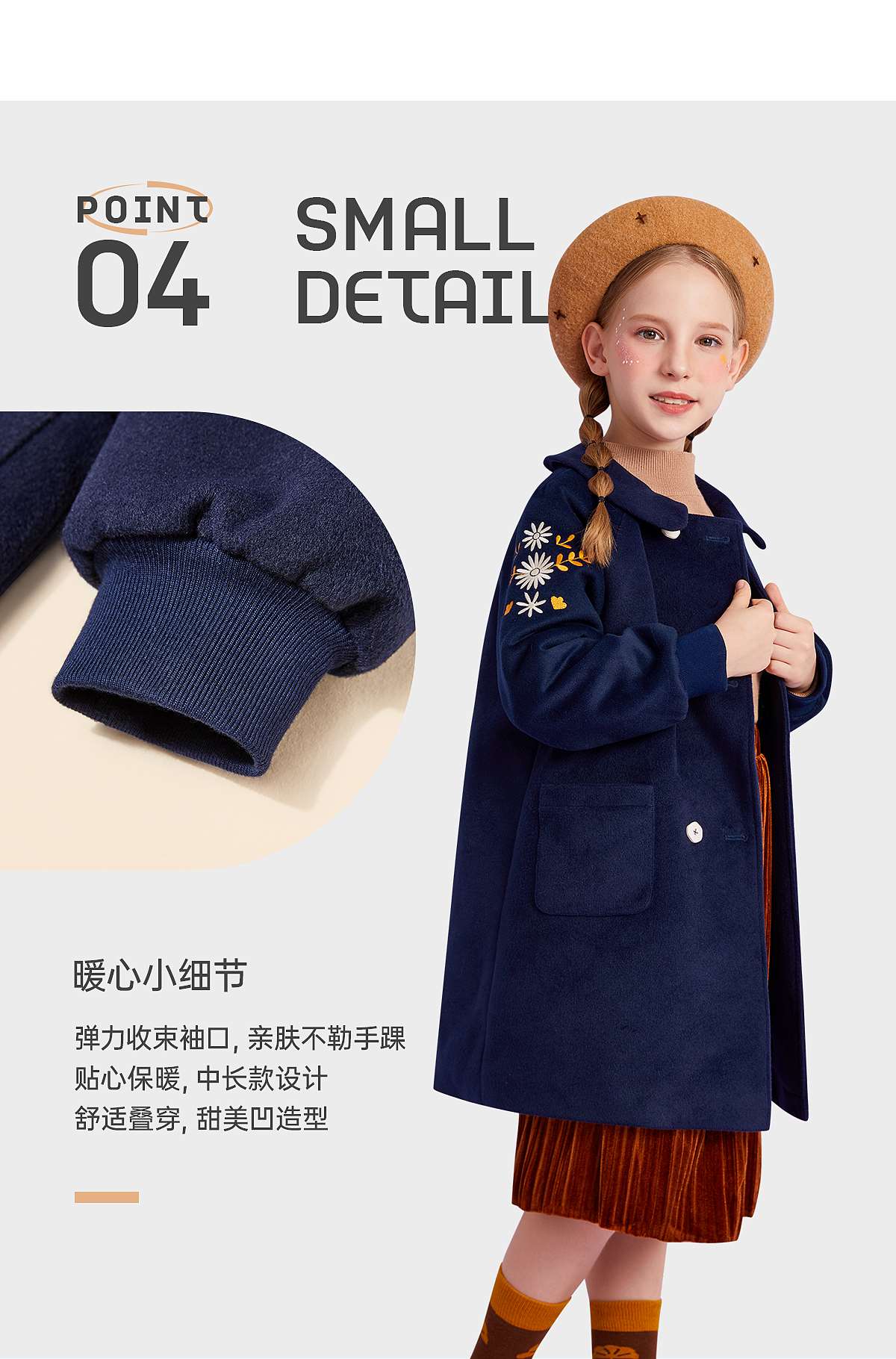 littletime女童毛呢外套秋冬装刺绣2021新款中长儿童加厚保暖大衣