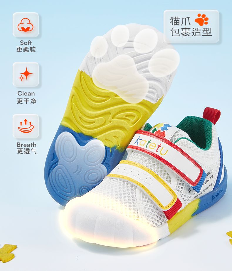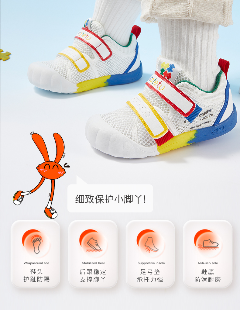 卡特兔喵喵鞋宝宝学步鞋2025秋季小白鞋网眼透气幼儿园室内鞋