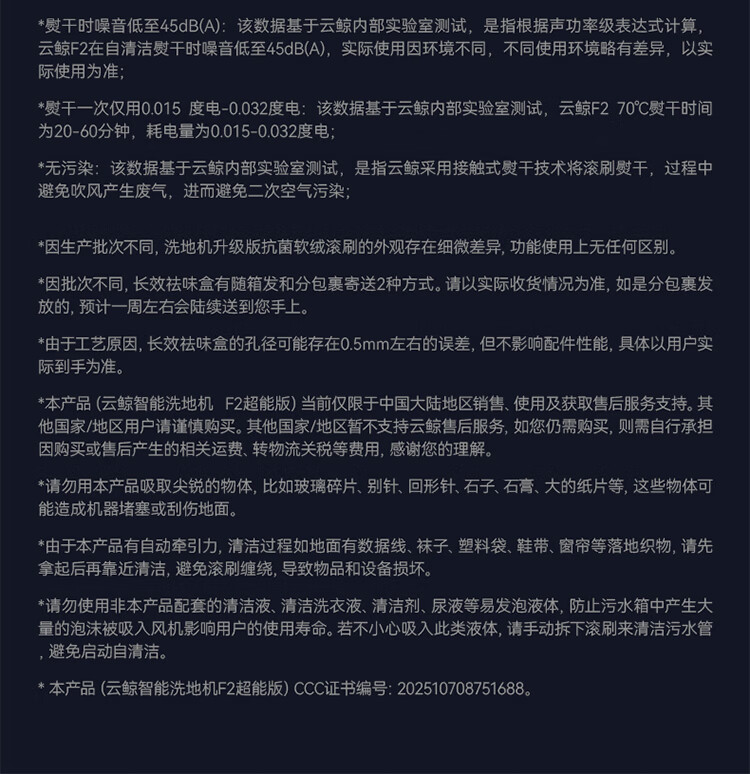 云鲸洗地机F2超能版 【粤湾】