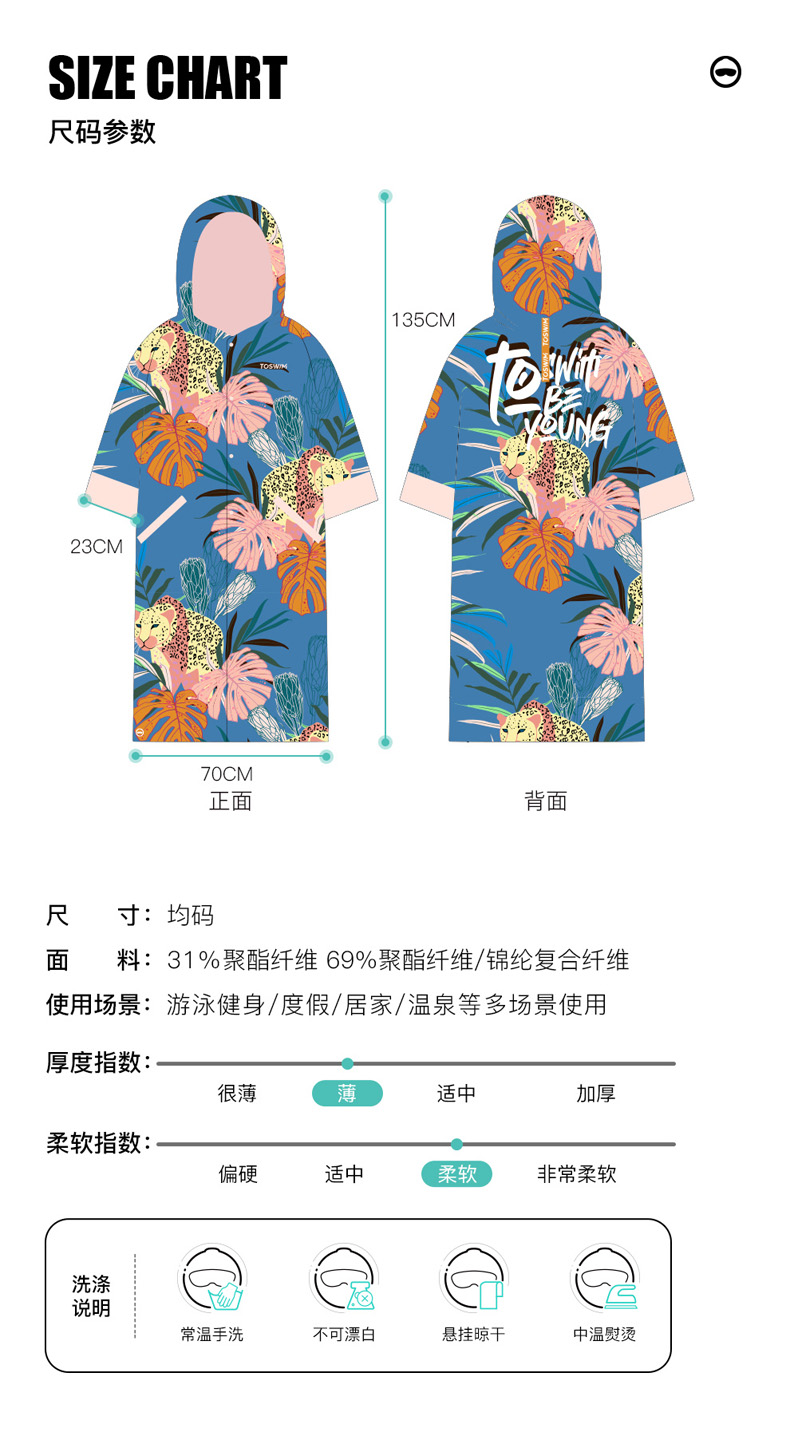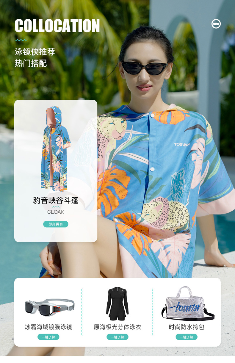 TOSWIM游泳浴袍速干浴巾毛巾沙滩巾防晒潜水温泉速干巾女便携斗篷