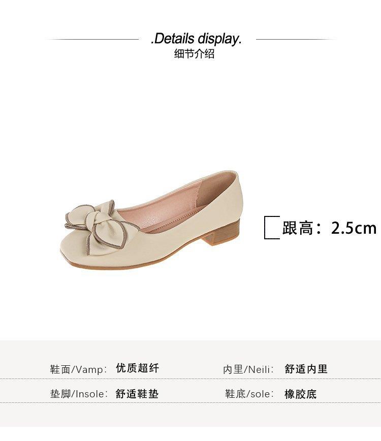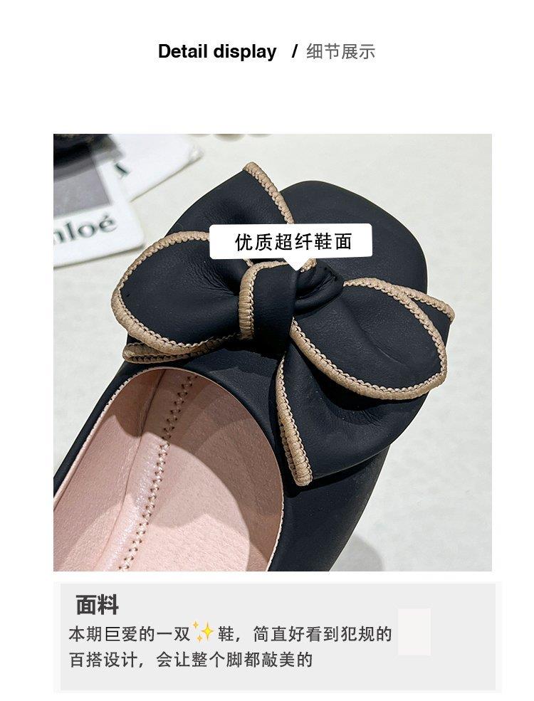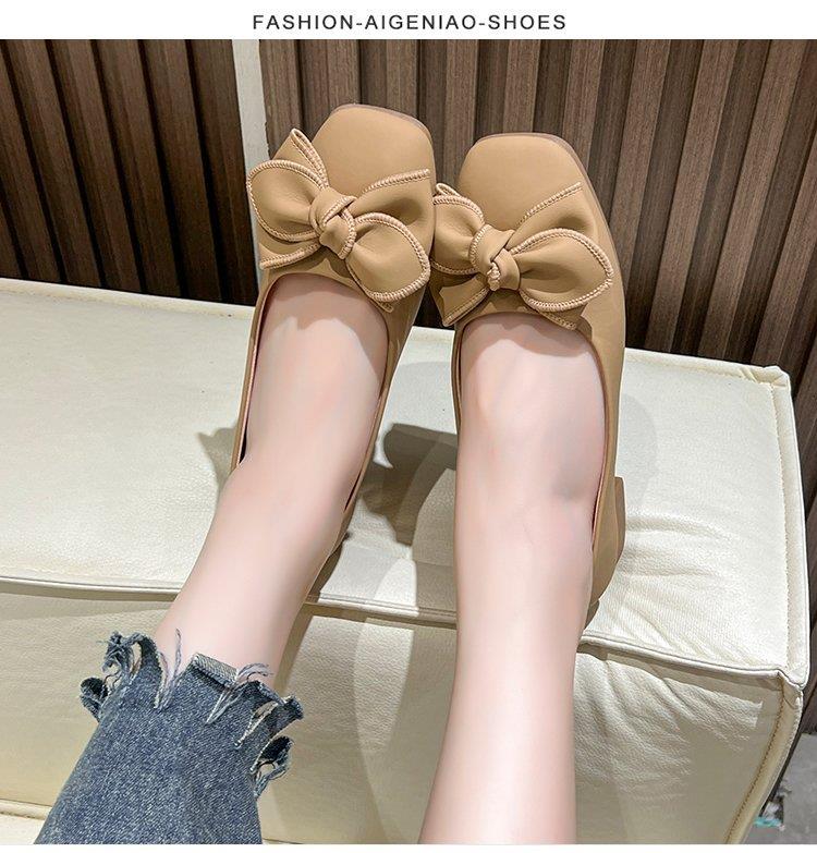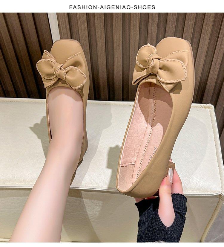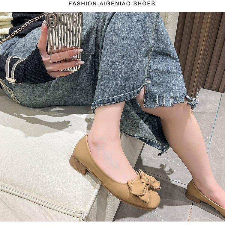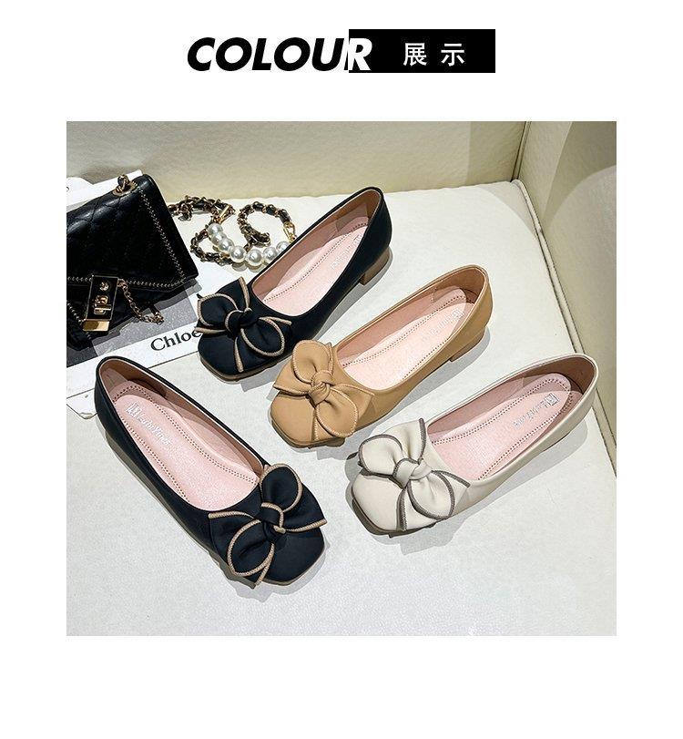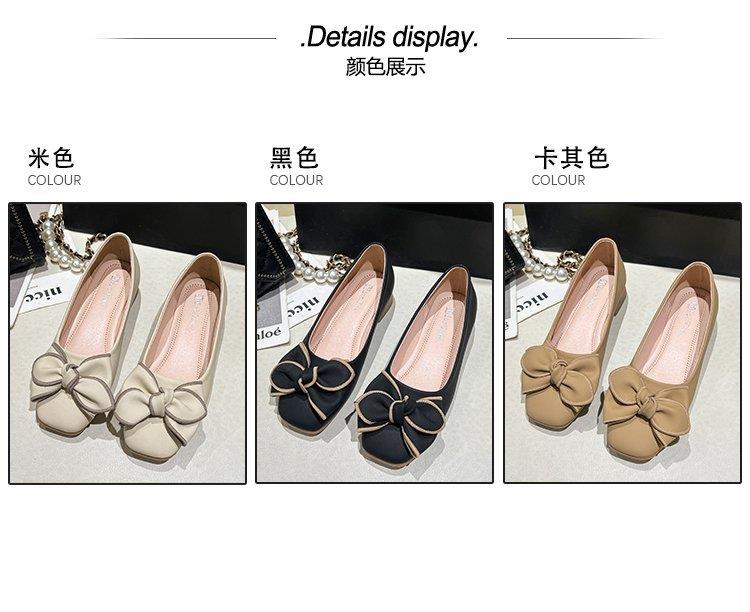 春秋新款小众蝴蝶结方头浅口单鞋女豆豆鞋孕妇瓢鞋平底鞋子35-40★娃娃优选