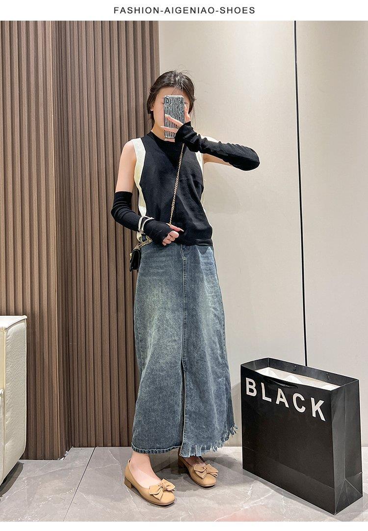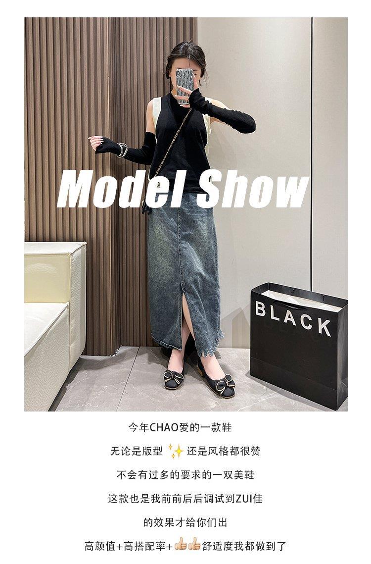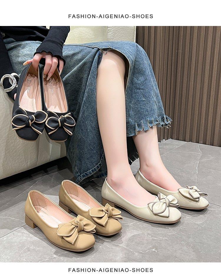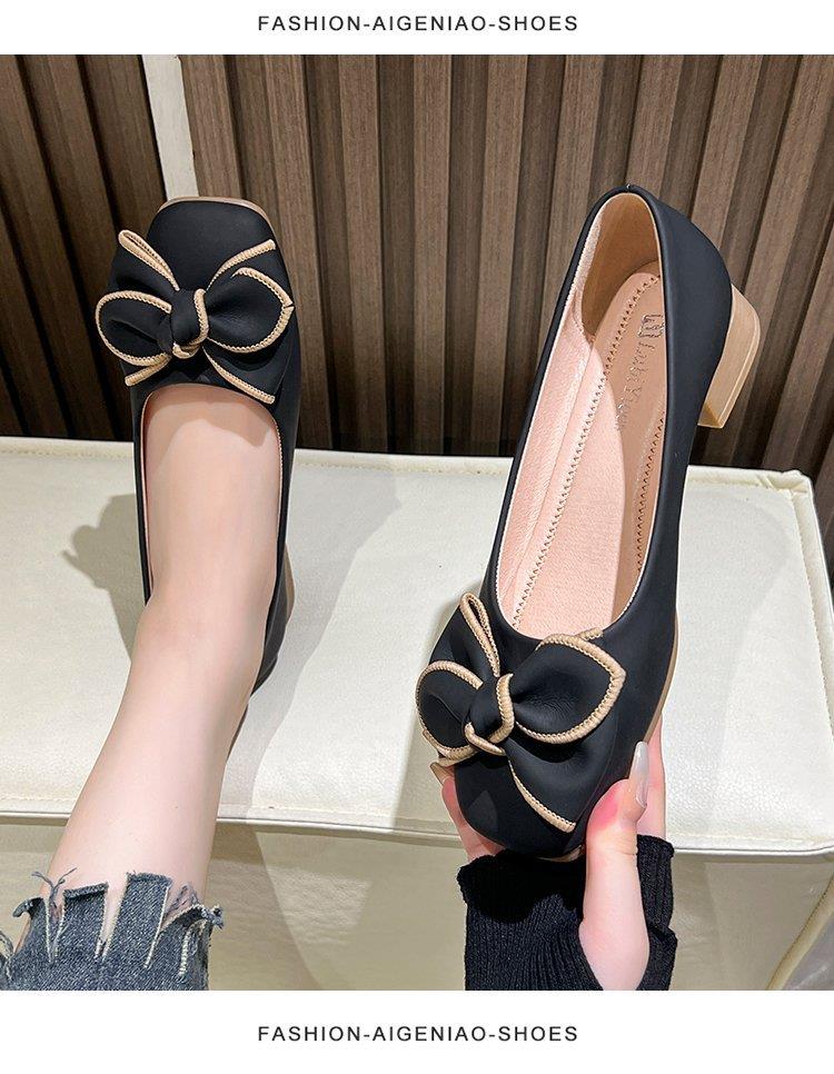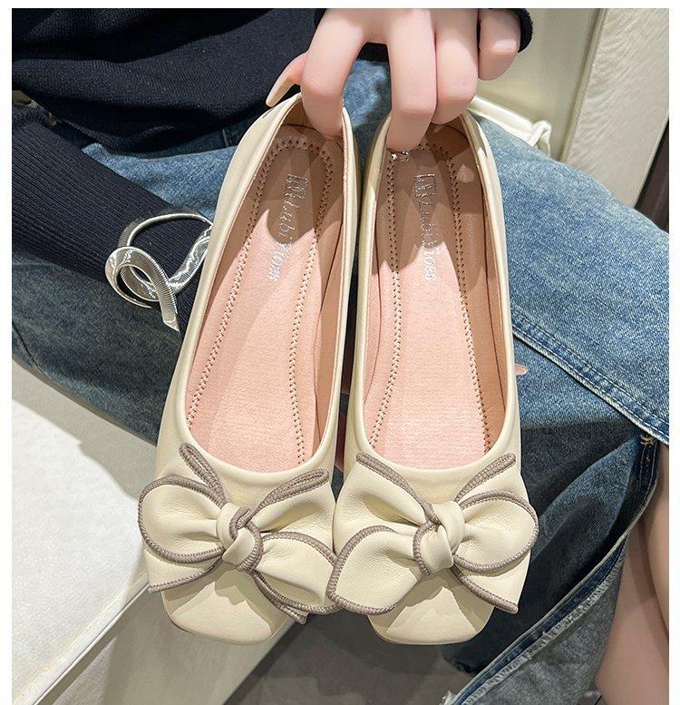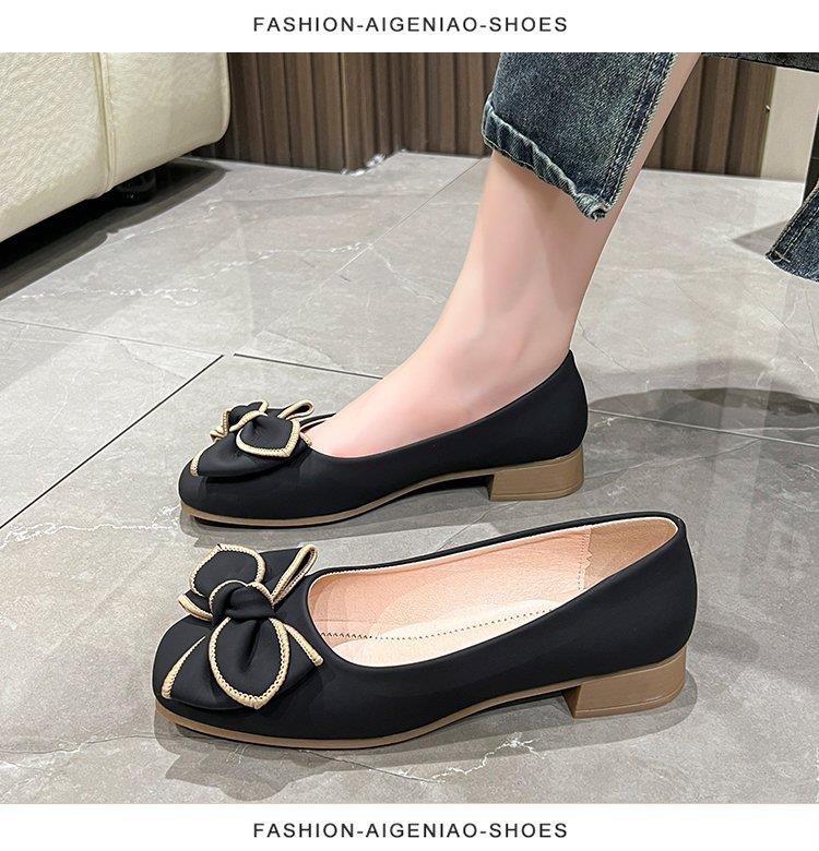 春秋新款小众蝴蝶结方头浅口单鞋女豆豆鞋孕妇瓢鞋平底鞋子35-40★娃娃优选