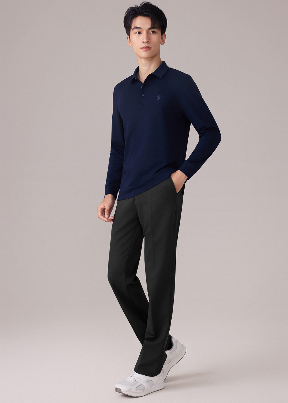 【名盾】撞色长袖Polo衫,新疆长绒棉混纺,透气舒适,柔软不易变形M0CL11694A