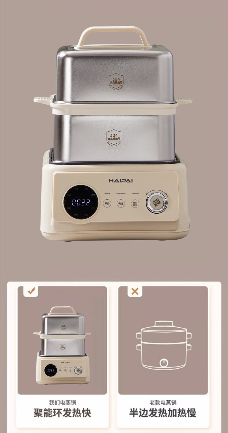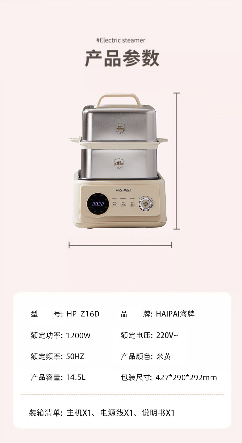 海牌电蒸锅多功能家用三层不锈钢蒸笼_HP-Z16D【K】