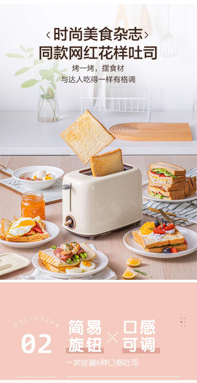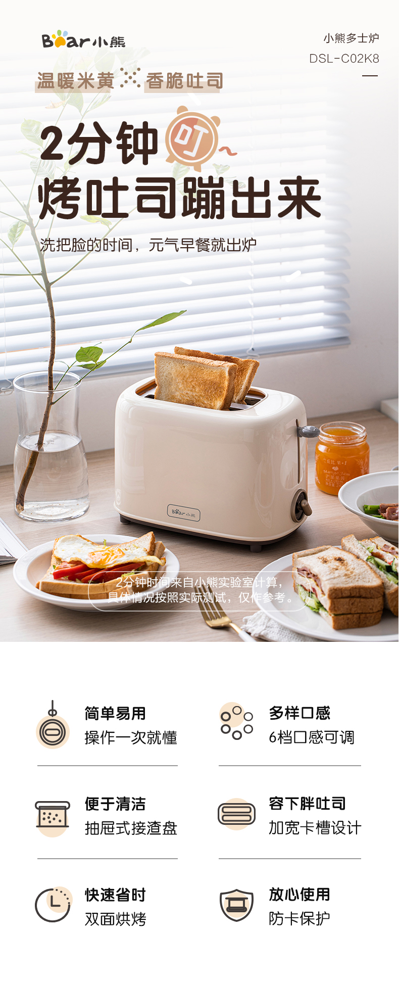 【小程序】小熊(Bear)烤面包机家用全自动多功能多士炉 烘烤不锈钢2片吐司加热机三明治机早餐机DSL-C02K8