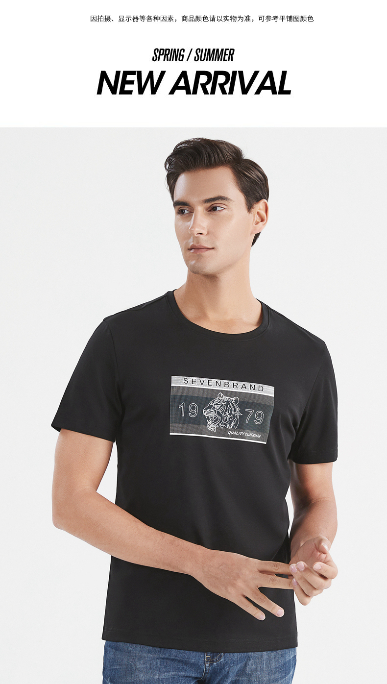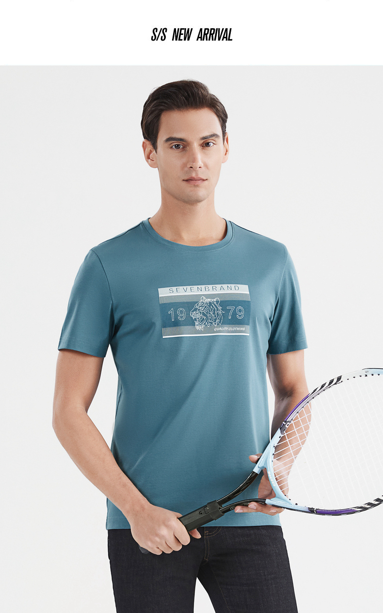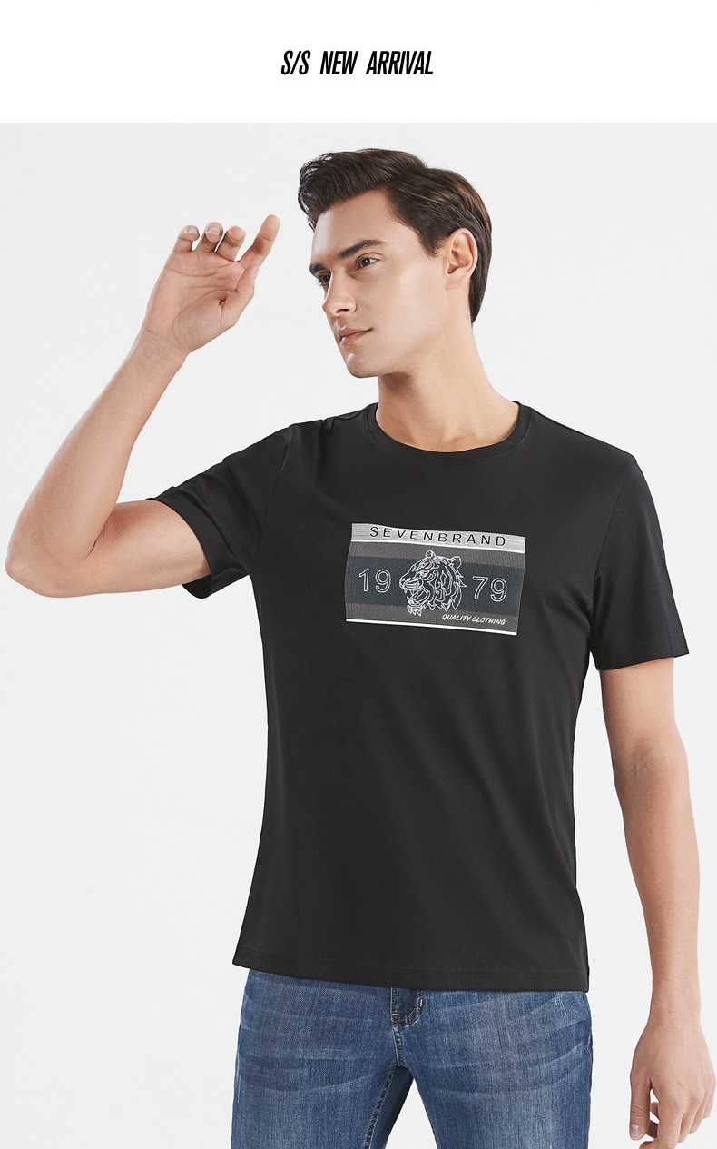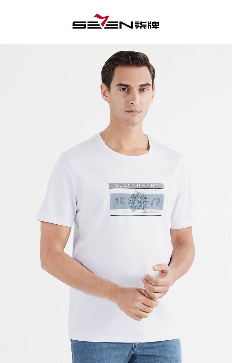柒牌短袖t恤男夏季新款时尚休闲纯棉老虎字母印花圆领上衣薄 122T71160