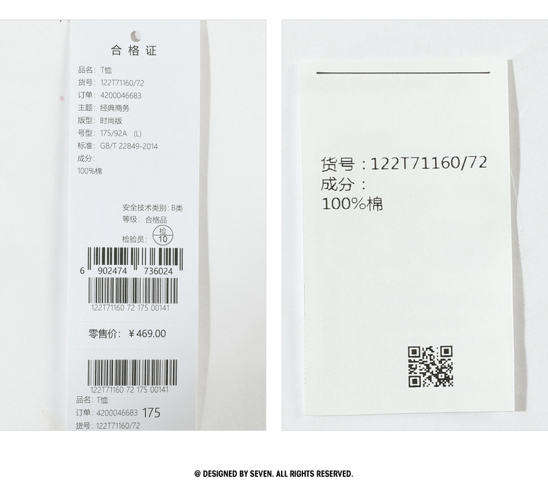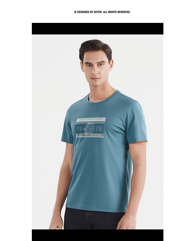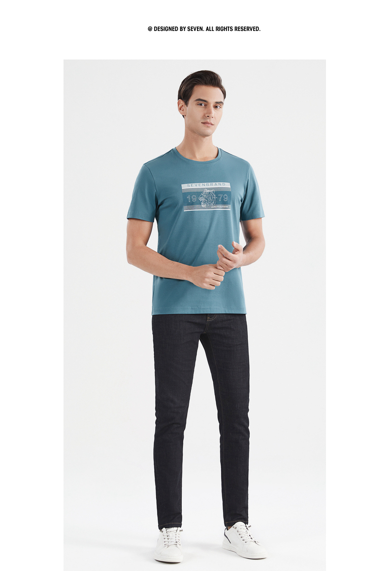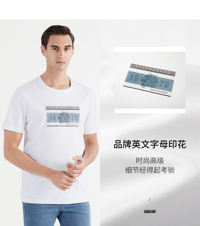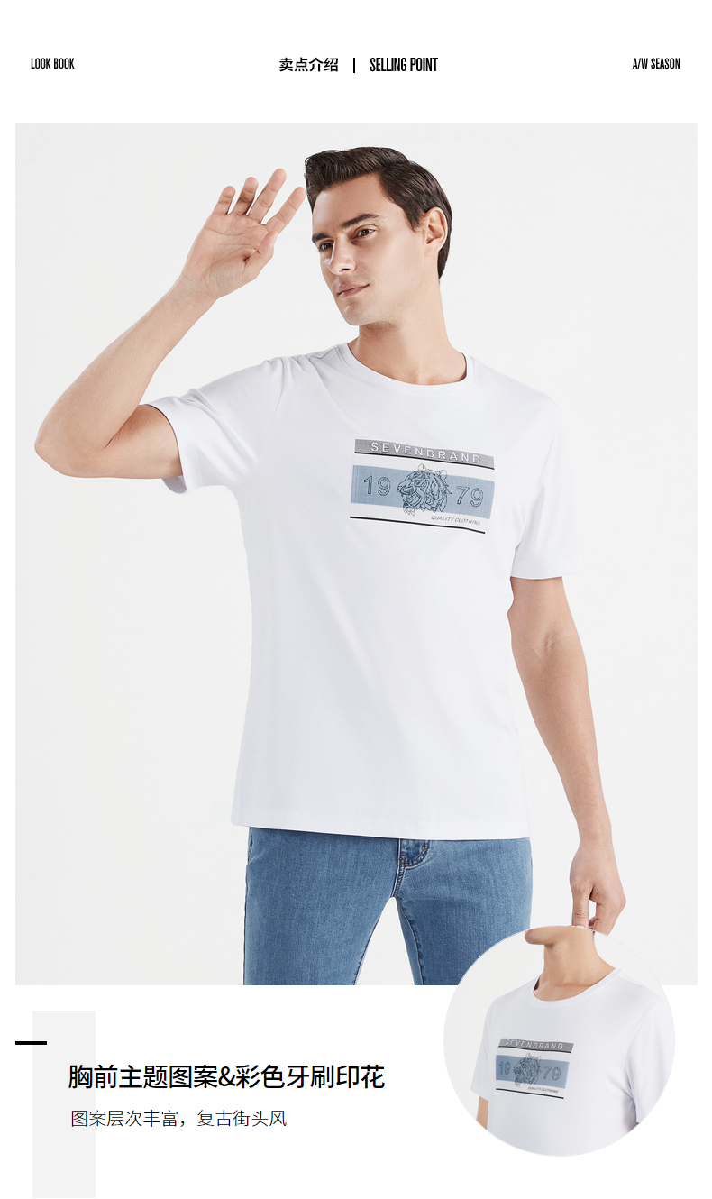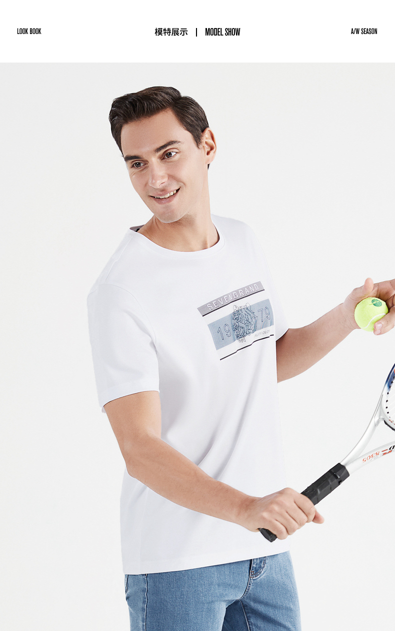 柒牌短袖t恤男夏季新款时尚休闲纯棉老虎字母印花圆领上衣薄 122T71160