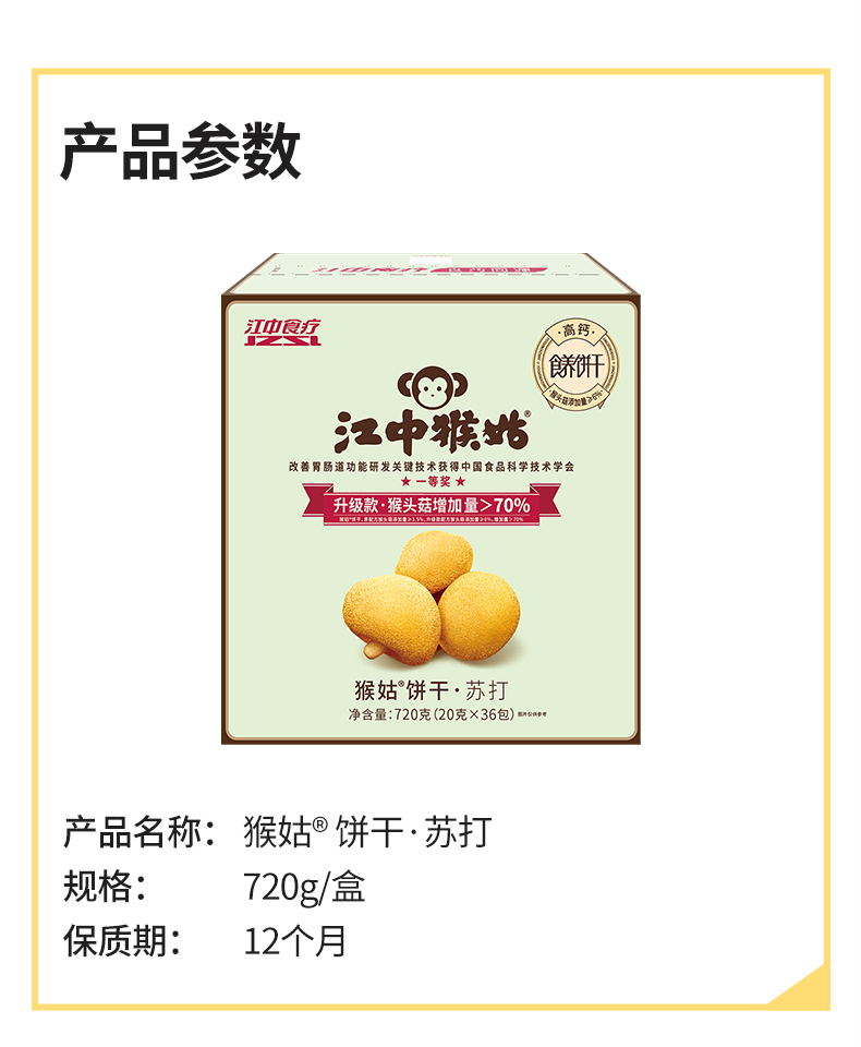 江中猴姑咸味碱性养胃苏打猴头菇饼干中和胃酸中老年人孕妇小孩休闲解馋零食 15天装 36包/720g/盒 2025年10月生产/保质期12个月