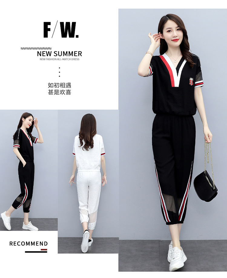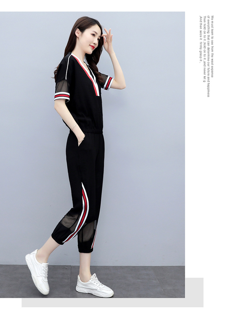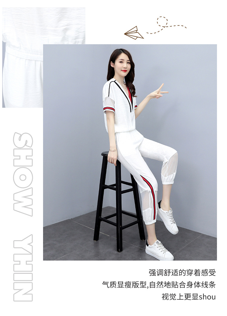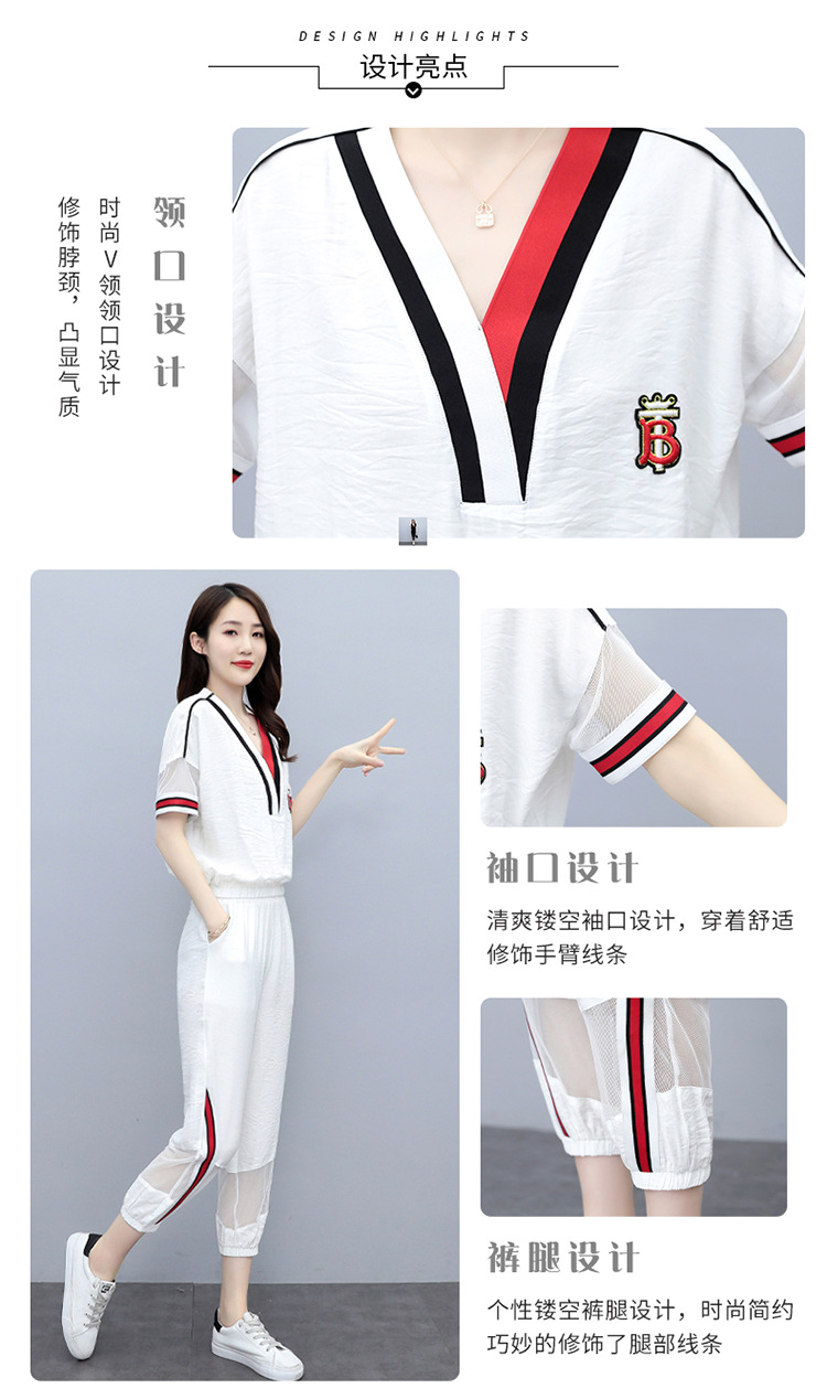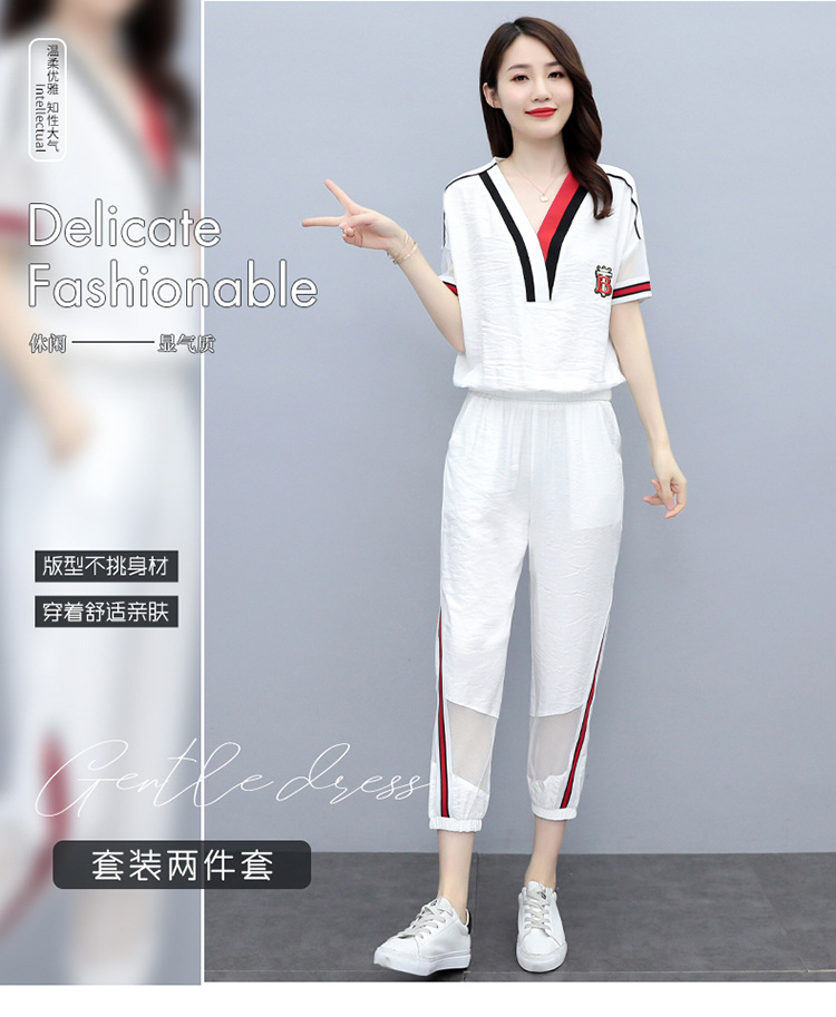 新款简约时尚气质减龄V领设计休闲舒适两件套装HR-WW8059