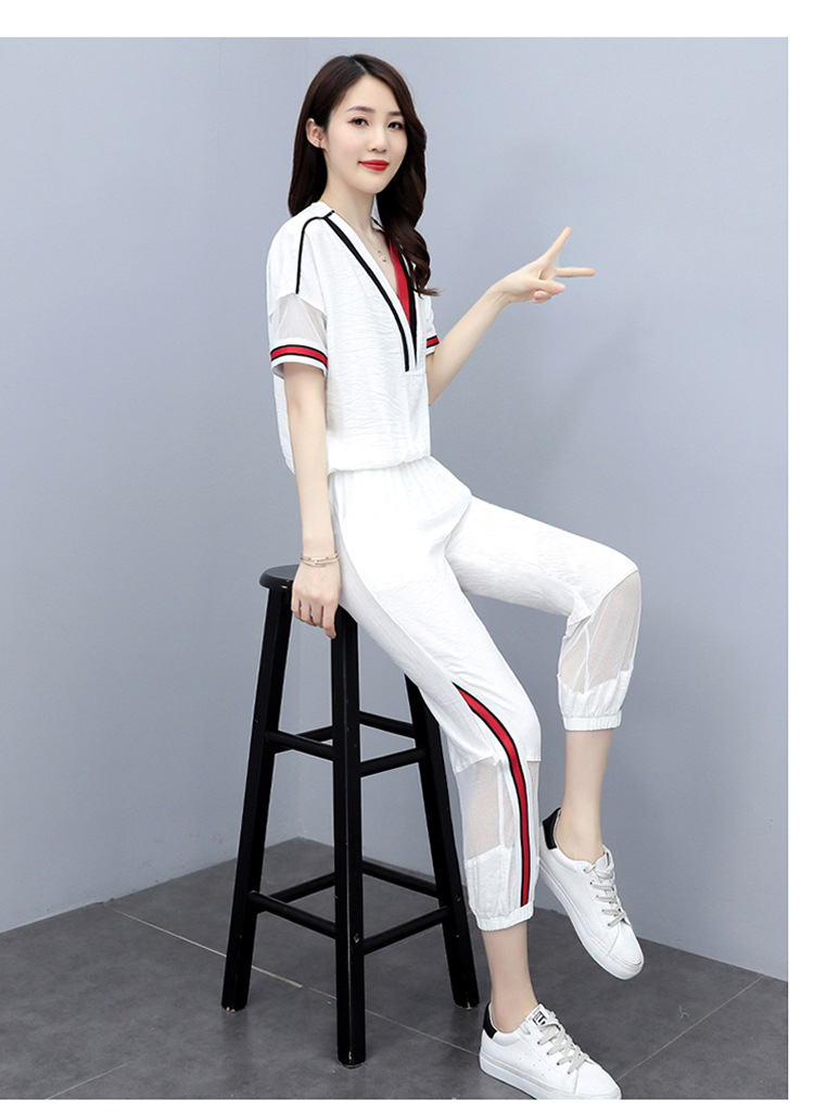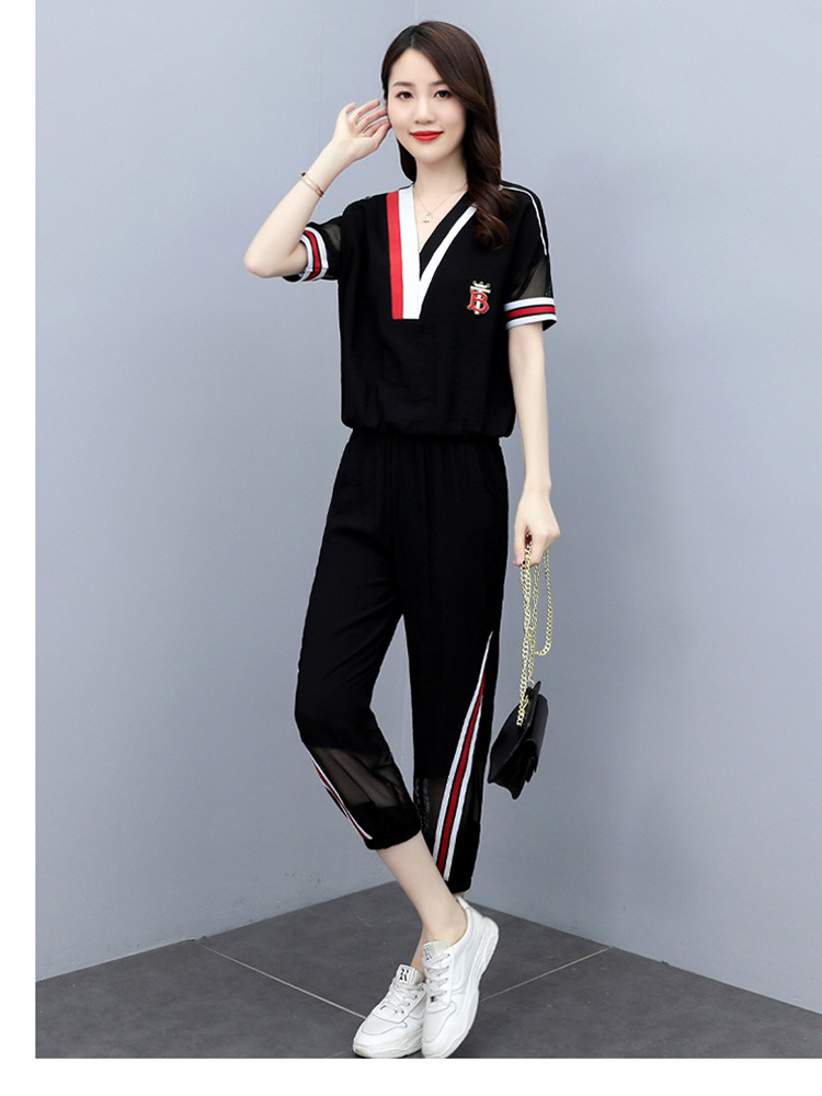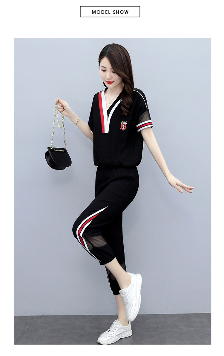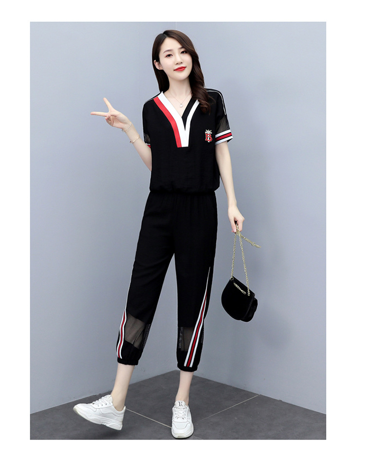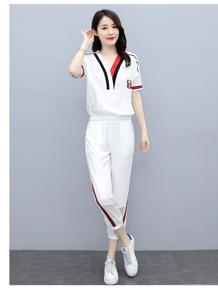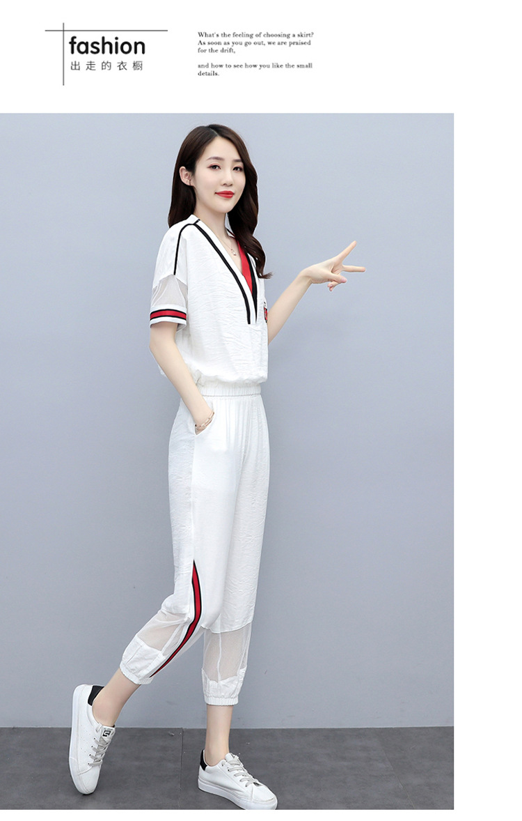 新款简约时尚气质减龄V领设计休闲舒适两件套装HR-WW8059