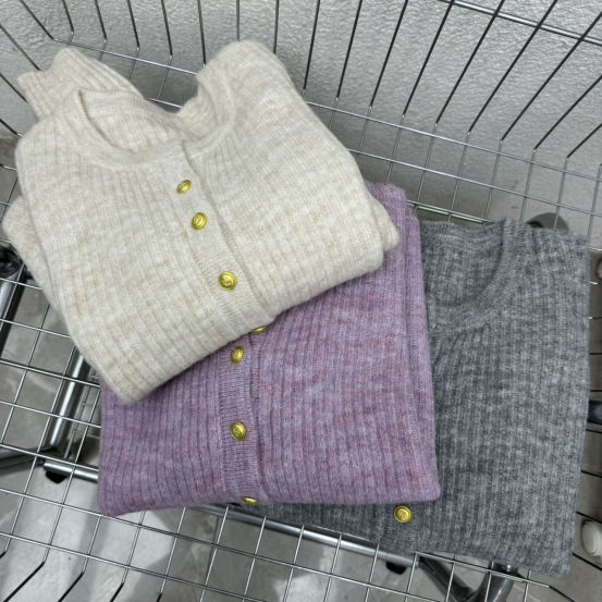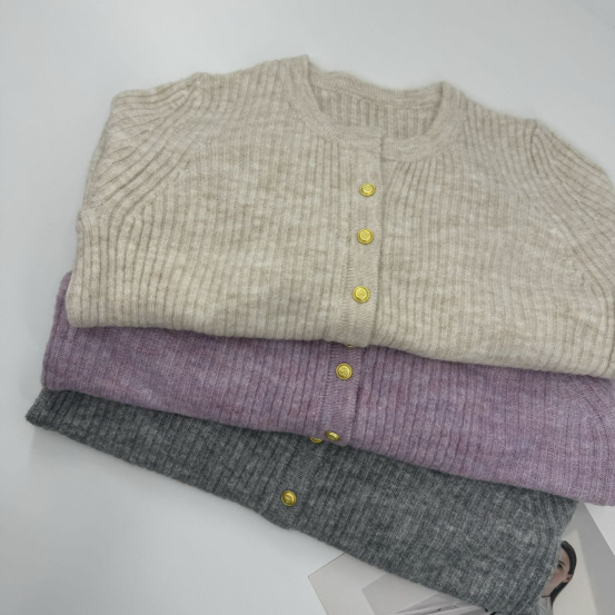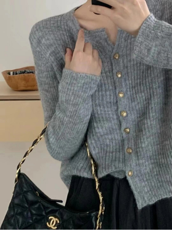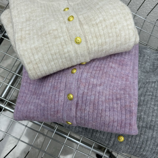 这种基础款小圆领针织开衫请给我来一打! 既可以和高领、大衣叠穿,也可以和衬衫套搭 一年三季的实穿BAI搭小_王_者! 正肩微松版型,肩线几公分放量,胳膊也是舒适的