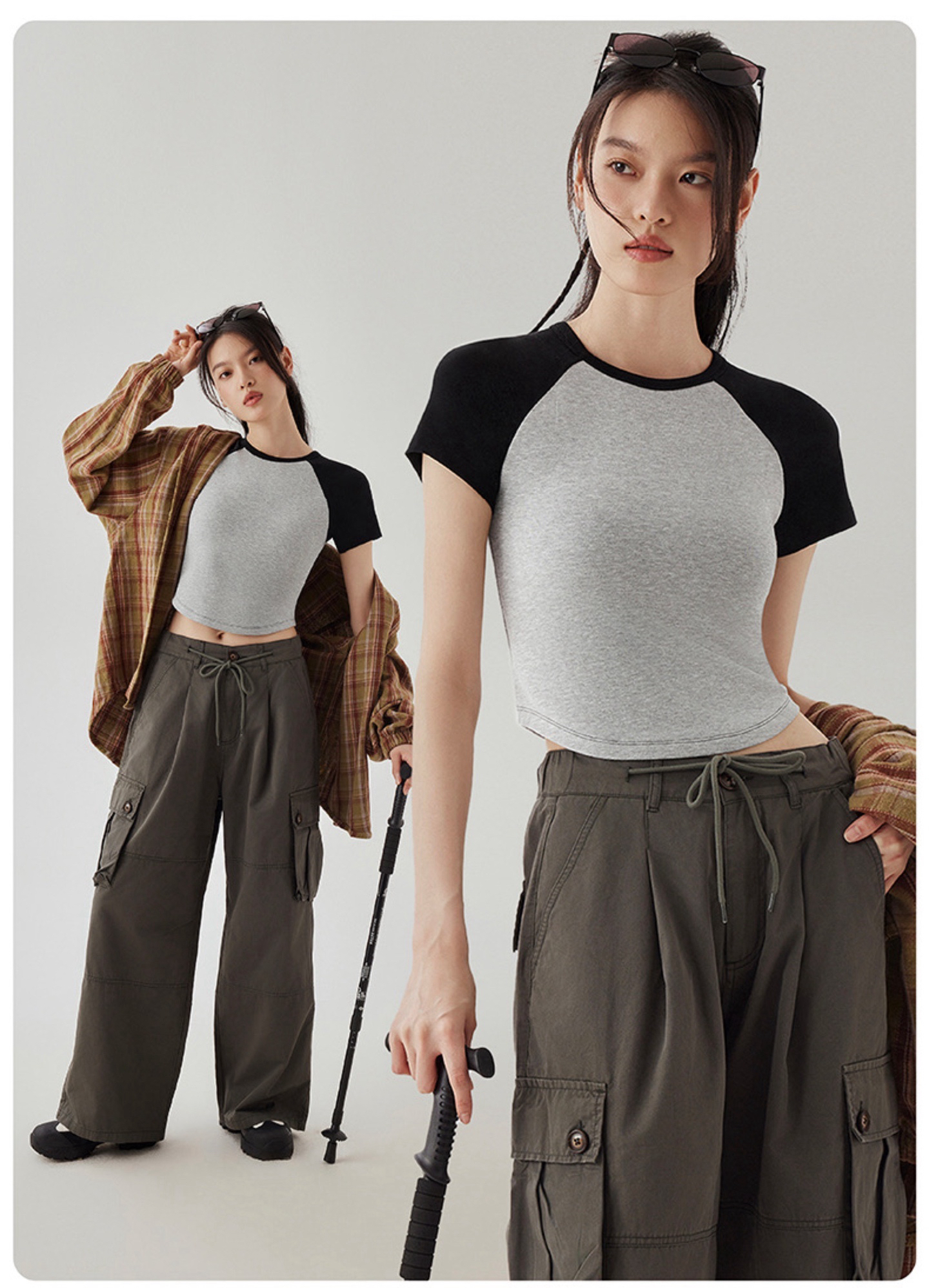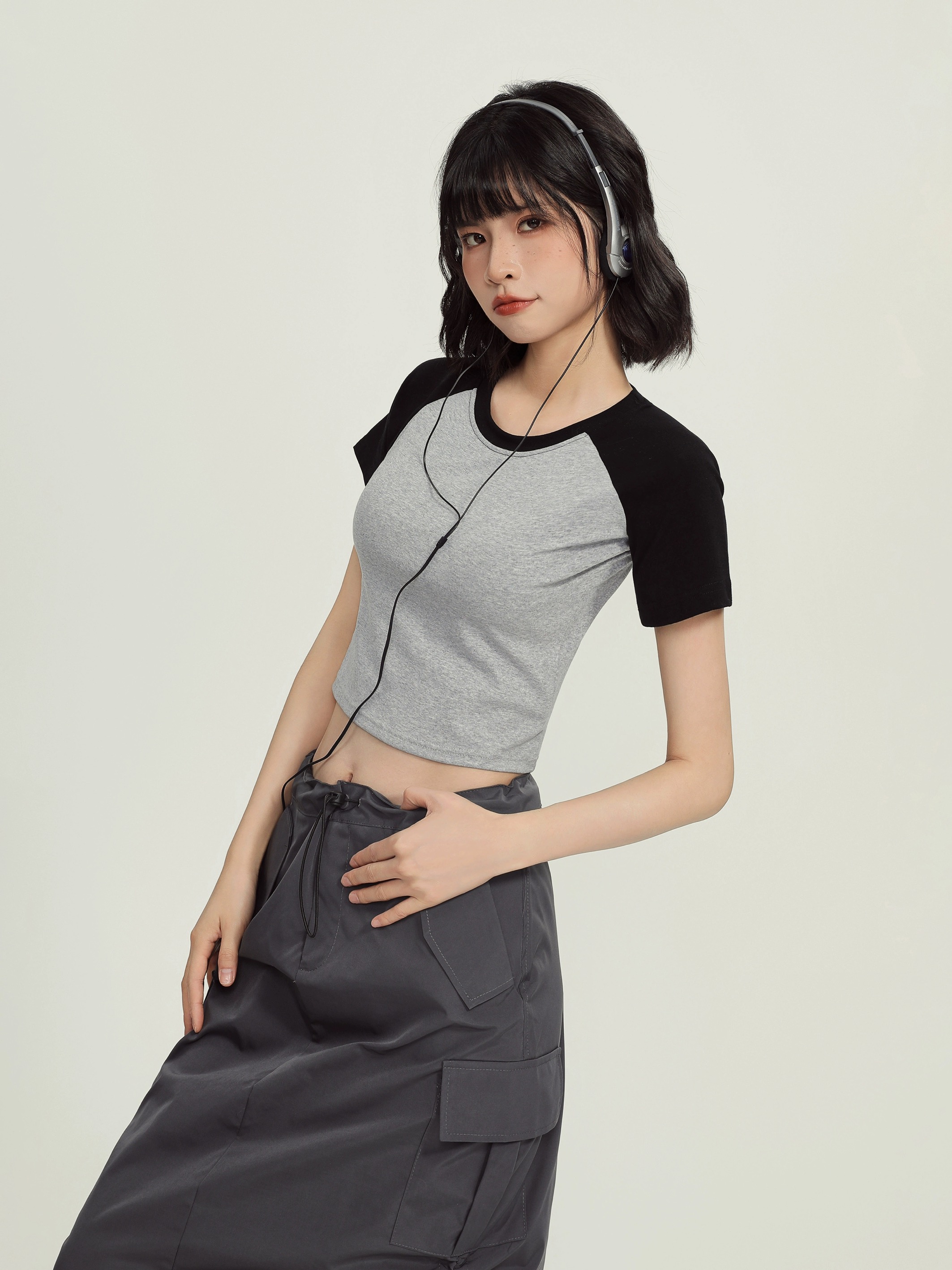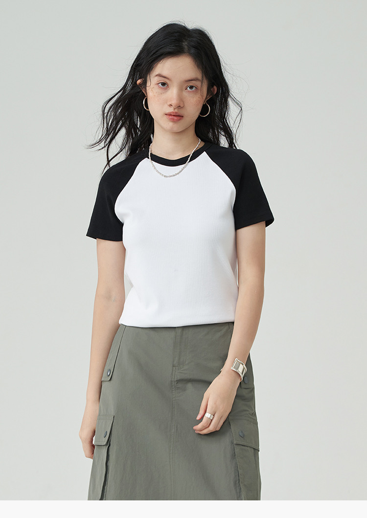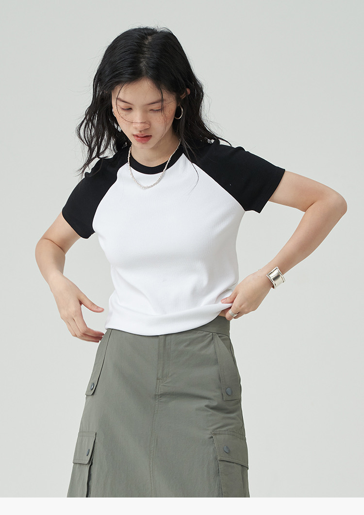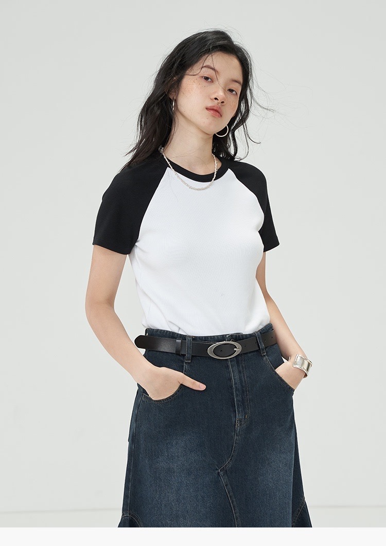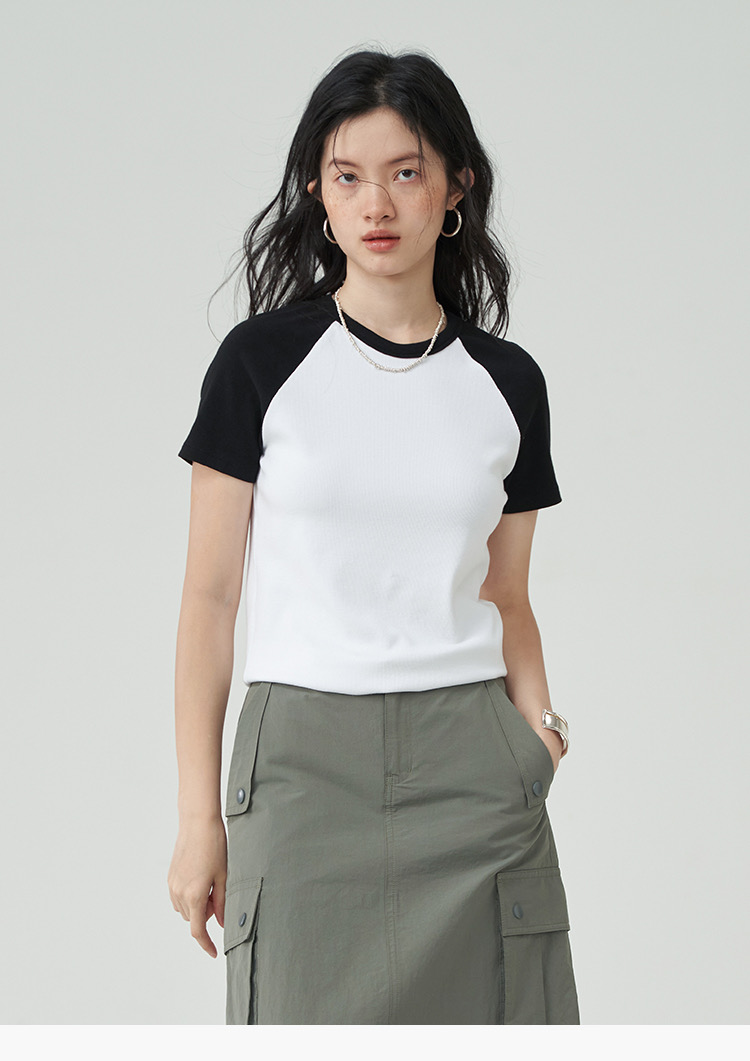 SUTUS/《巴斯拼色T恤》丨夏季新款 洋气设计感撞色T恤 圆领百搭上衣