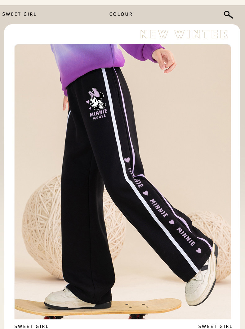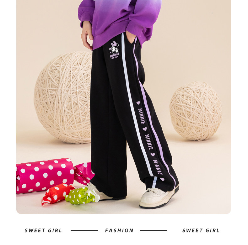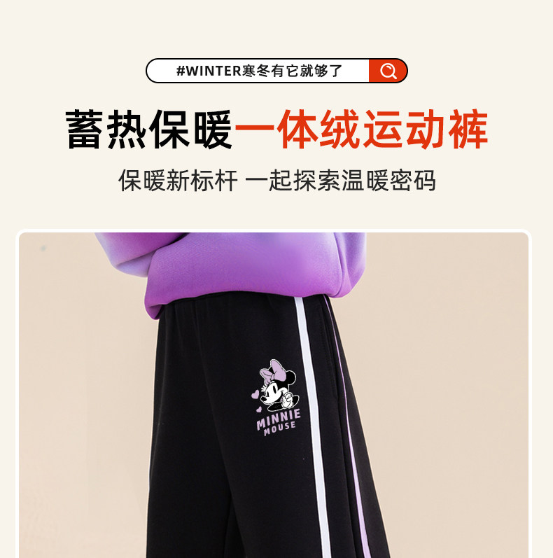 贝田女童加绒阔腿裤冬季儿童裤子2024新款加厚一体绒休闲运动长裤