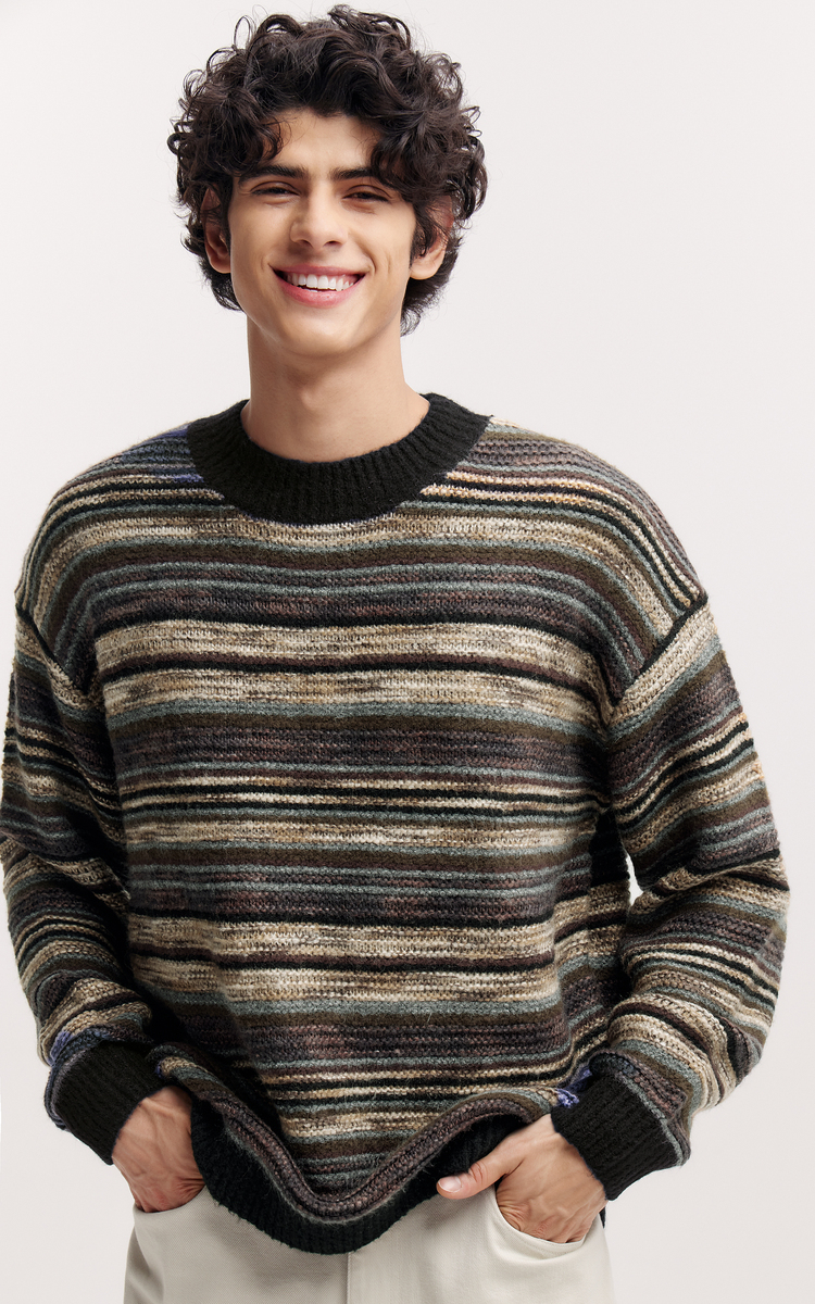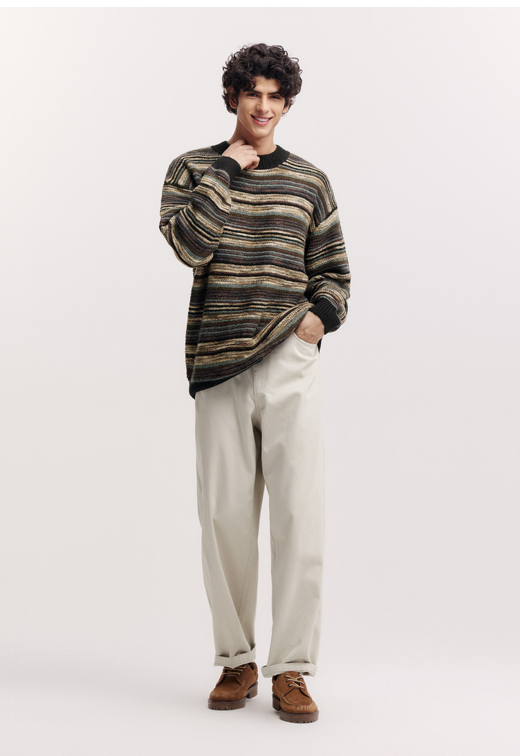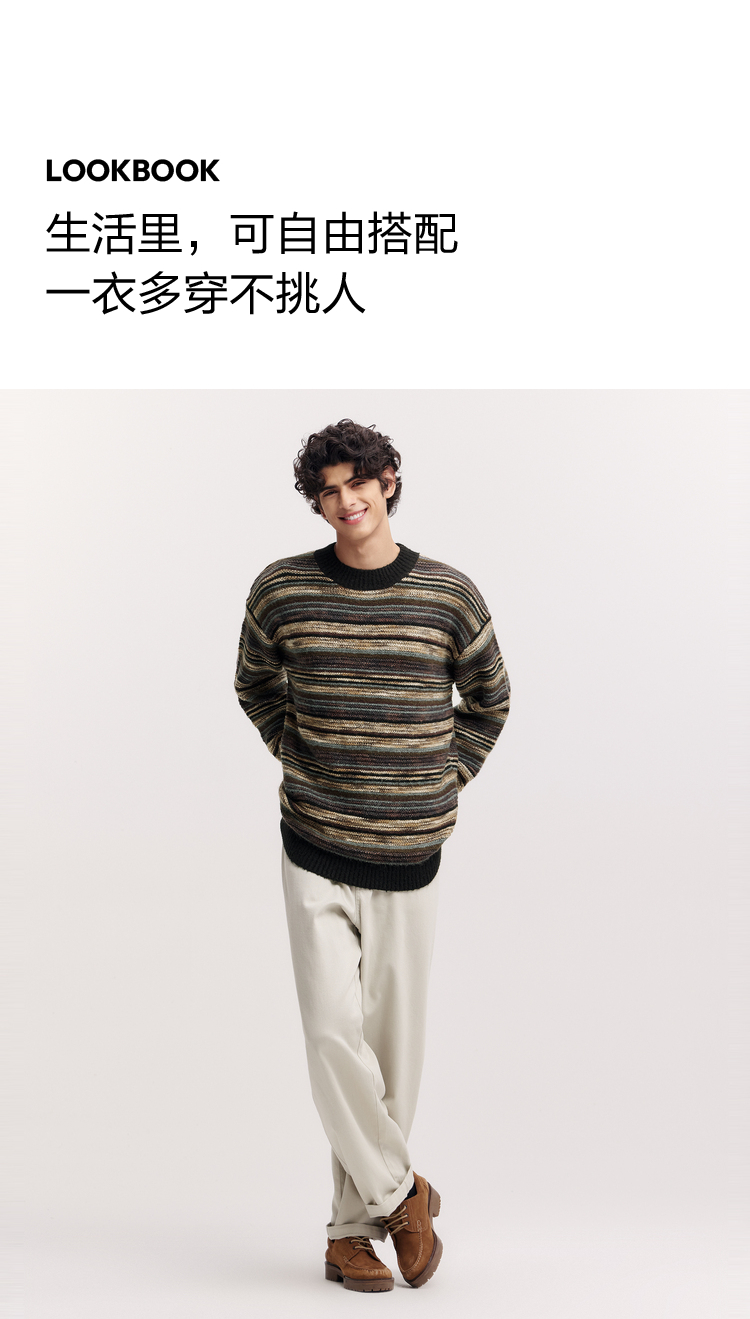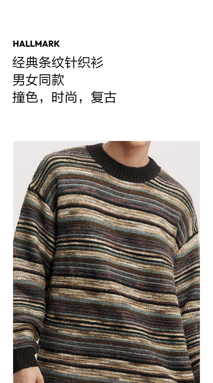 森马毛衫男冬新款经典撞色条纹针织衫宽松内搭上衣时尚情侣装