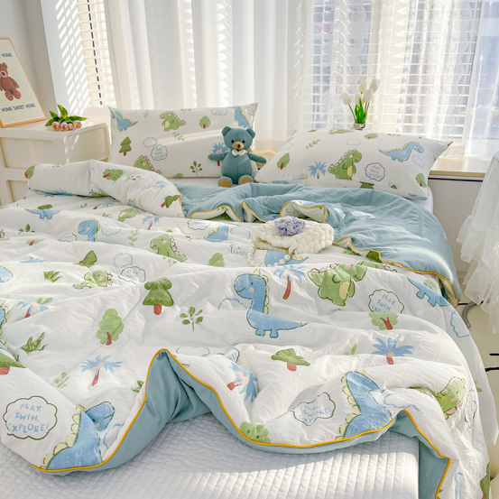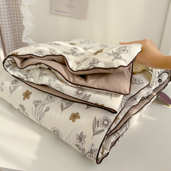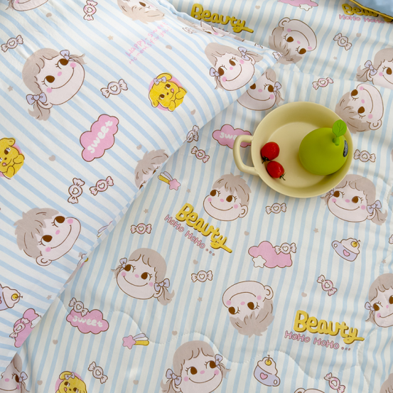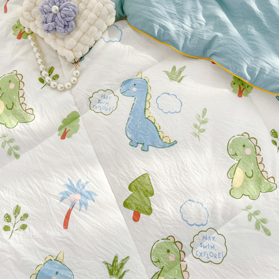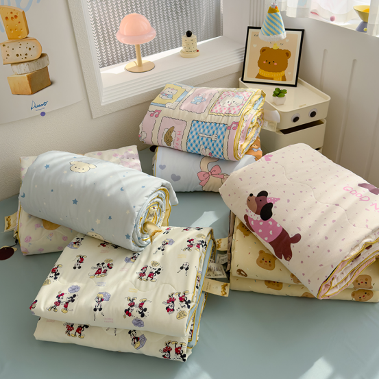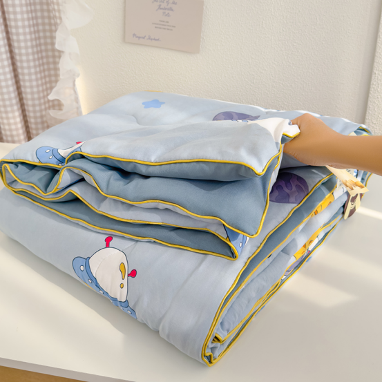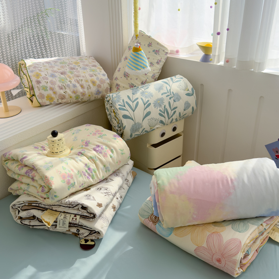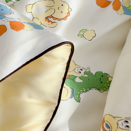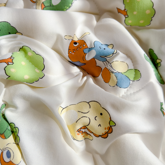 与普通被子相比,它集透气、舒适、轻盈、柔软为一体!小尺寸做了3款超可爱的图案 其余图案都是所有尺码通选! 弹弹软软、轻盈蓬松,凉而不冰还好打理,可机洗,尤其适合皮肤娇嫩的孩子盖。 摸上去丝滑柔软,就像羽毛一样轻柔的触感,细腻柔软,裸睡无压力。