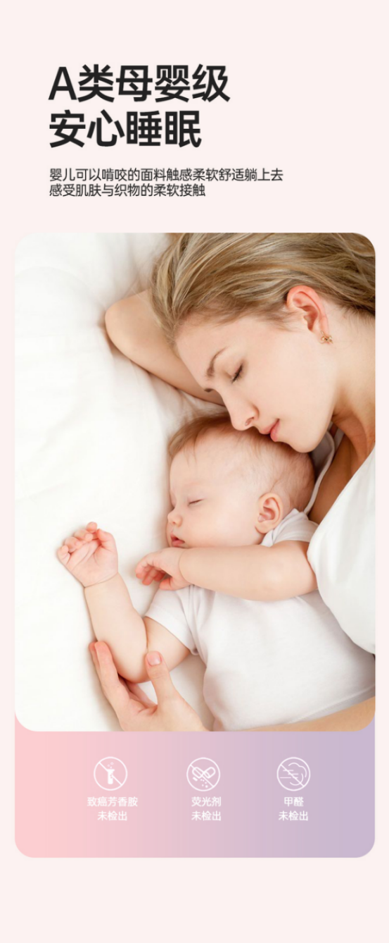 环保植物活性印染,在印染过程中不添加偶氮和甲醛,不含对人体有害的物质,洗多少遍都不褪色,睡起来更放心! A类母婴级面料,孕妇宝宝都能亲肤使用