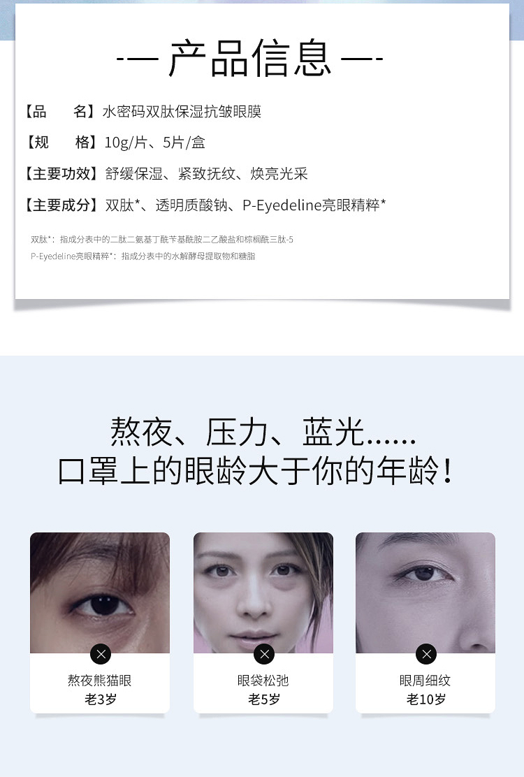 水密码专研双肽保湿抗皱眼膜5片/盒
