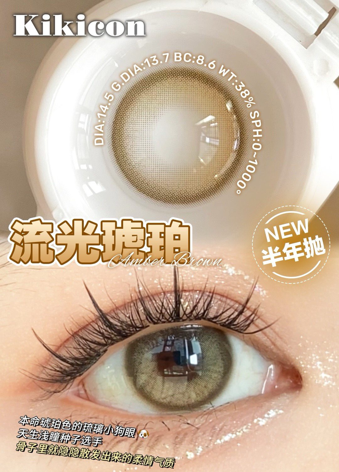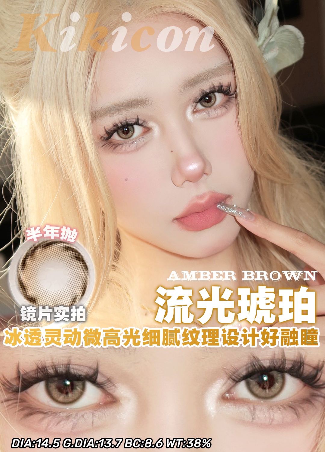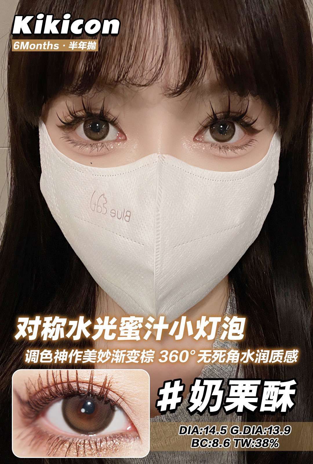 Kikicon半年抛黑冰糖/蜜糖巧/奶糖灰棕蓝/海盐珍珠硅水凝胶美瞳