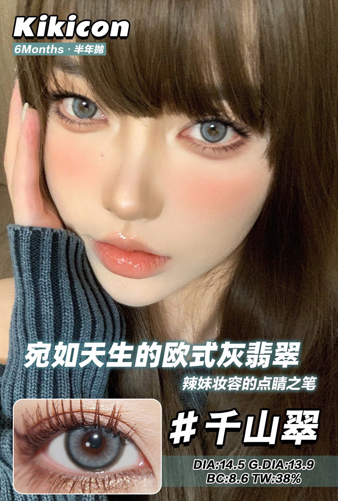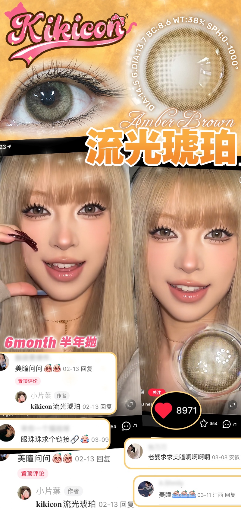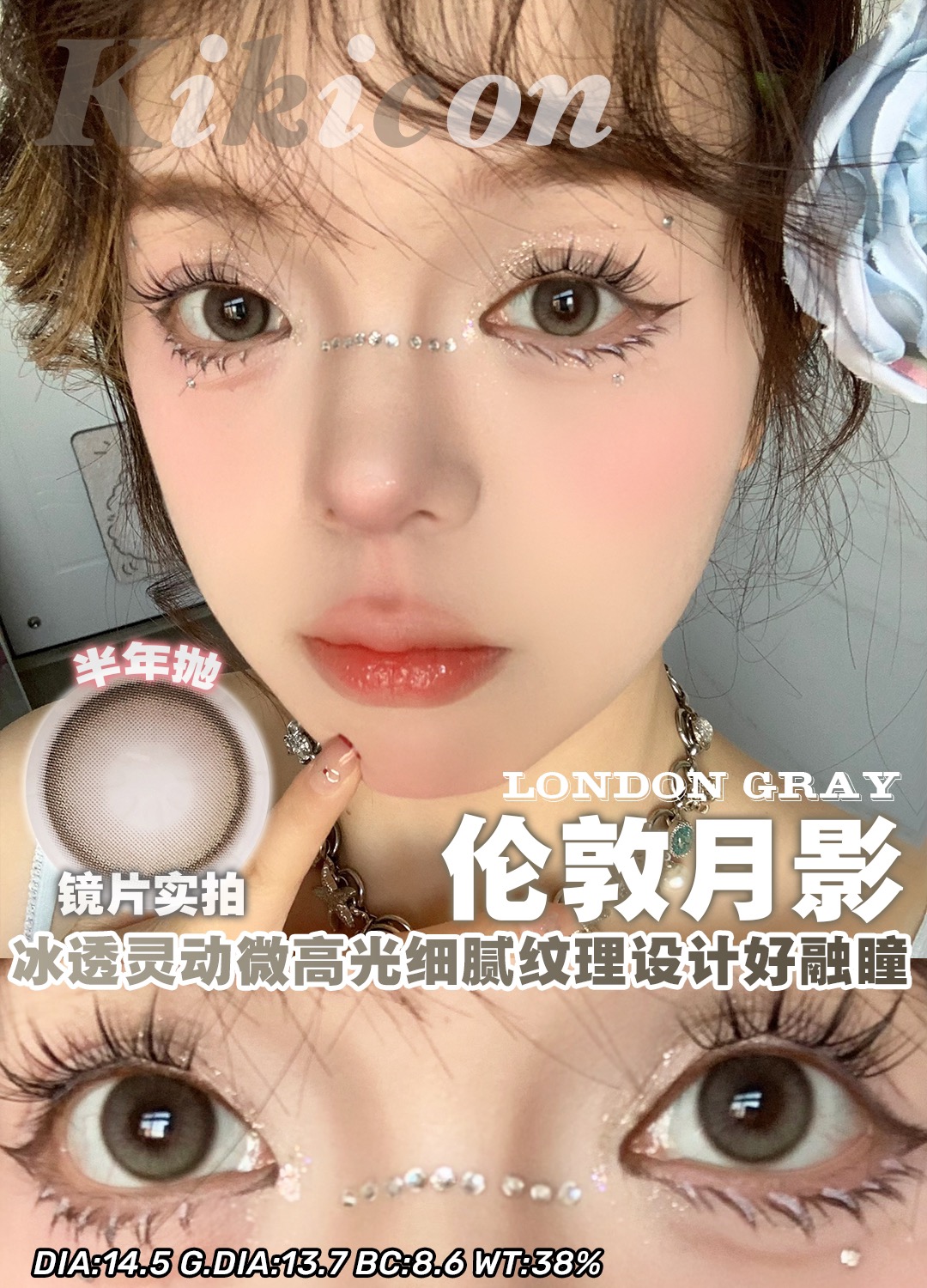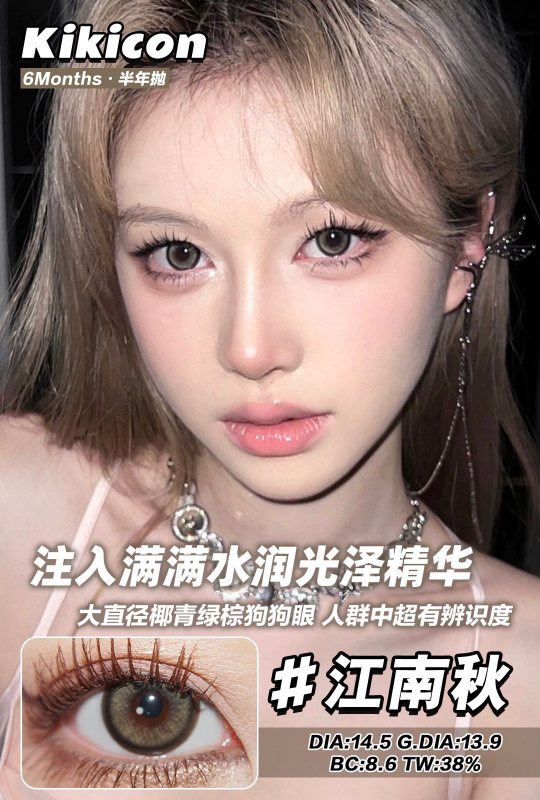 Kikicon半年抛黑冰糖/蜜糖巧/奶糖灰棕蓝/海盐珍珠硅水凝胶美瞳