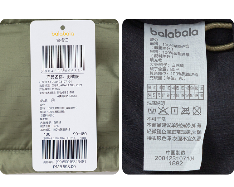 巴拉巴拉儿童羽绒服男童外套冬装新款宝宝童装加厚保暖亲子装