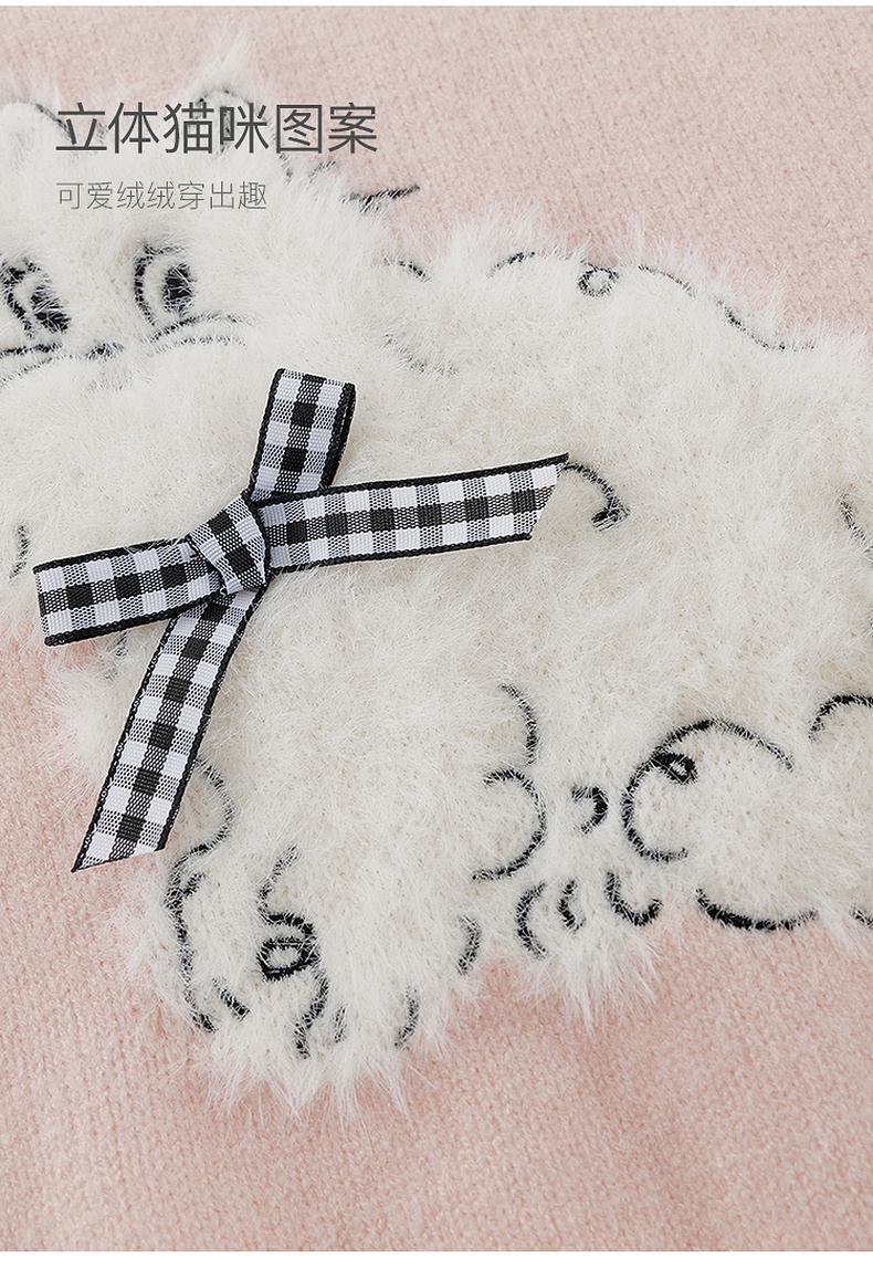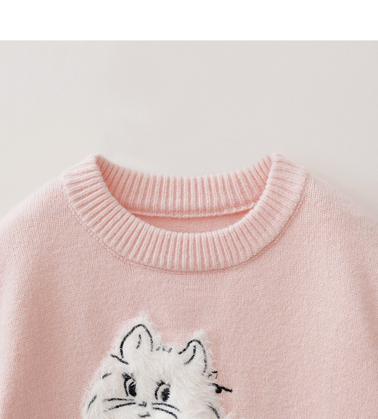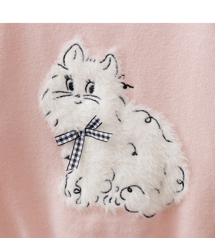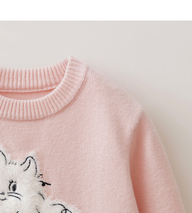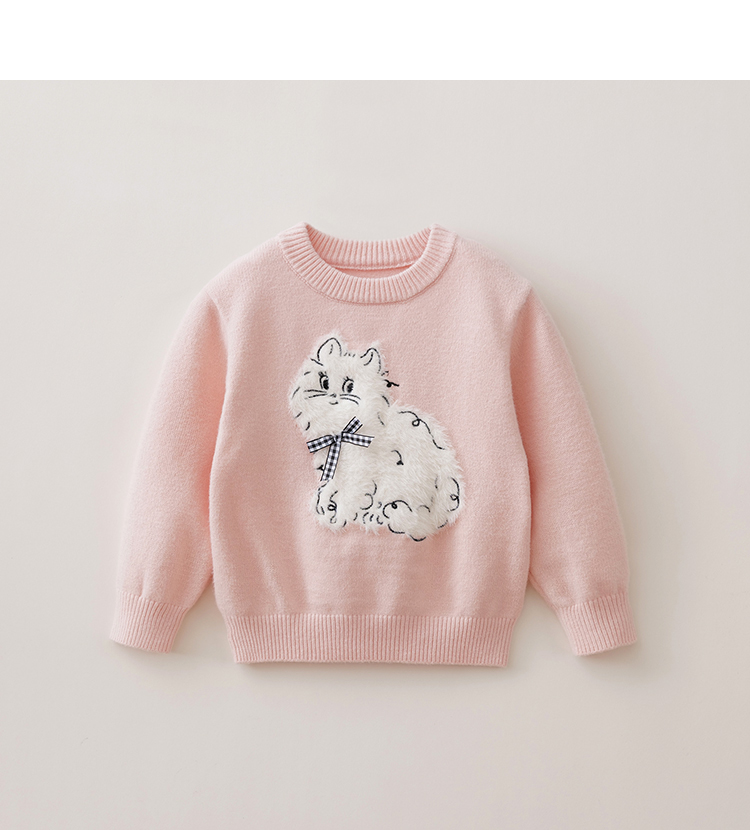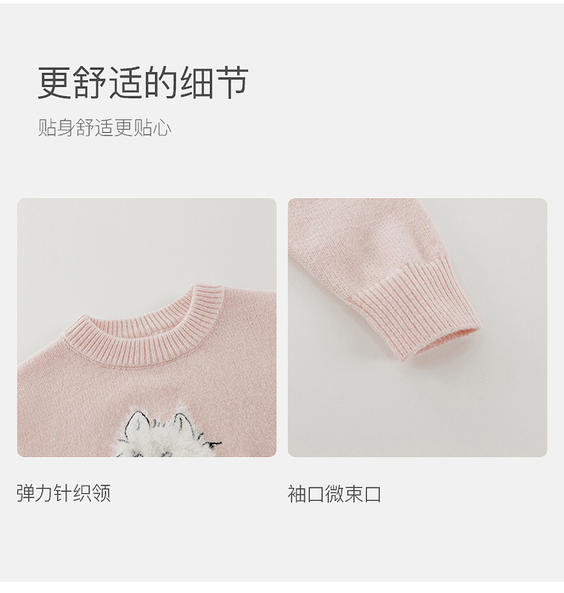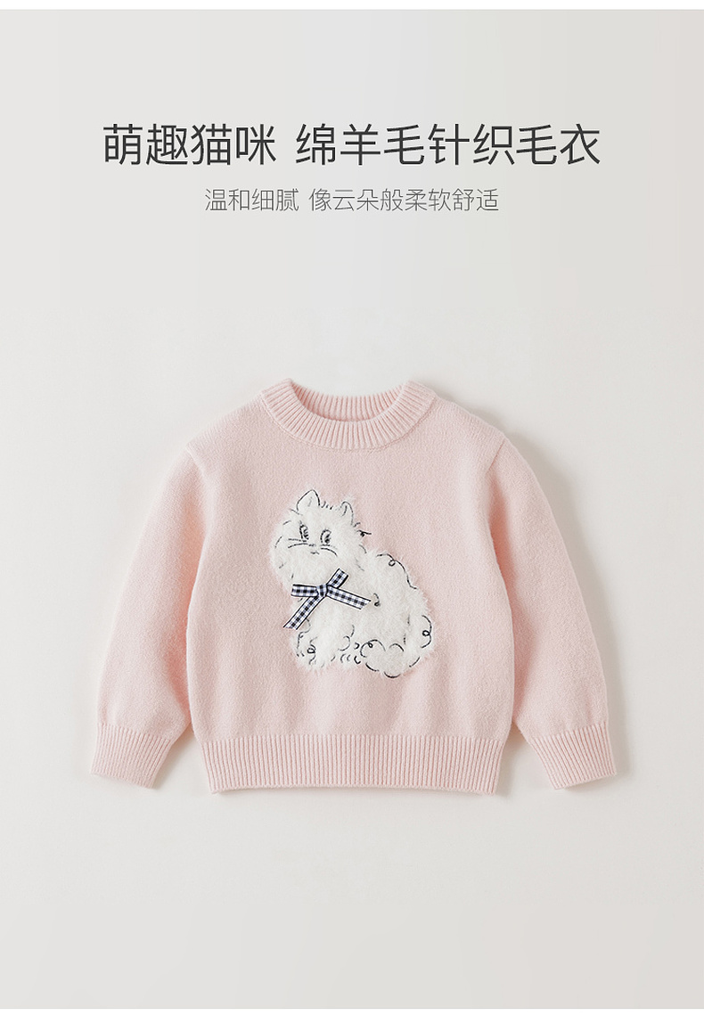 马克珍妮女童萌趣猫咪绵羊毛针织毛衣2025年冬装新款551927