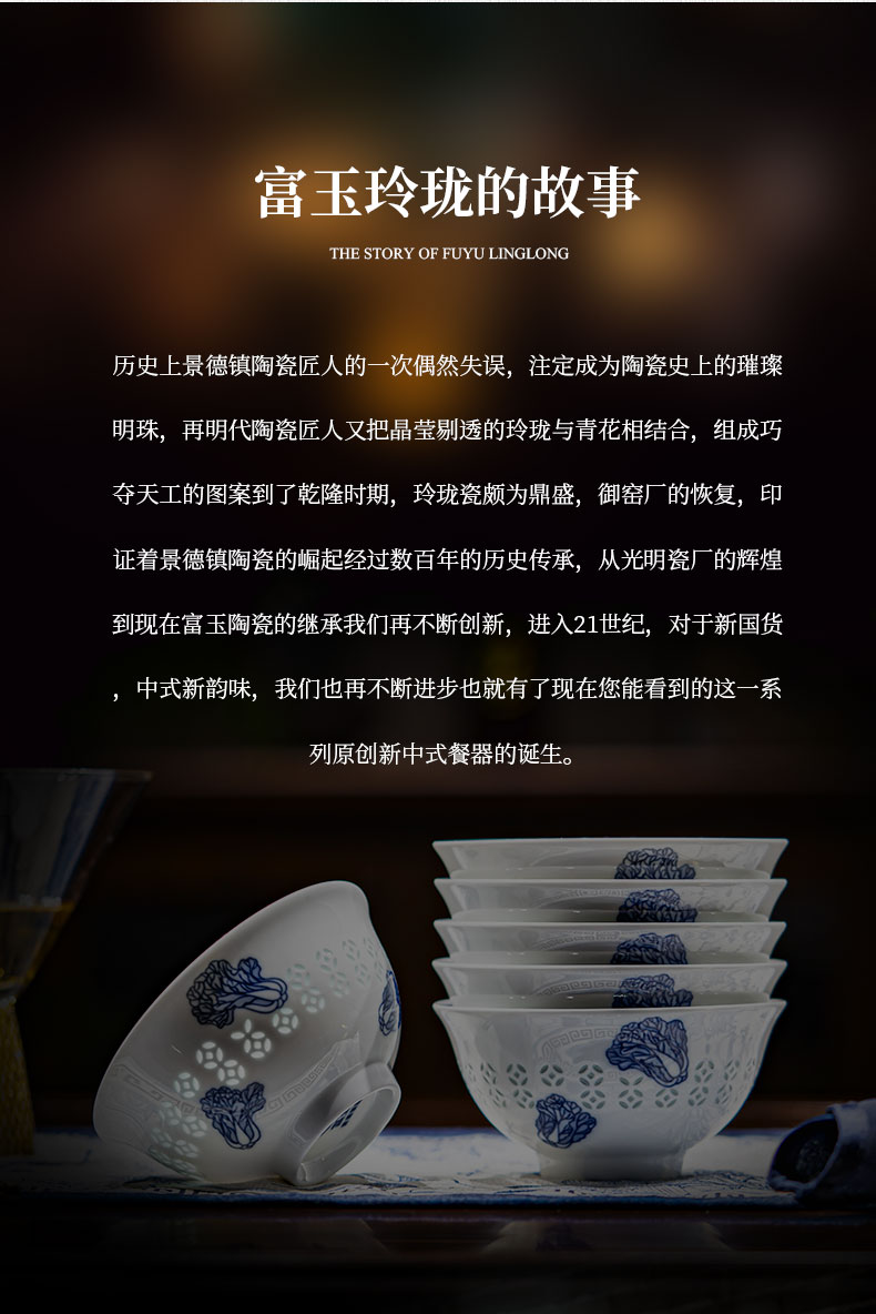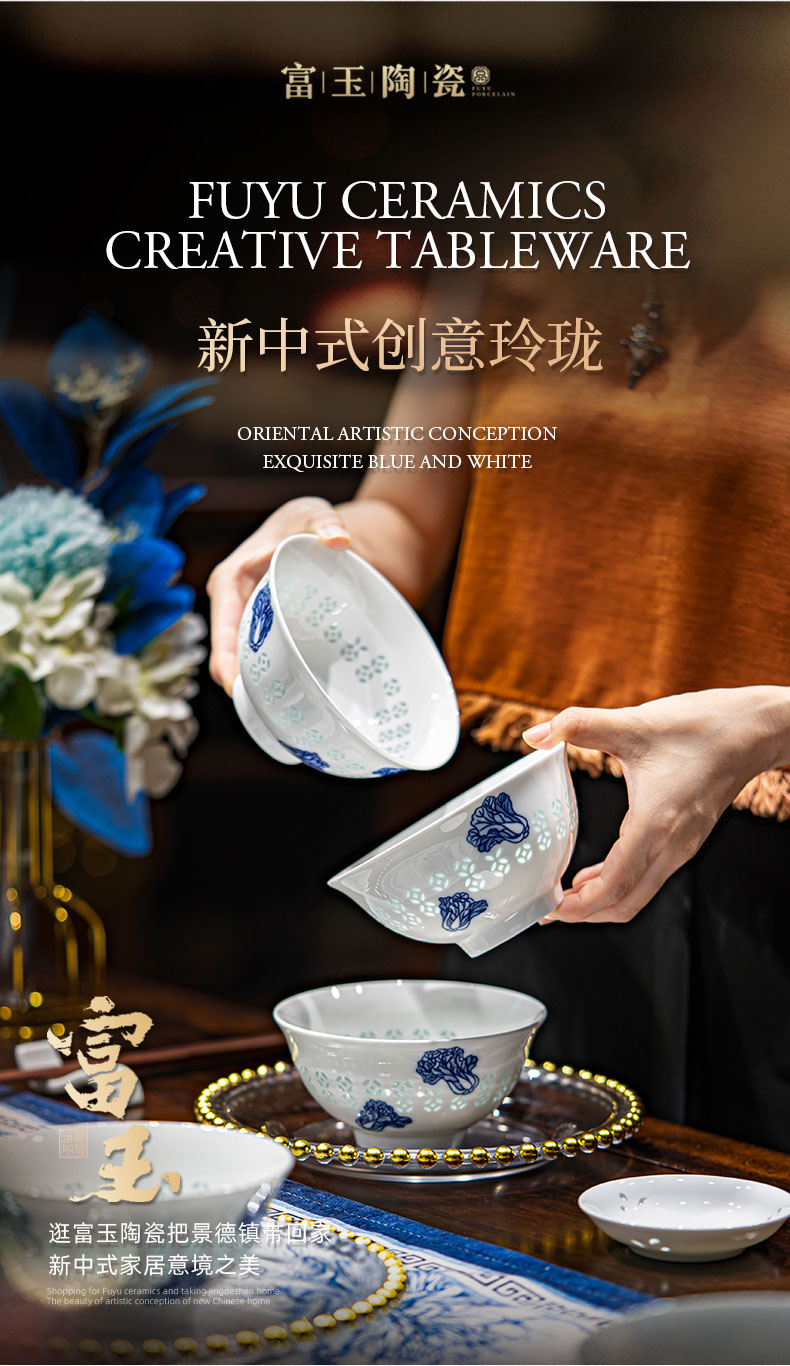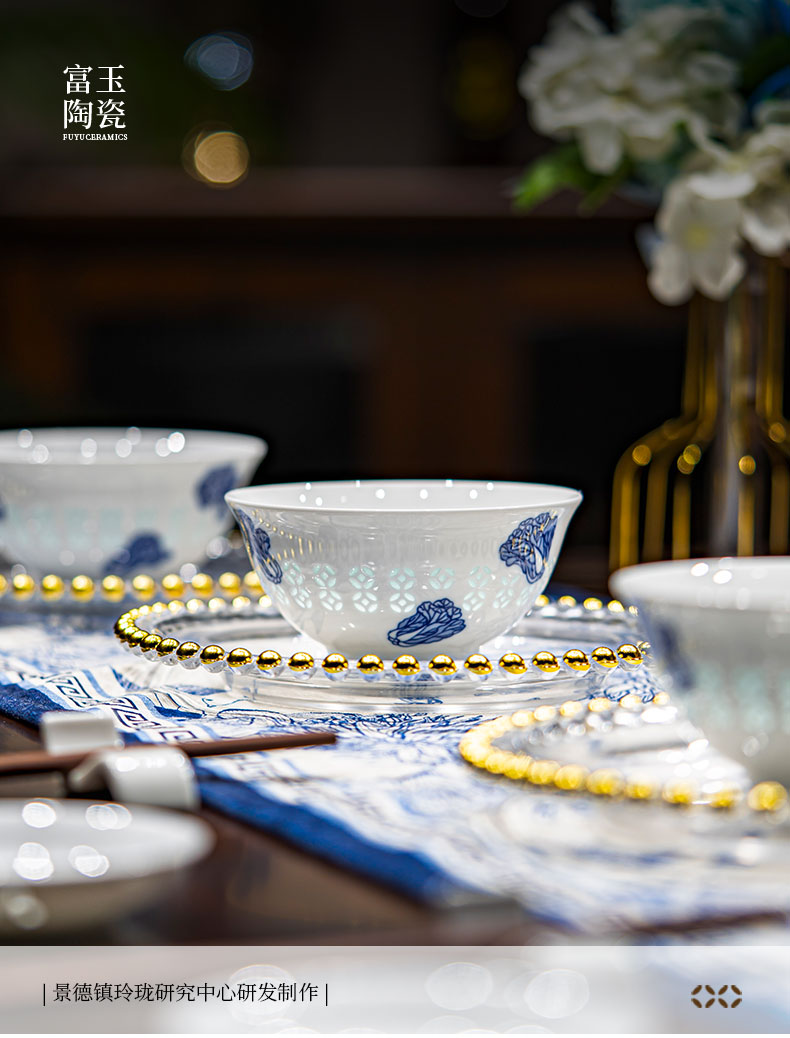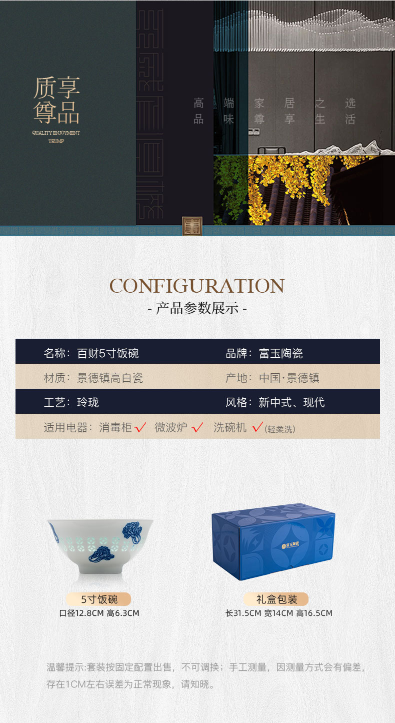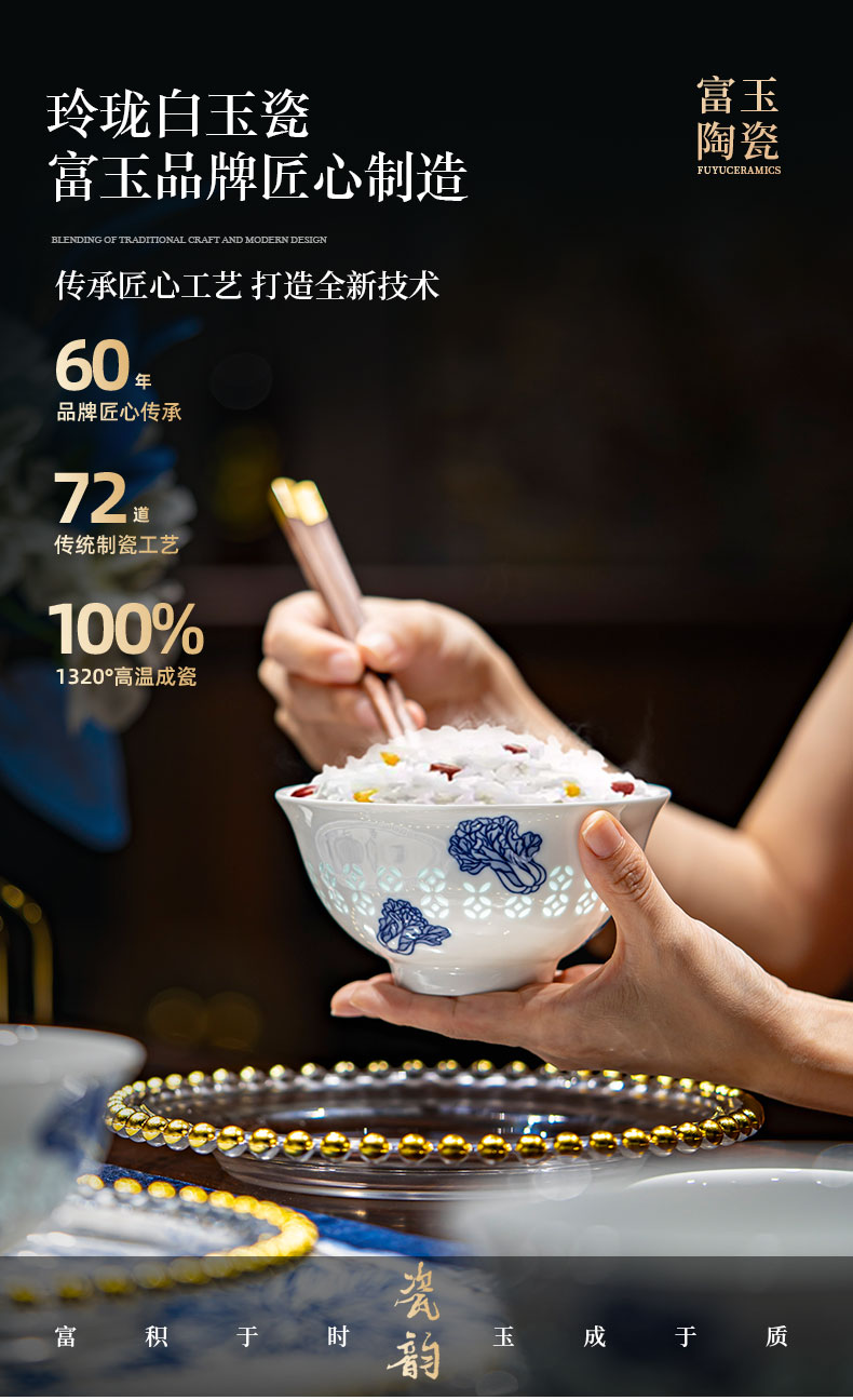 富玉陶瓷景德镇釉下彩百财饭碗家用高颜值玲珑乔迁之喜入宅搬家礼物餐具