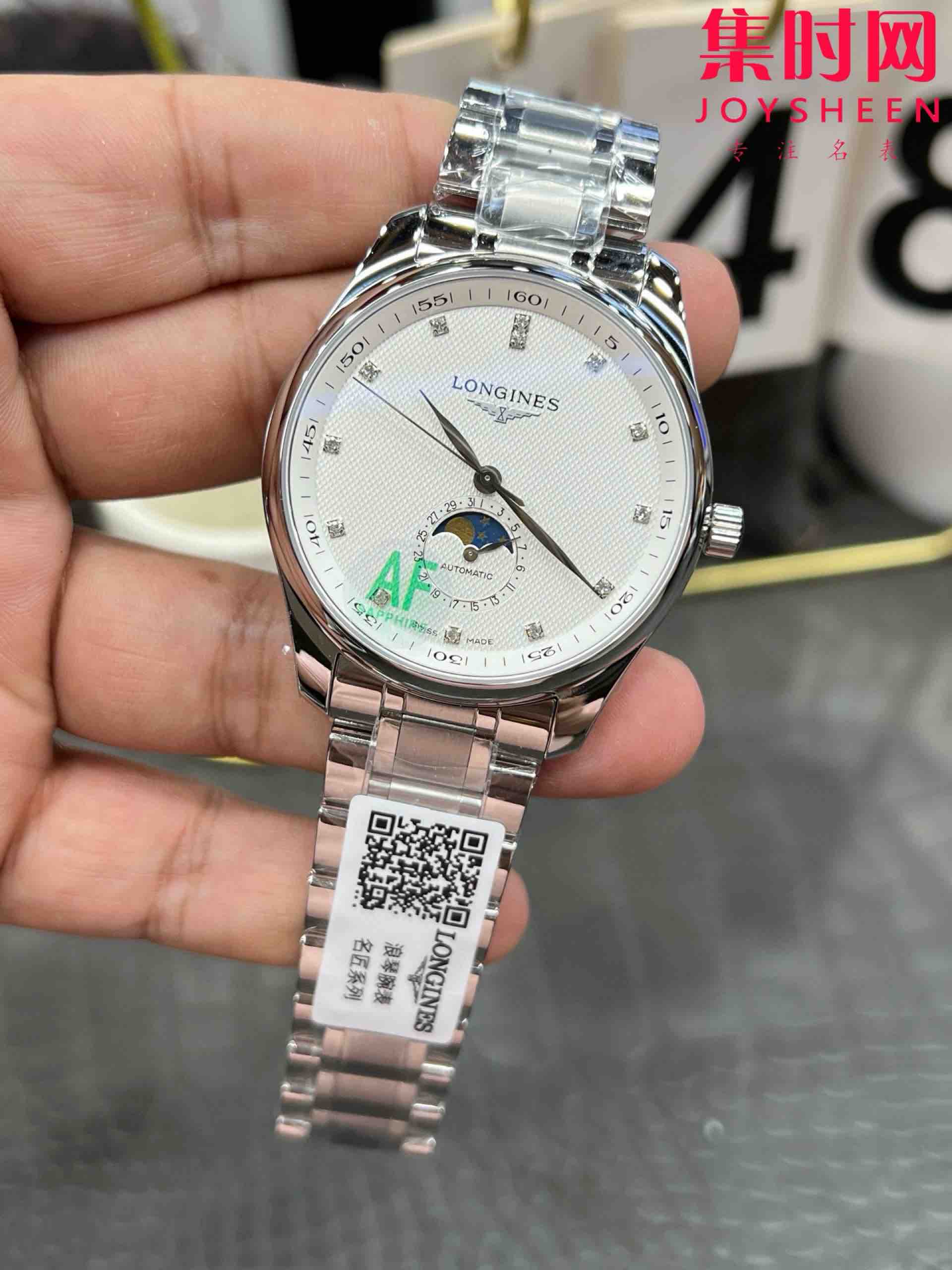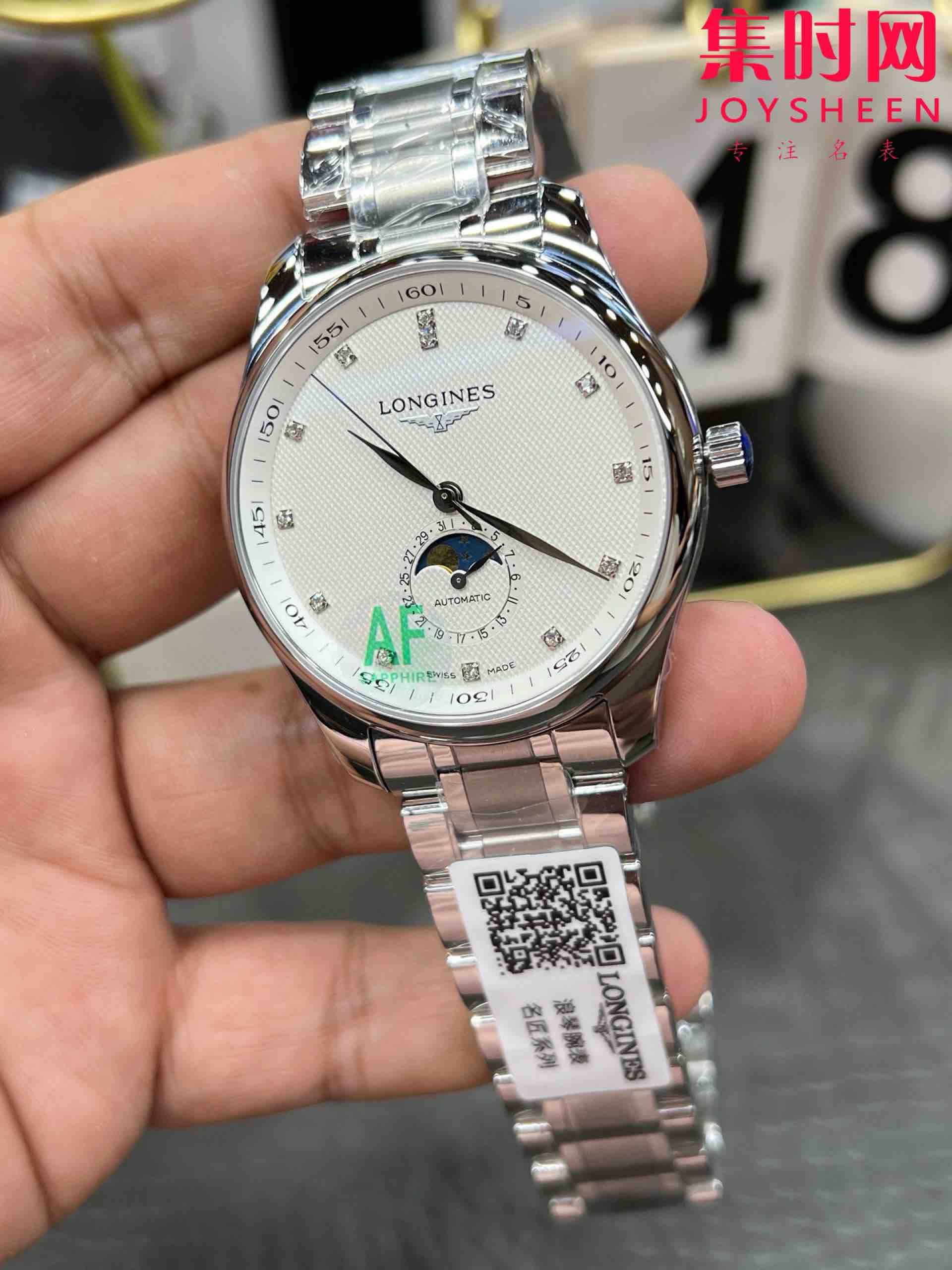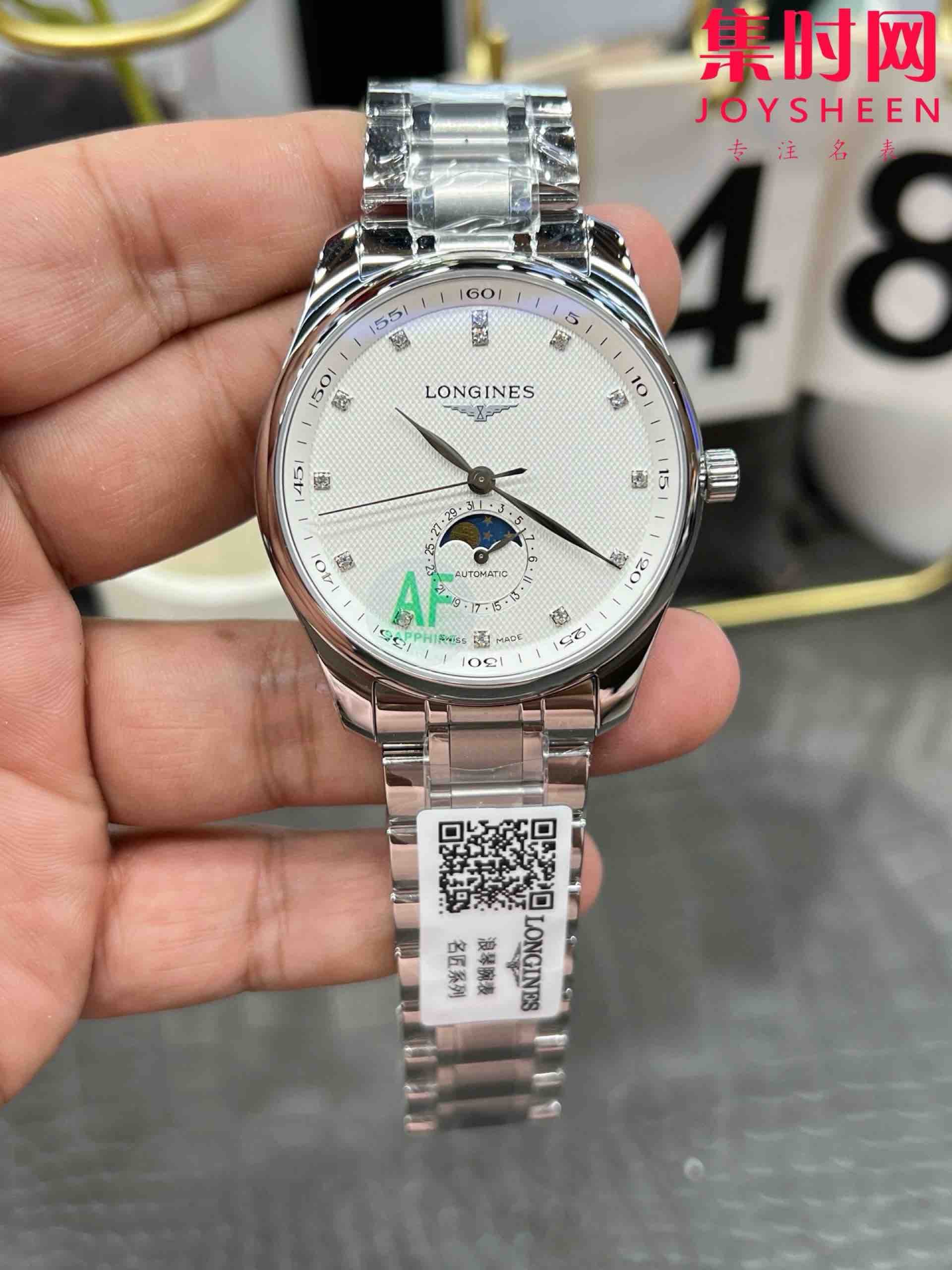 AF浪琴名匠月相系列 四针月相 名匠月相42mm 白盘钻面 自动机械 男士腕表