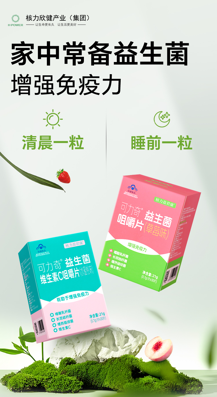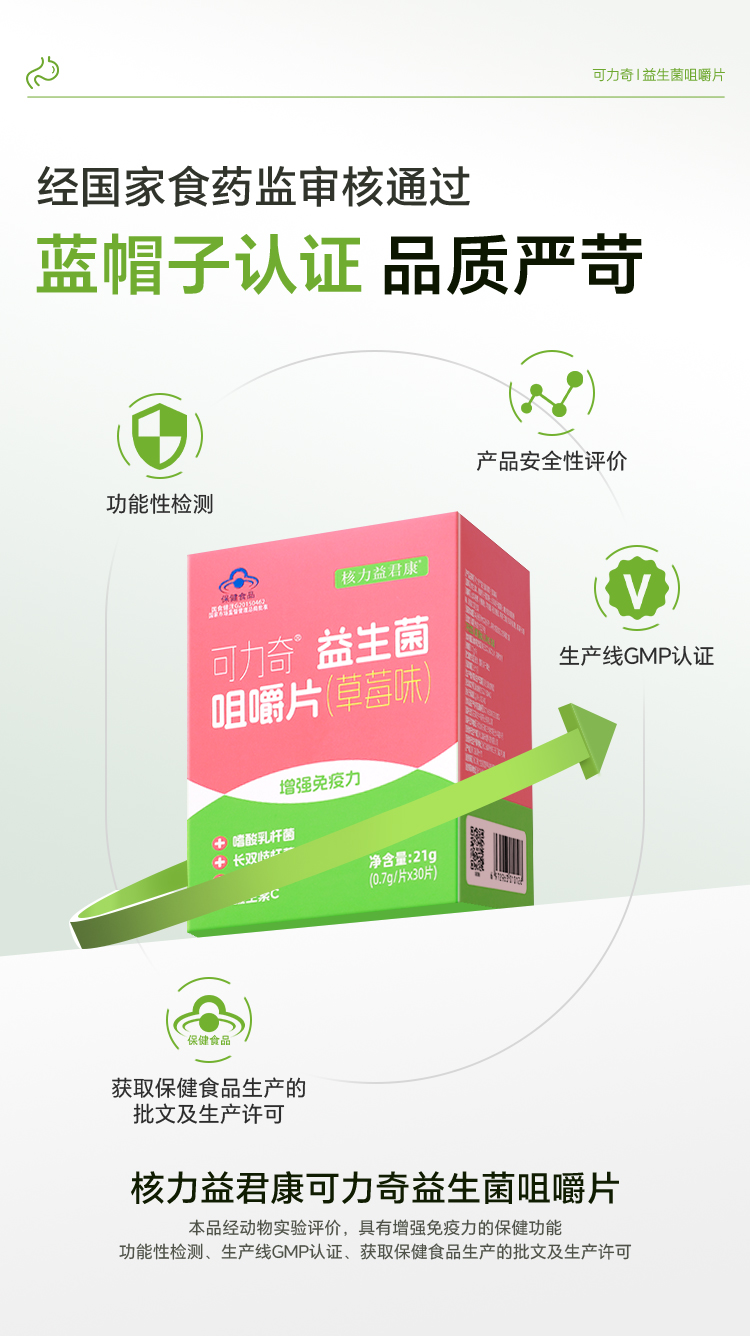 核力益君康可力奇益生菌蓝帽子认证草莓味水蜜桃味