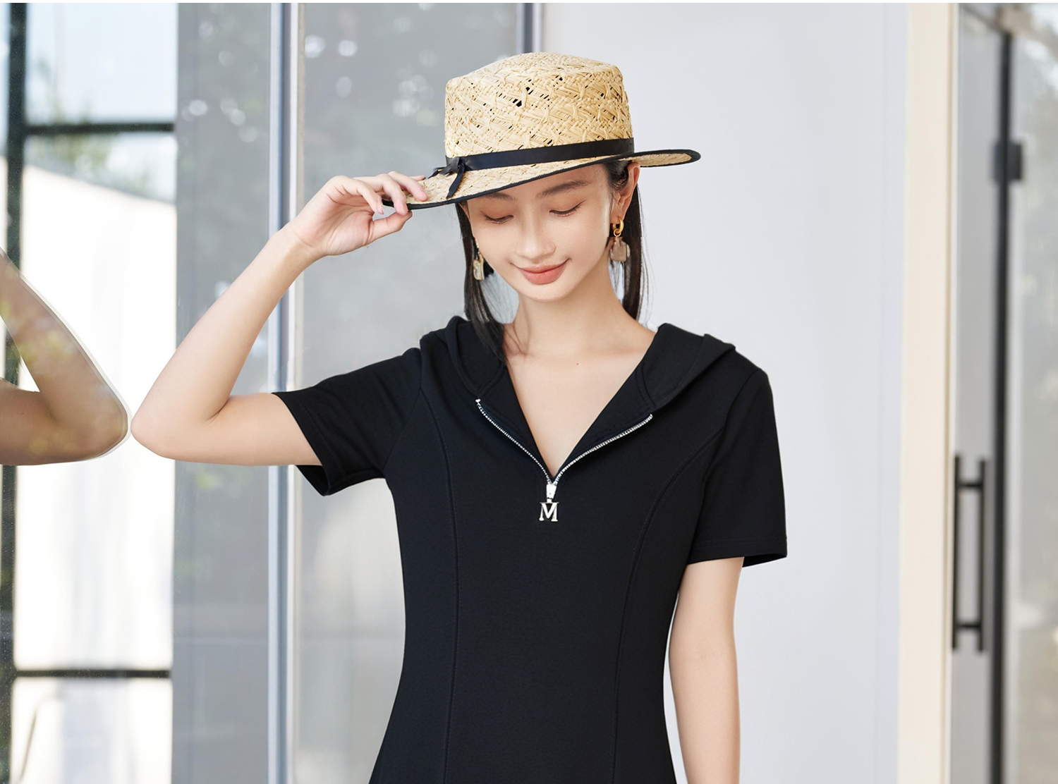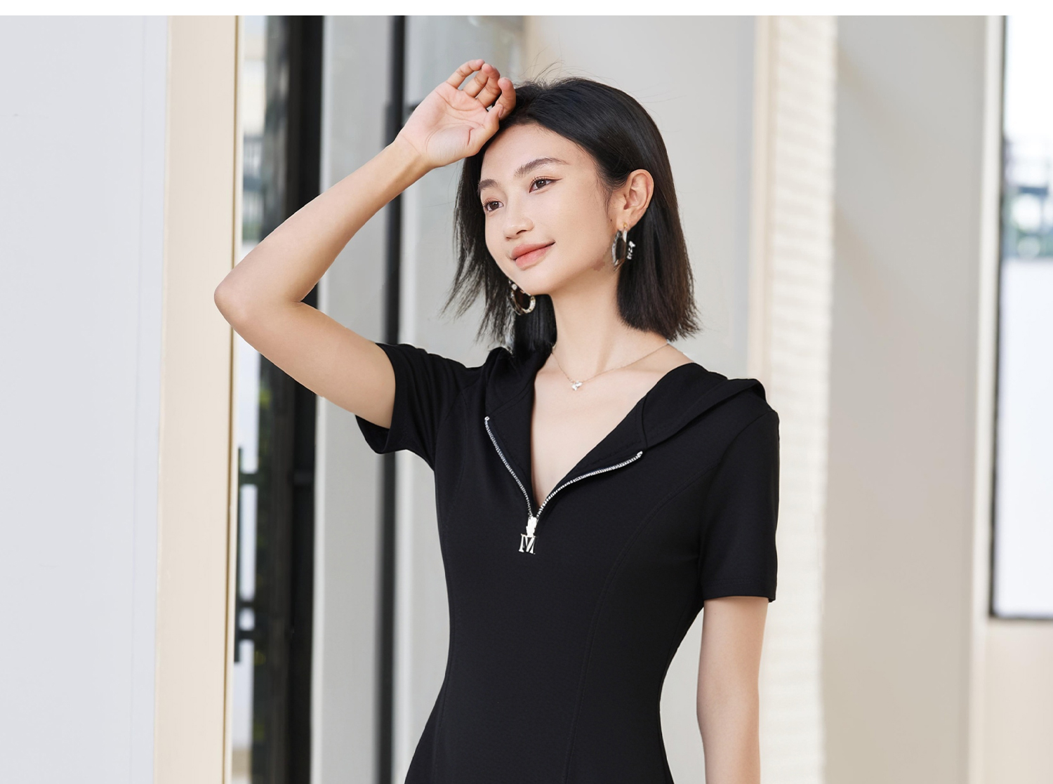 剩S/M 米思阳2025夏季新款休闲通勤连衣裙设计感拉链领口不规则下摆裙子1460