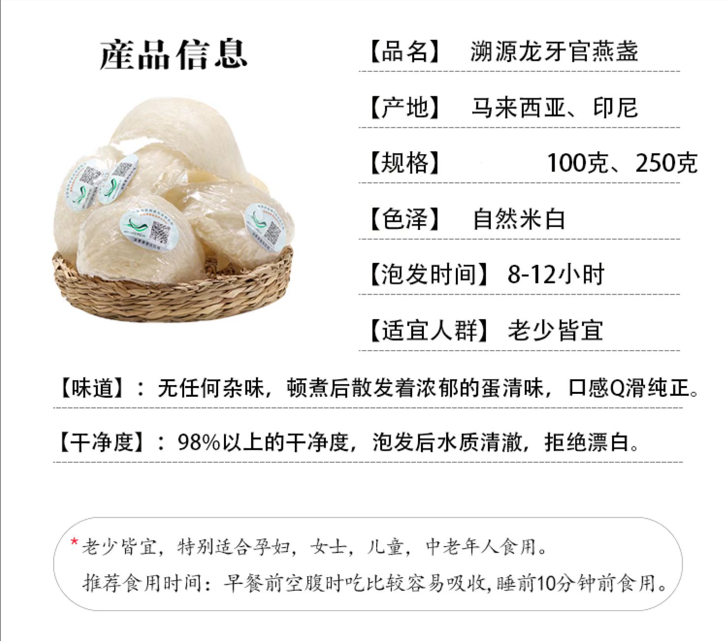 2、燕窝库存有限,销售前,与客服及时沟通,以免售罄,导致售后服务问题。