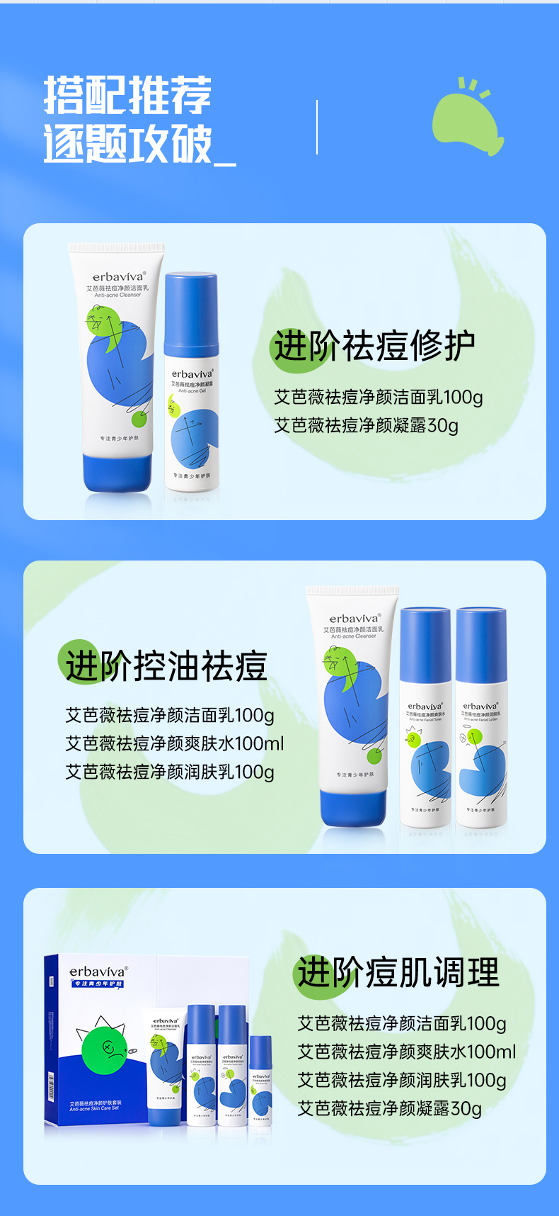 【拍2减20元到手89元/2支】青少年专用 祛痘淡印!艾芭薇青少年专用控油祛痘补水保湿护肤品-杭州仓发