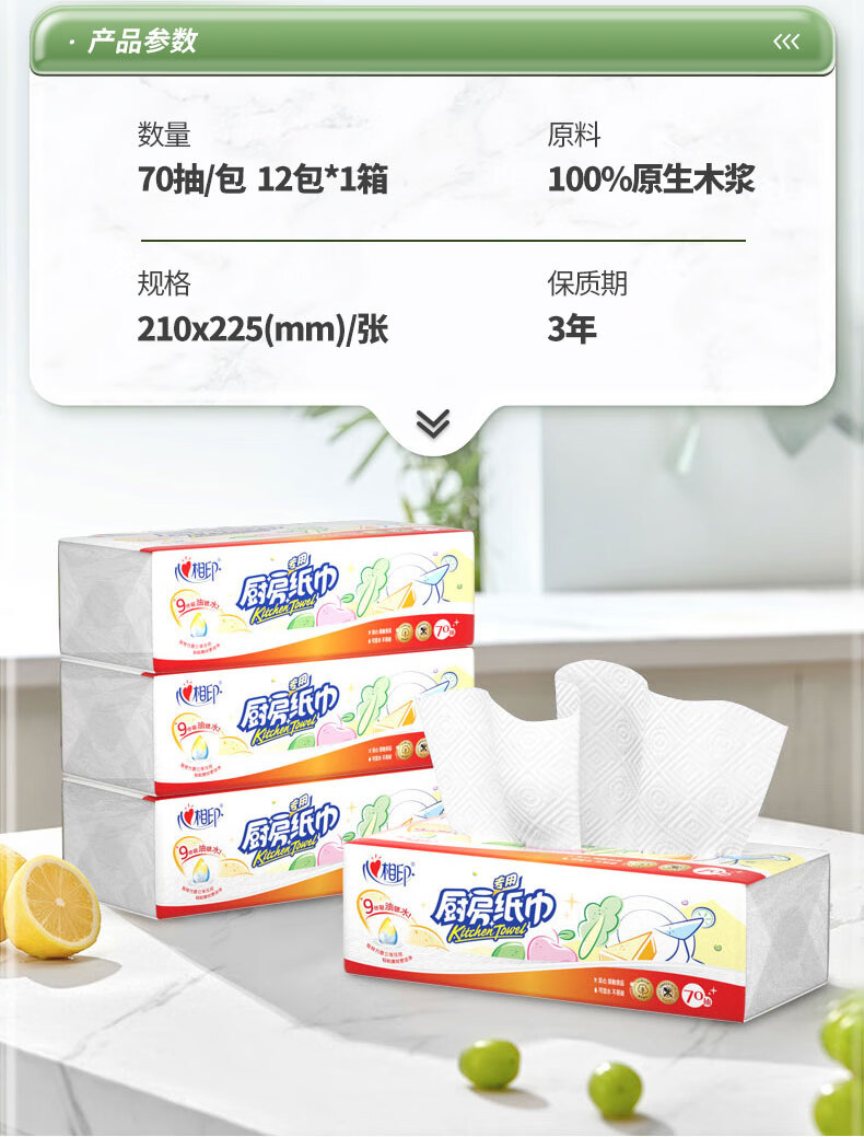 KDT170(箱装)心相印70抽塑装无印花厨房纸巾