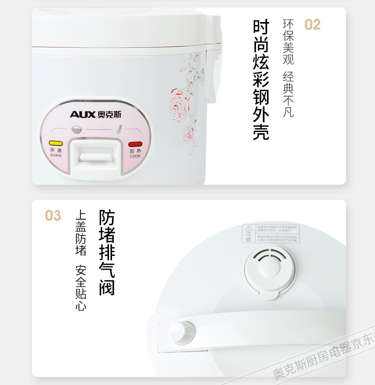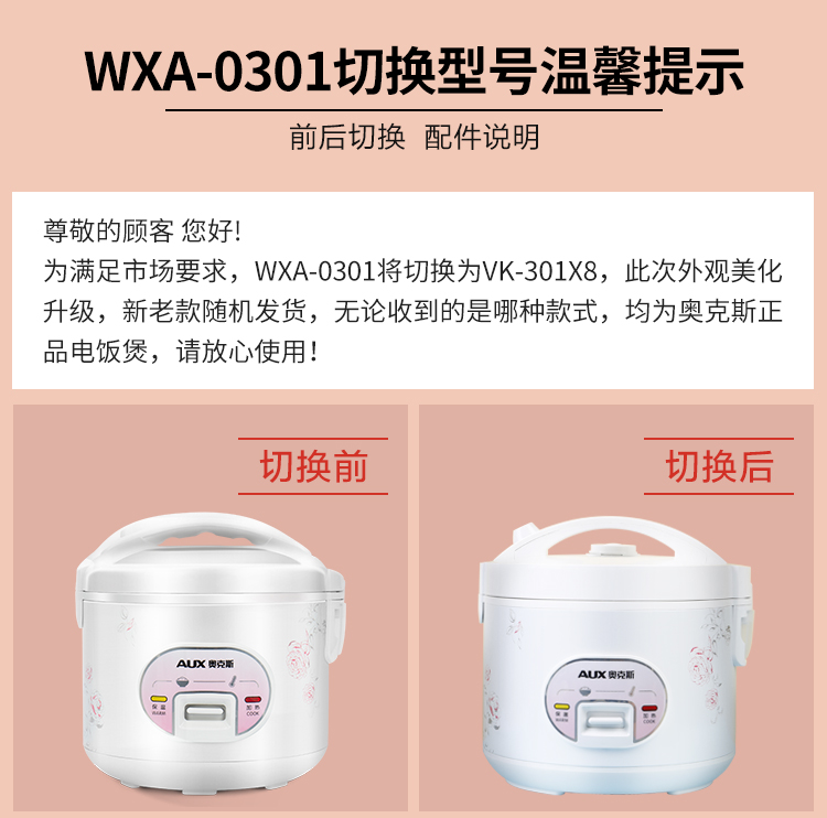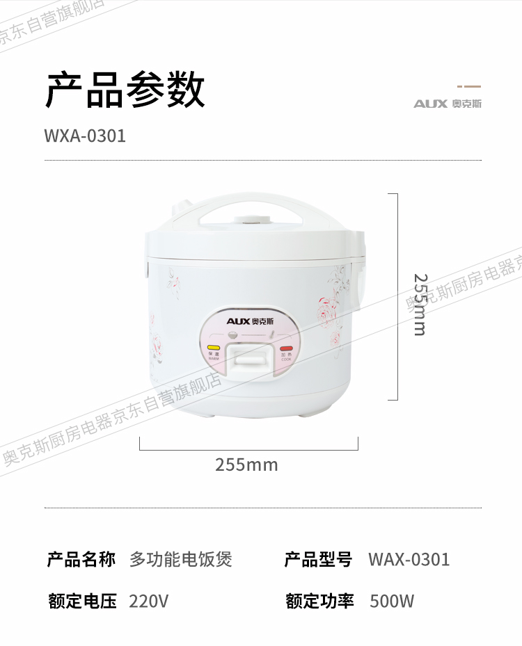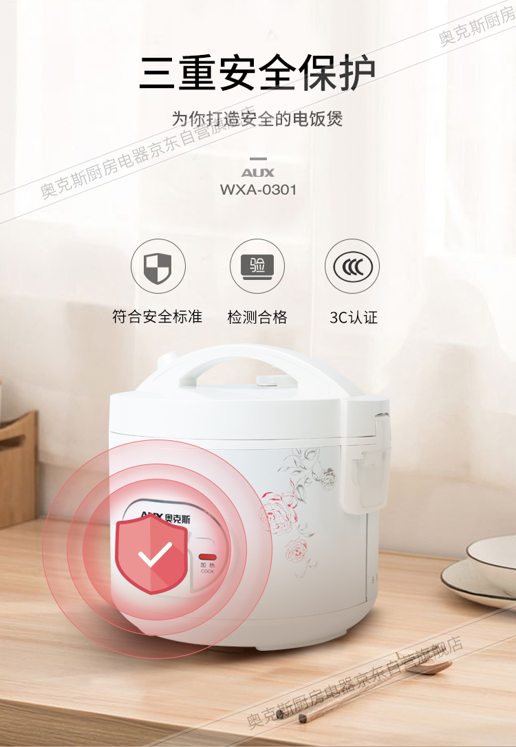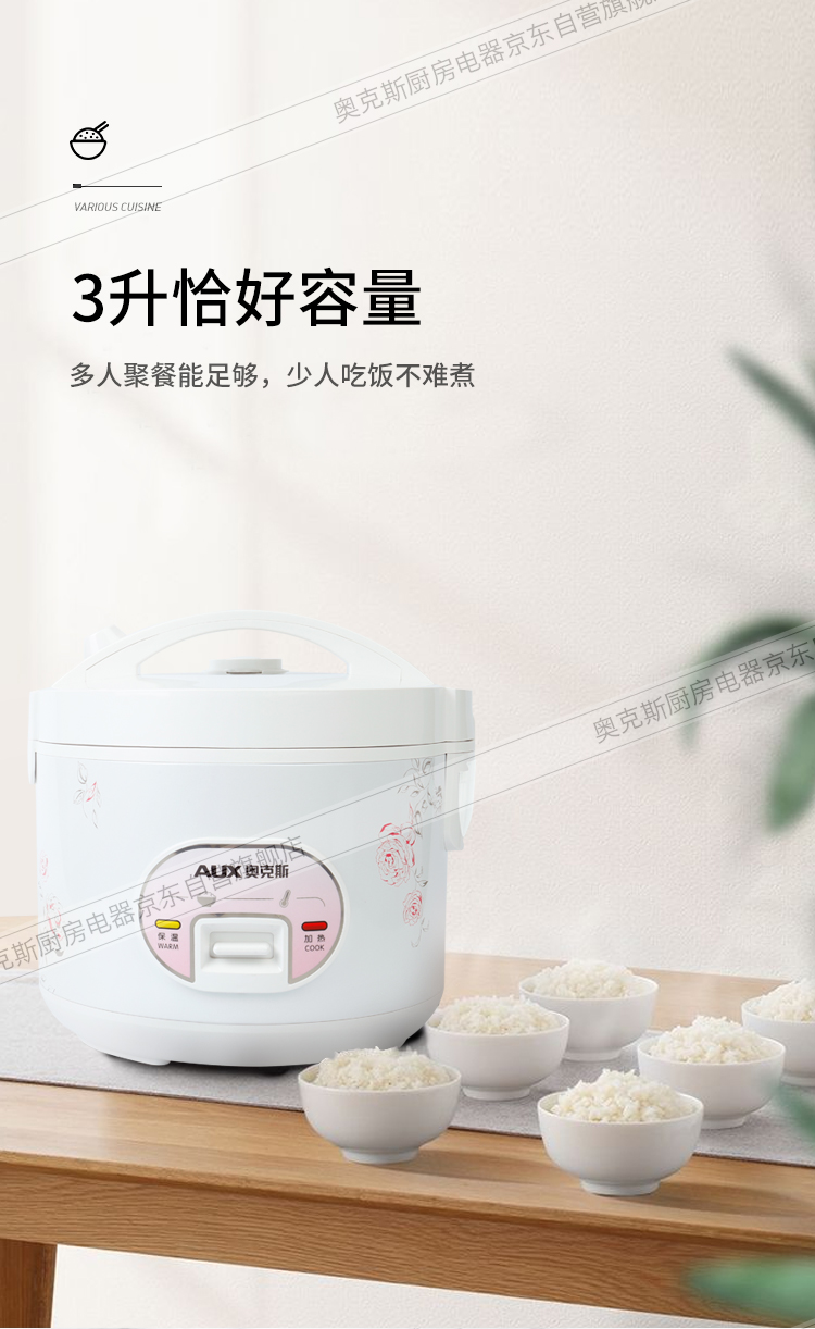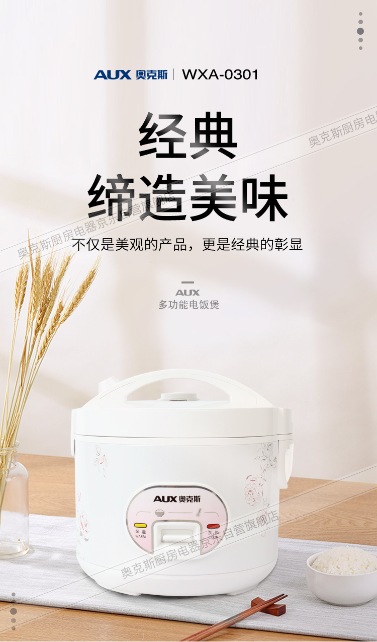 奥克斯(AUX)电饭煲 3L大容量电饭锅 家用机械式西施煲 操作简单 家用小电饭锅 WXA-0301 VK-301X8