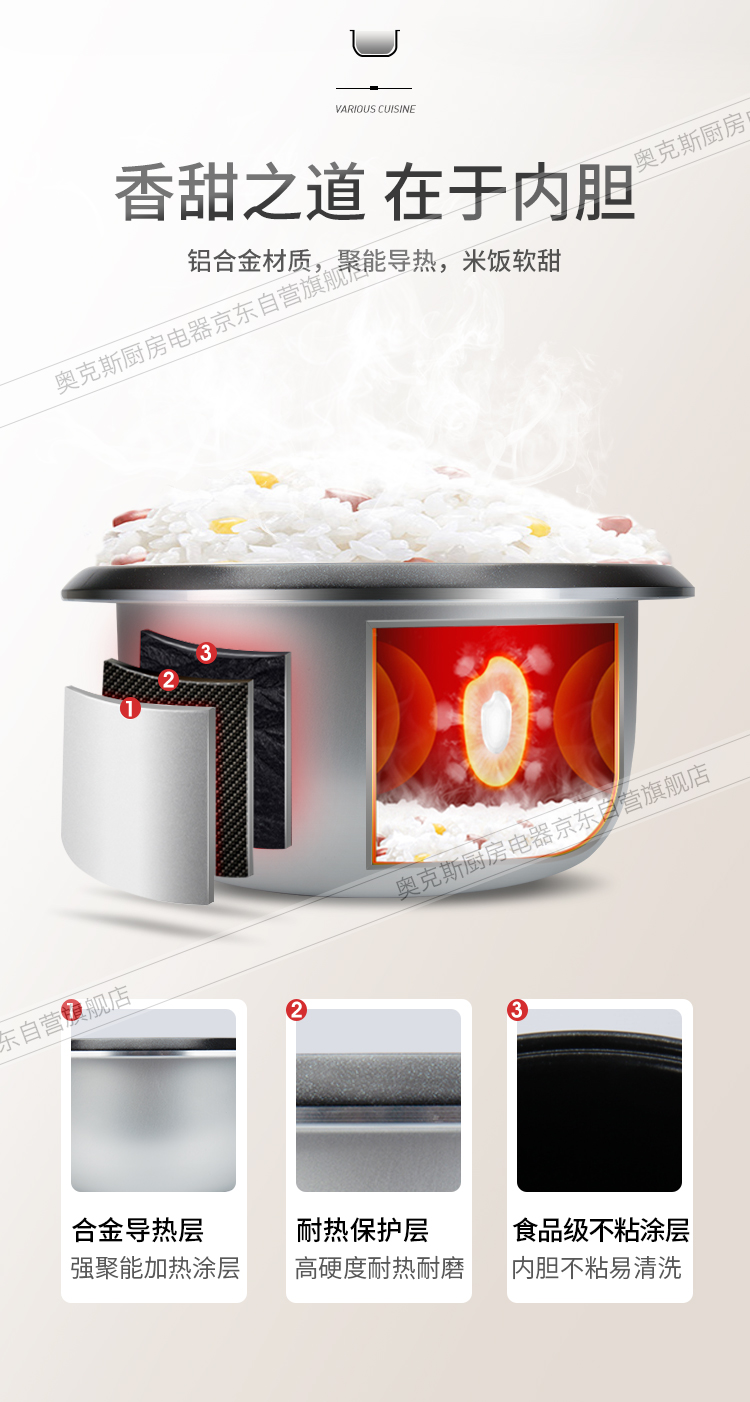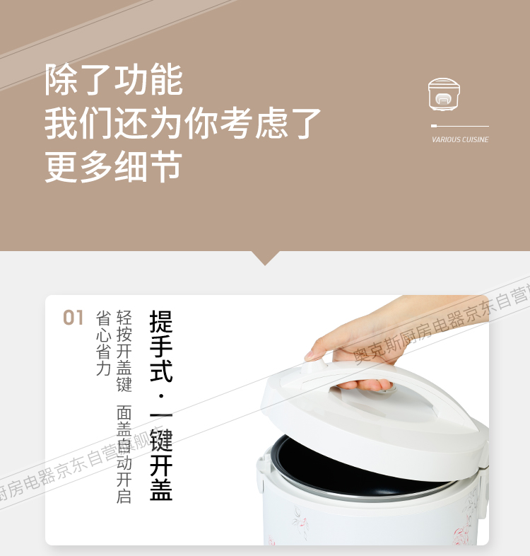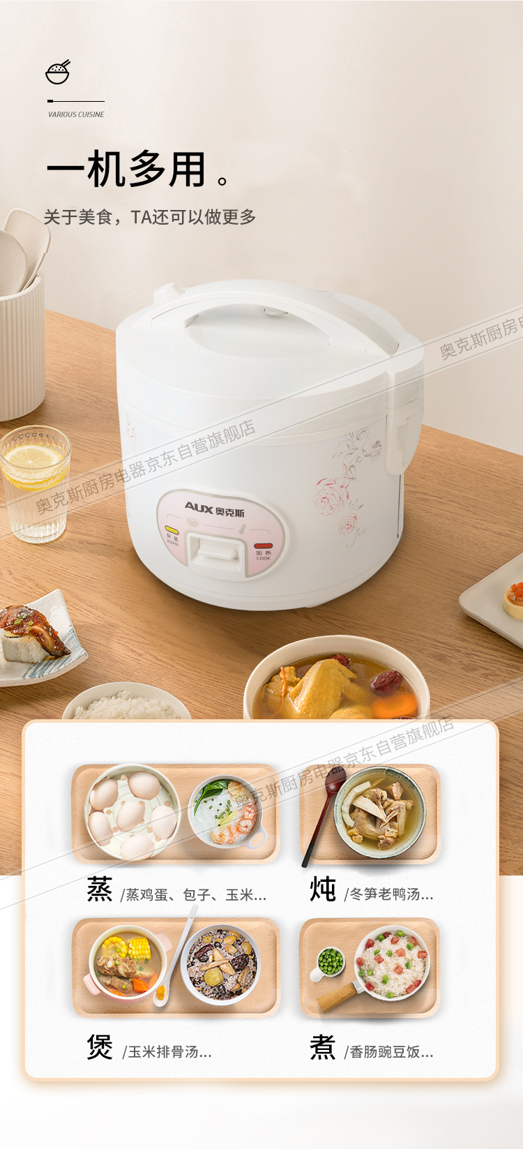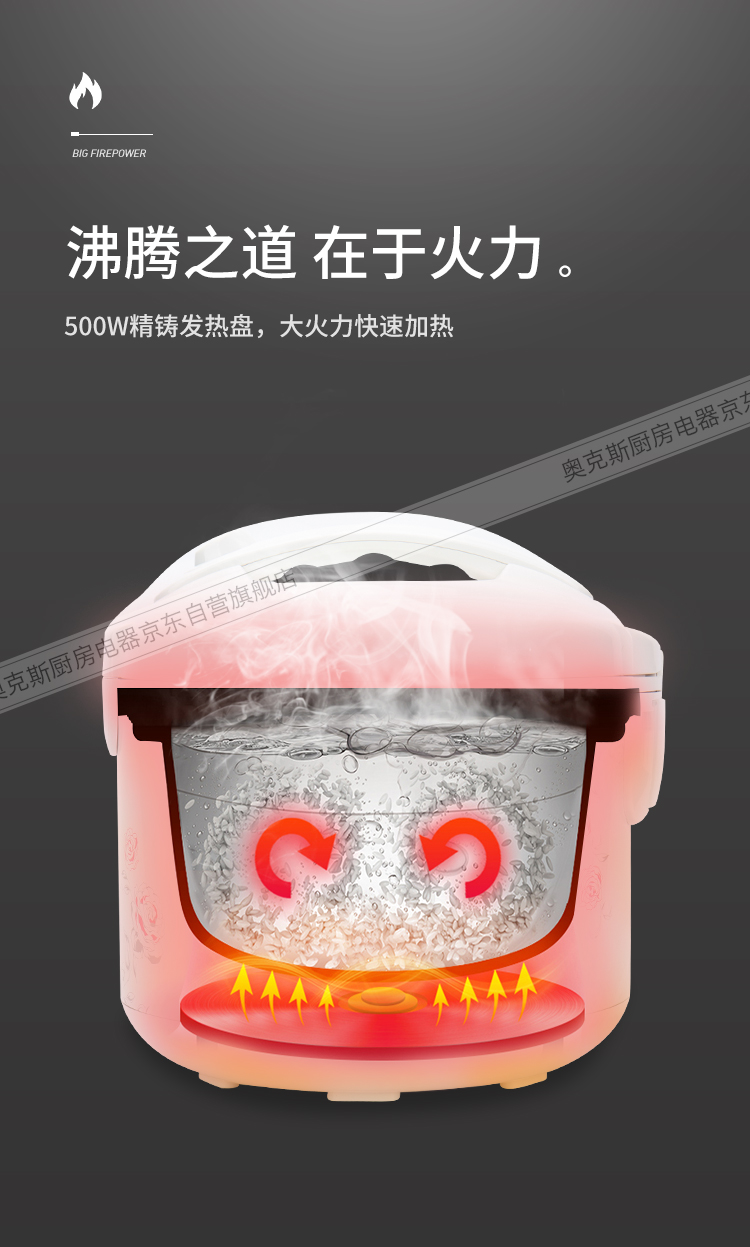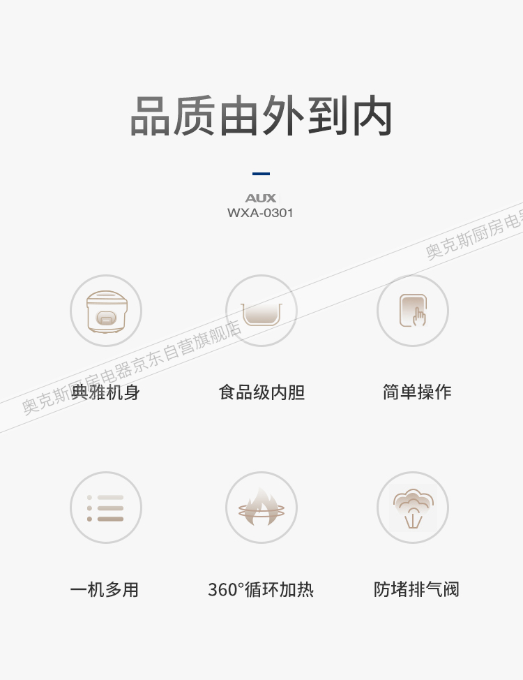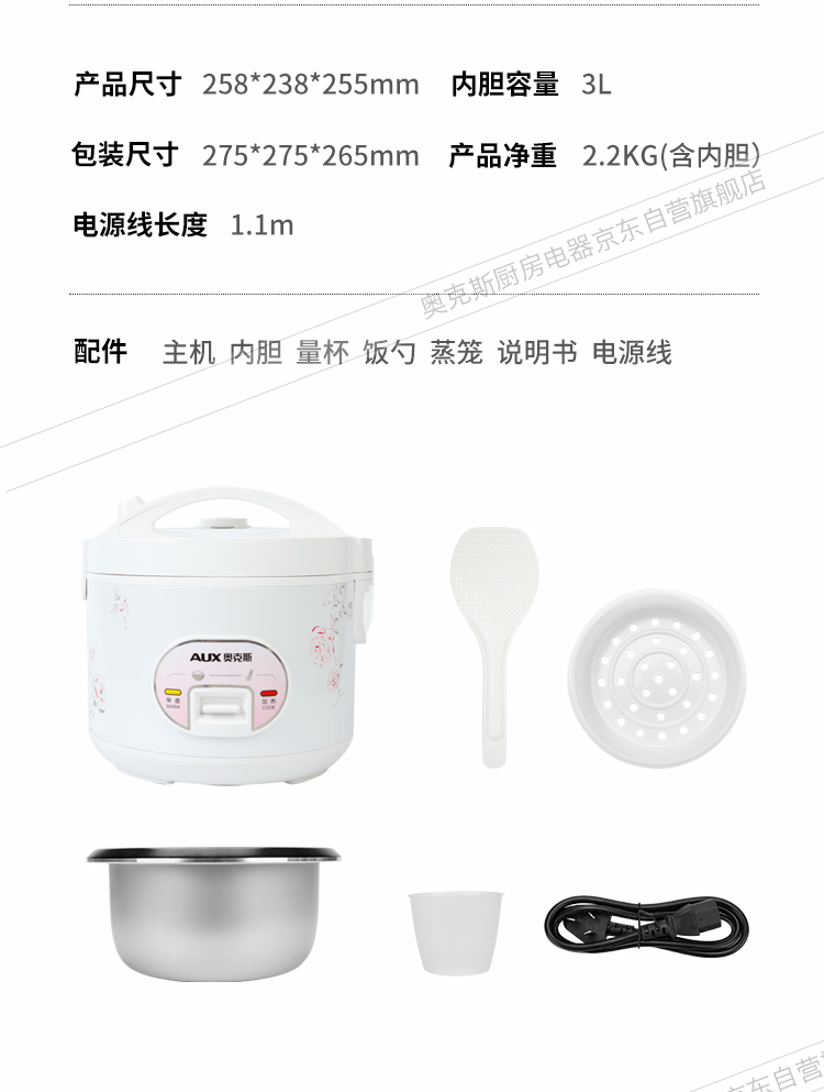 奥克斯(AUX)电饭煲 3L大容量电饭锅 家用机械式西施煲 操作简单 家用小电饭锅 WXA-0301 VK-301X8