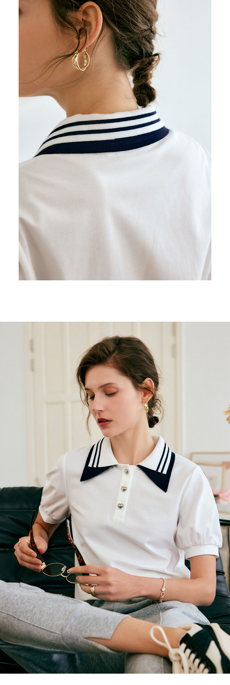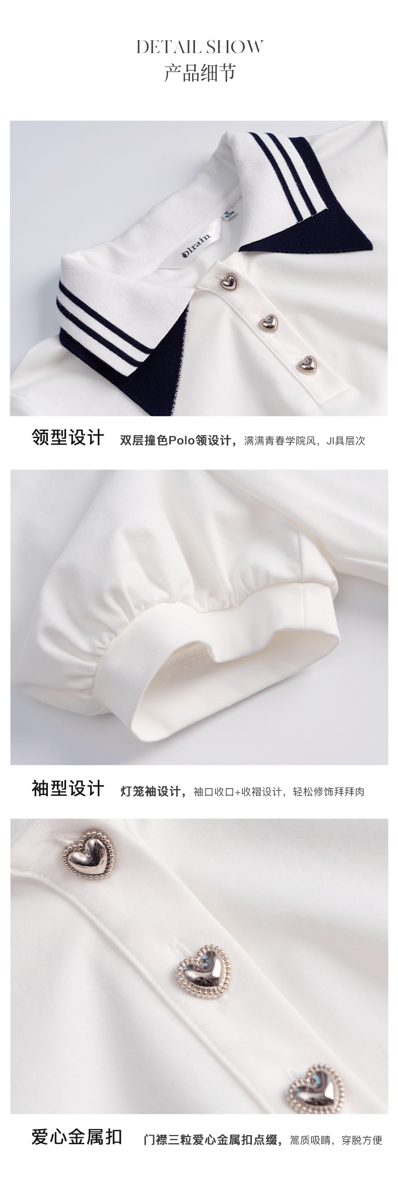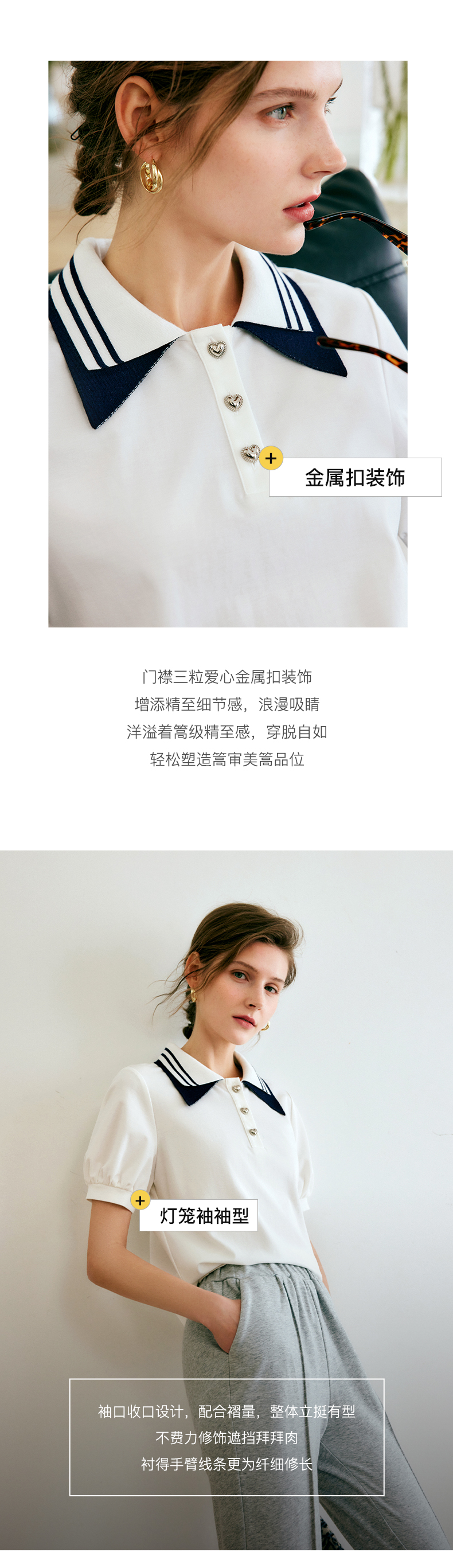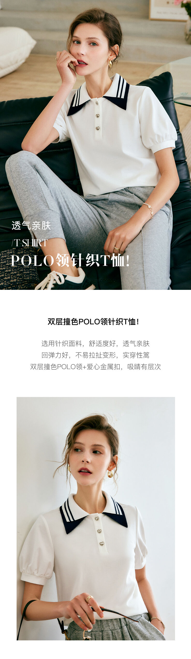 欧芮儿OLrain法式POLO领t恤女夏2022年新款泡泡袖学院风针织上衣