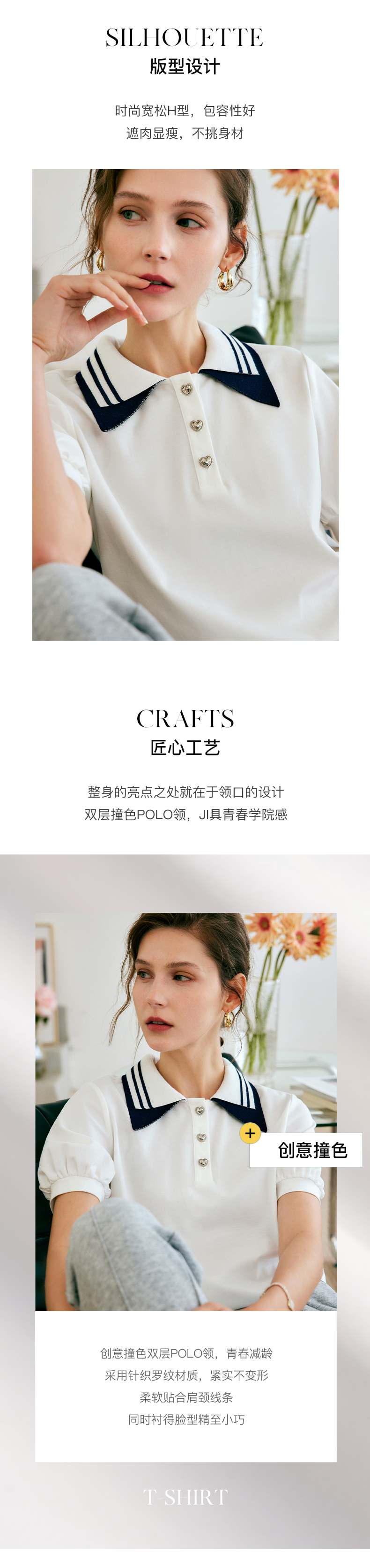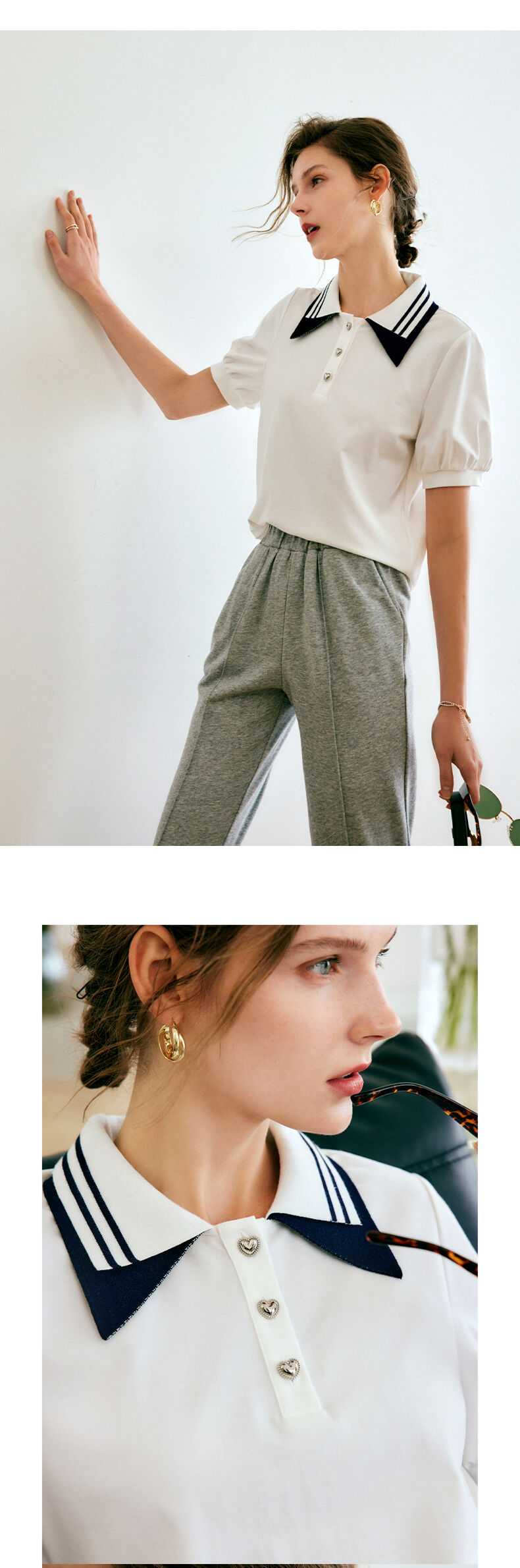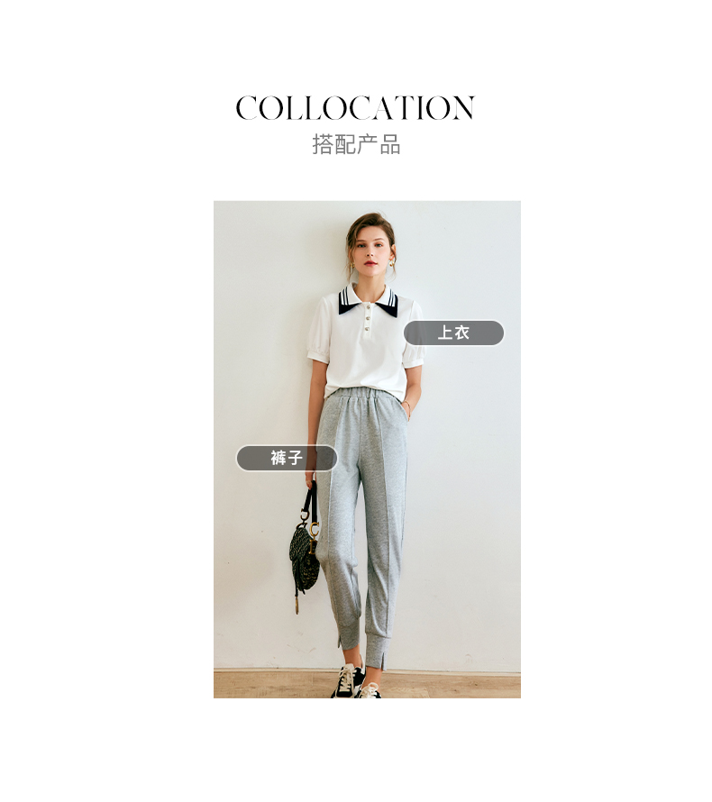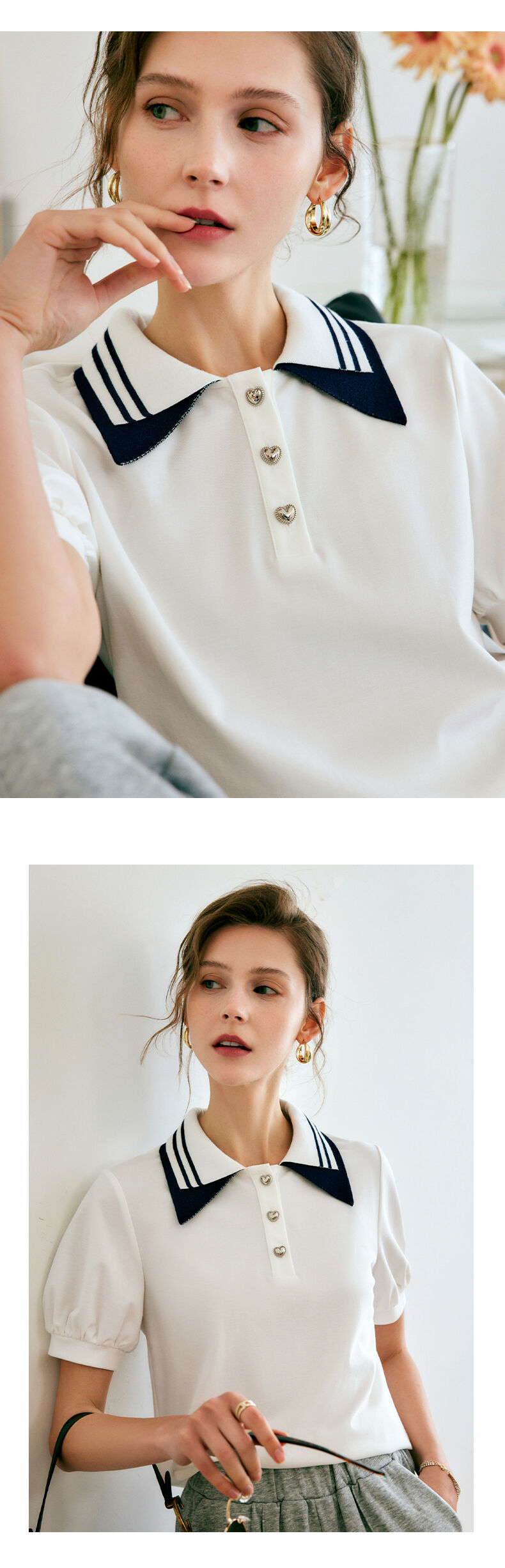欧芮儿OLrain法式POLO领t恤女夏2022年新款泡泡袖学院风针织上衣
