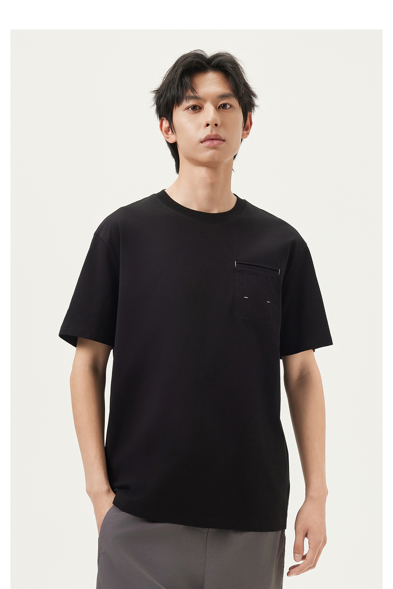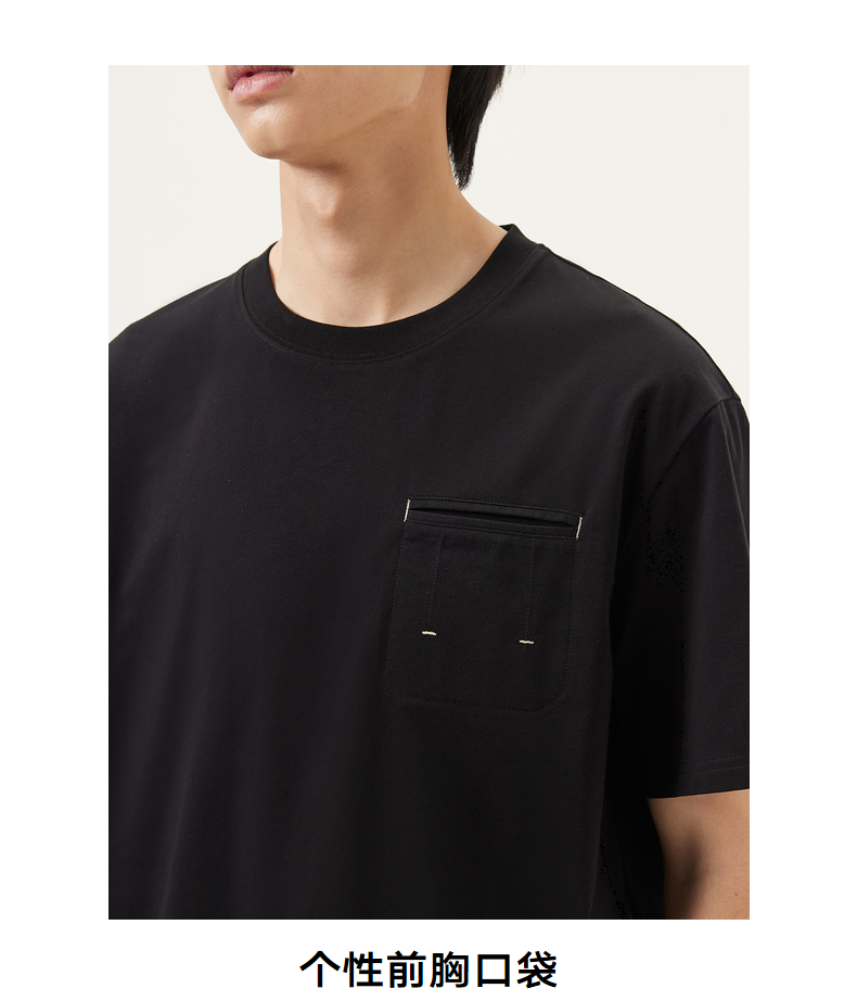 gxg.jeans男装 25年夏热卖多色圆领简约个性口袋宽松短袖T恤男士
